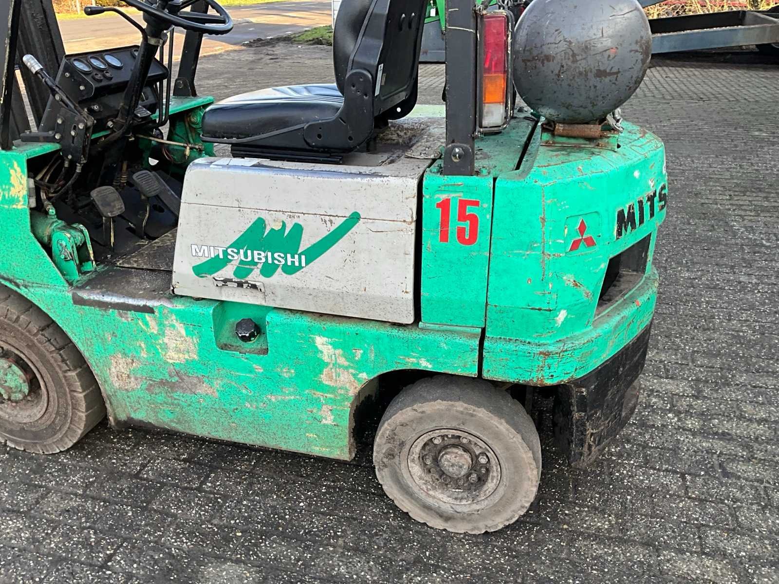 Let op! scheur in koelsysteem Type: FG15 Mast: Duplex Aantal wielen: 4 Duplex mast: true Hefvermogen: 1500kg Totale afmeting L: 3150mm Totale afmeting Breedte: 1200mm Totale afmeting Hoogte: 2100mm LPG: true