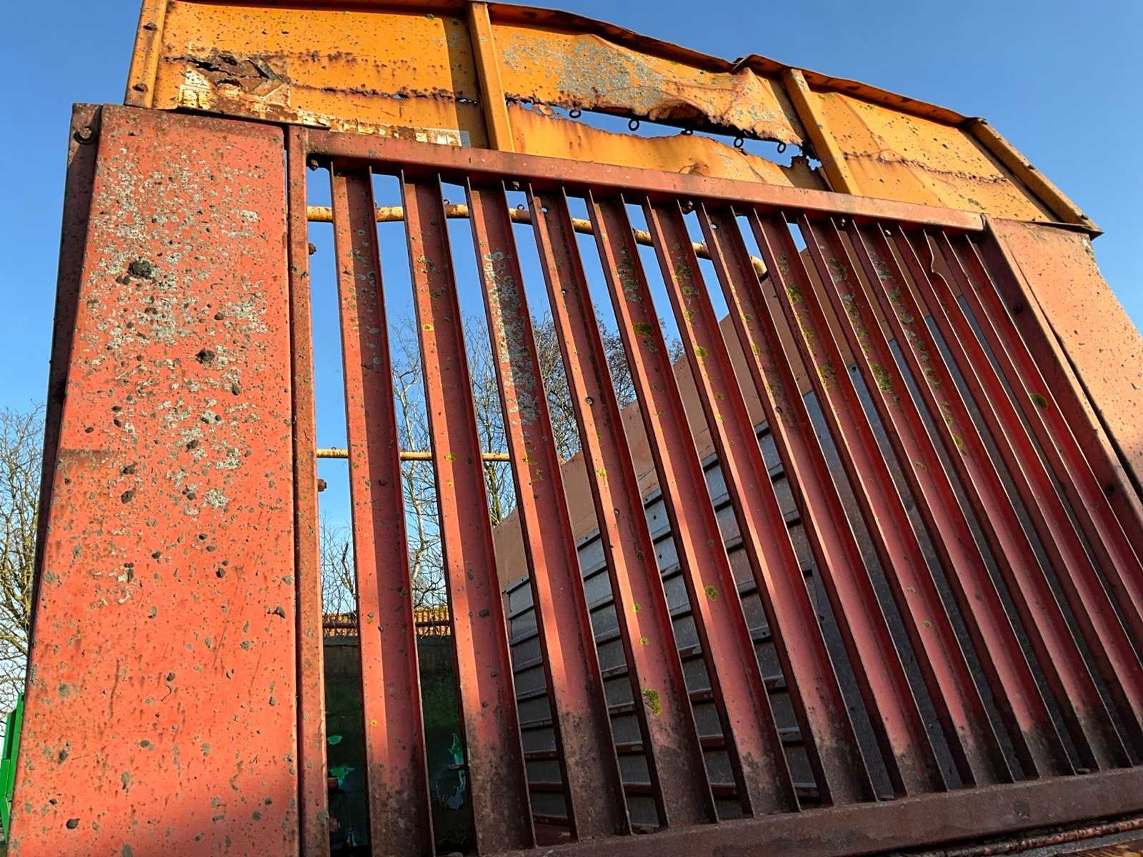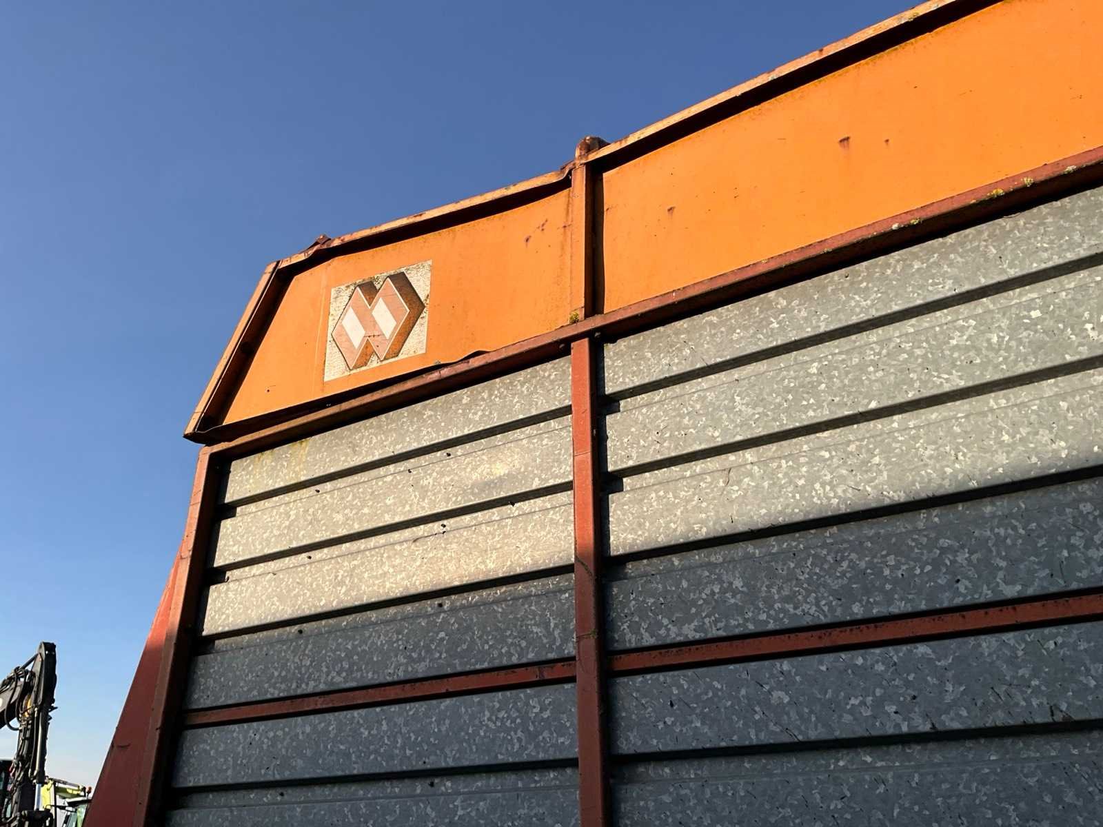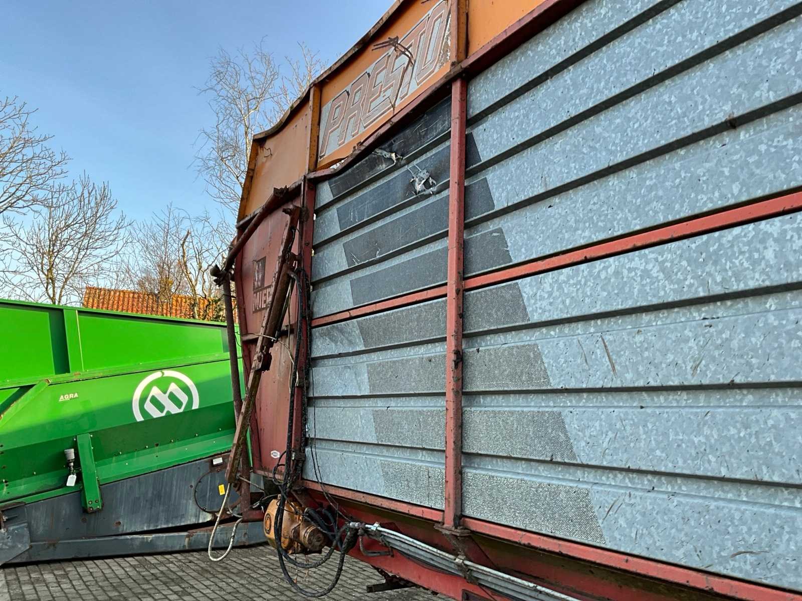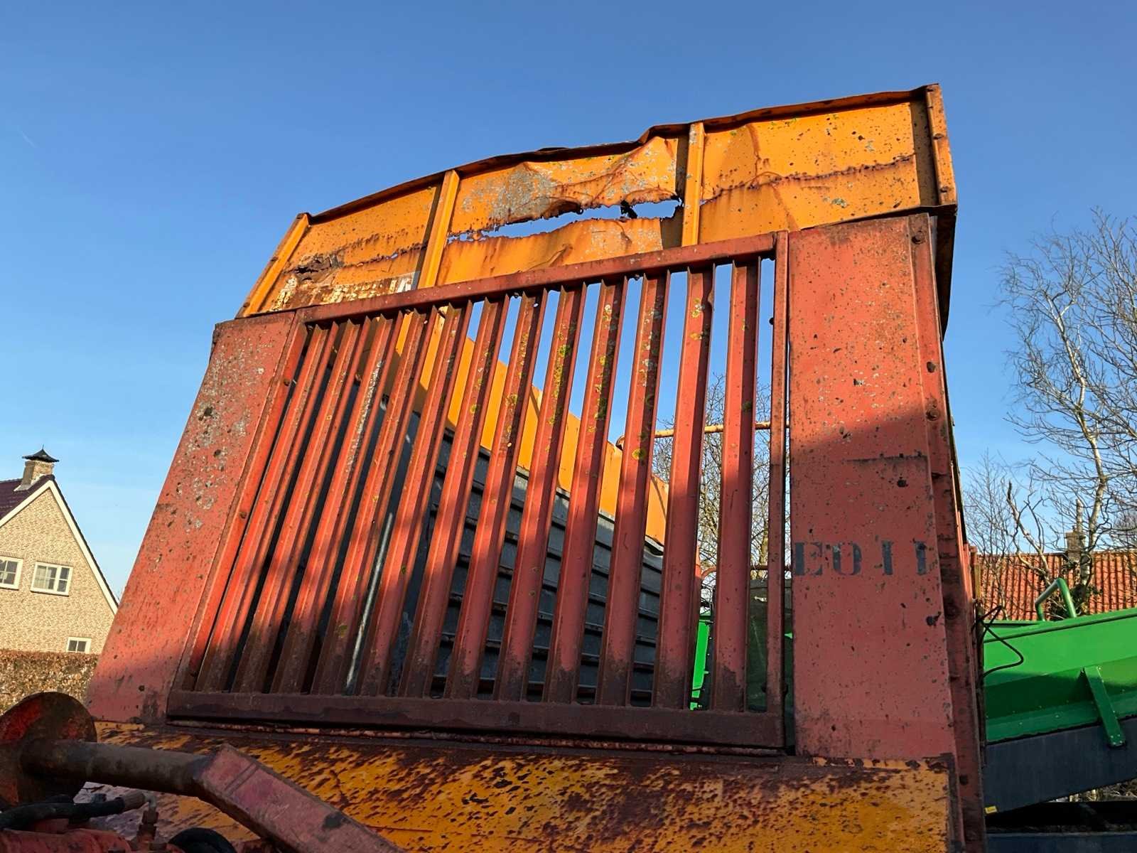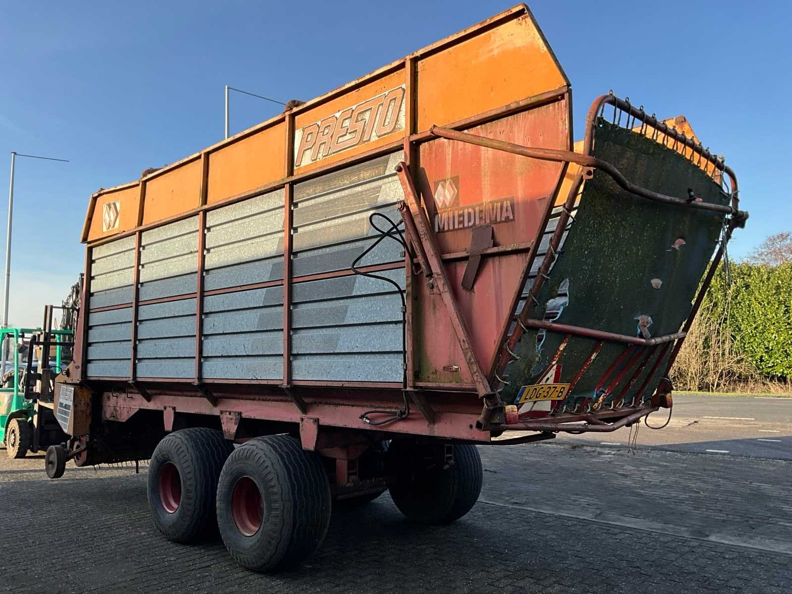 Voorzien van hydraulische klep met net, bodemketting, tandem onderstel, pick-up breedte 1550 mm, hydraulische dissel verstelling, Merk: Miedema Type: Presto Kenteken: LDG-37-B Bandenmaat: 500/55-15.5 Totale afmeting L: 8500 Totale afmeting Breedte: 2550 Totale afmeting Hoogte: 3470