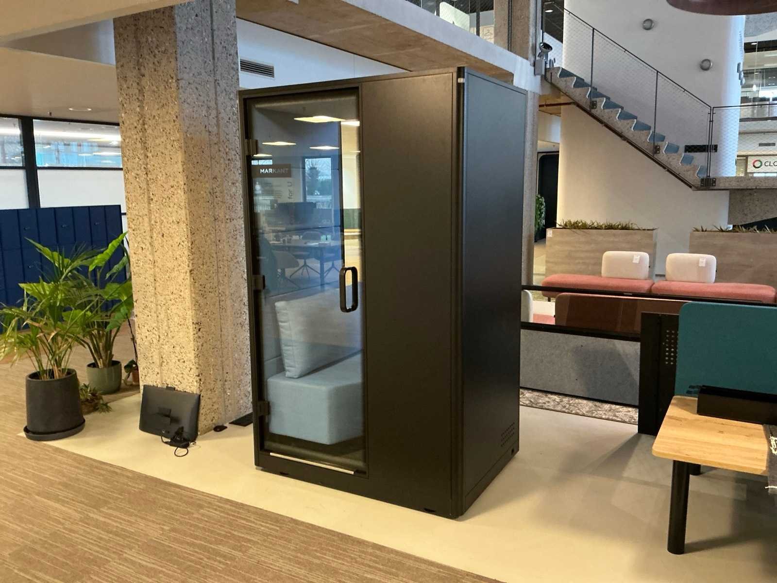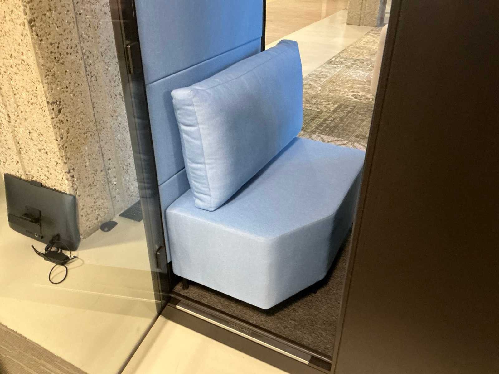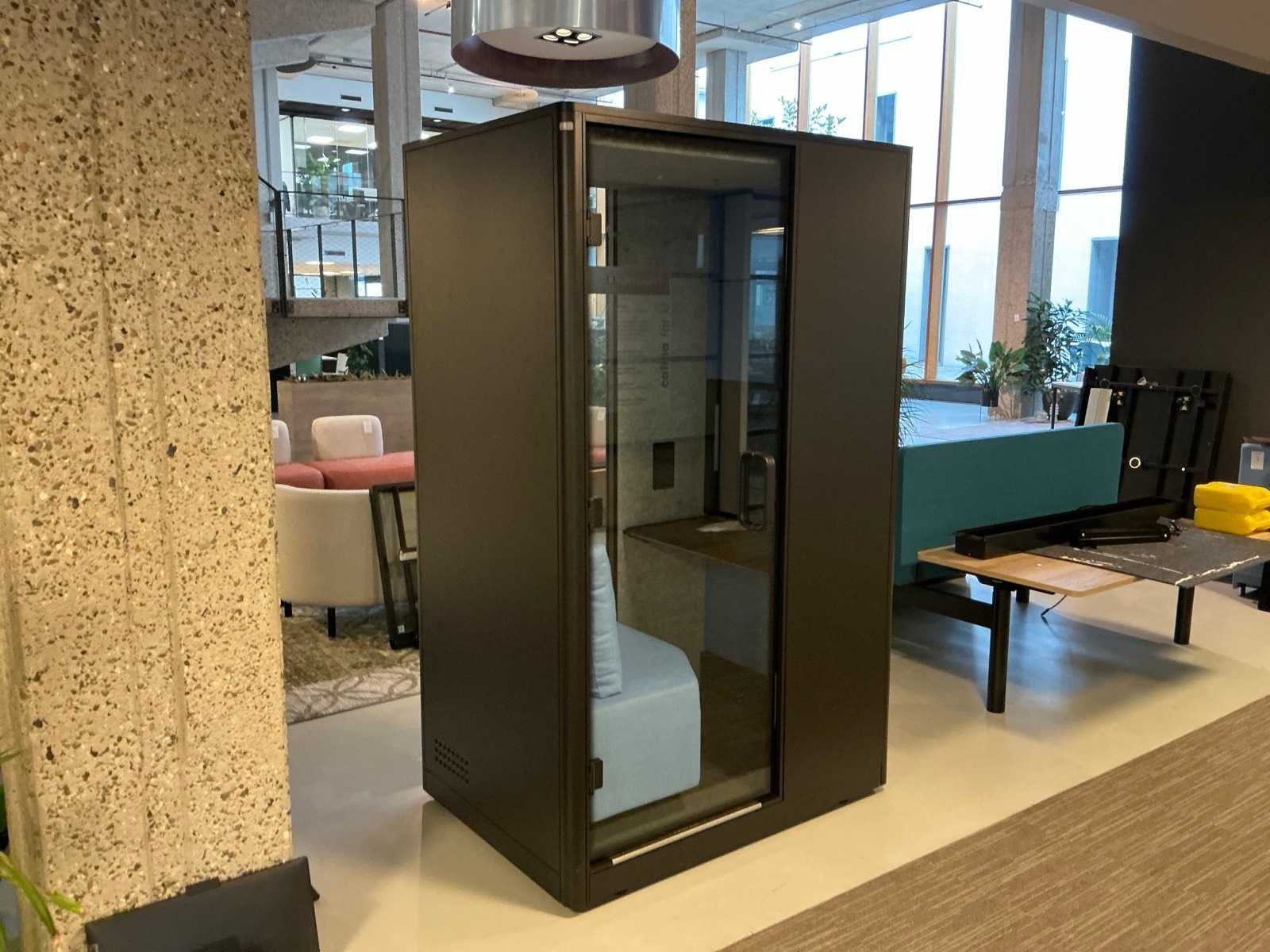 Voorzien van luchtventilatoren monitor aansluiting bezettingsindicator en bank. Dit kavel is gemonteerd. Merk: Nurus Type: Calma for U Lengte: 140cm Breedte: 100cm Hoogte: 224cm