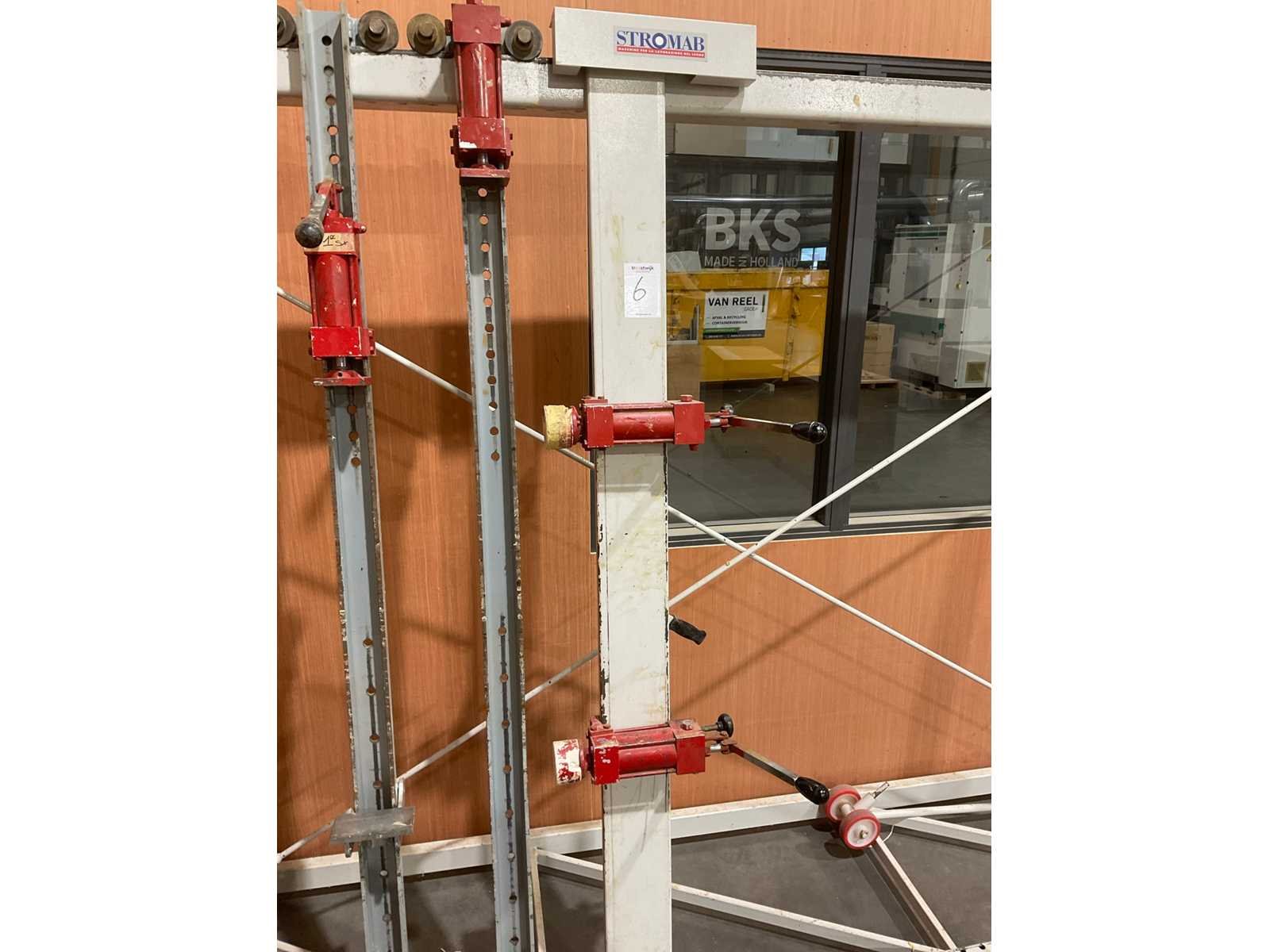 Mechanische korpuspers. Merk: Stromab Type: STR/RO-M Bouwjaar: 2005 Serienummer: 251065 Max. formaat l: 2500mm Max. formaat b: 1800mm Aantal cilinders: 6 Machinegewicht: 400kg Afmeting l: 3300mm Afmeting b: 680mm Afmeting h: 2250mm