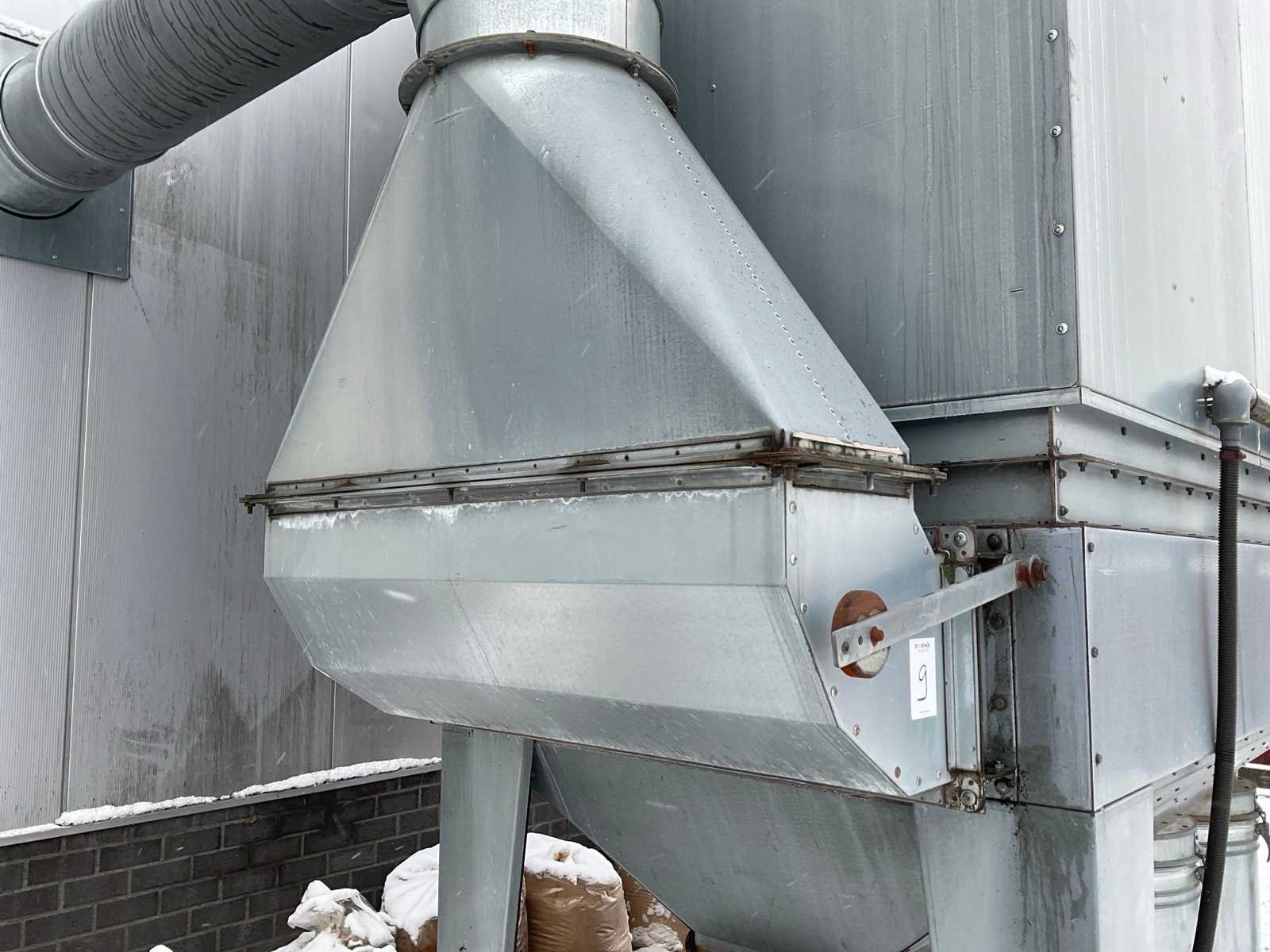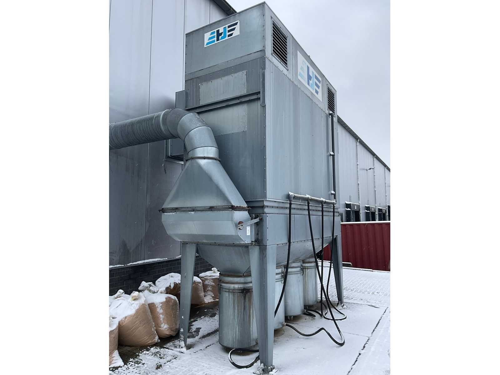 Luchtverplaatsing: 4000m3 per uur, filteroppervlak: 40m2, Voorzien van: (4x) metalen containers, Magnehelic diferentiaal drukmeter, LET OP: OPHAALDAG IS OP 16 MAART OF LATER IN OVERLEG. NEEM CONTACT OP MET ONZE KLANTENSERVICE NA SLUITING VEILING Merk: Holtrop Jansma Type: M50-400 Bouwjaar: 2003 Serienummer: 142003 Aansluiting: 400V Afmeting l: 4100mm Afmeting b: 1450mm Afmeting h: 4800mm