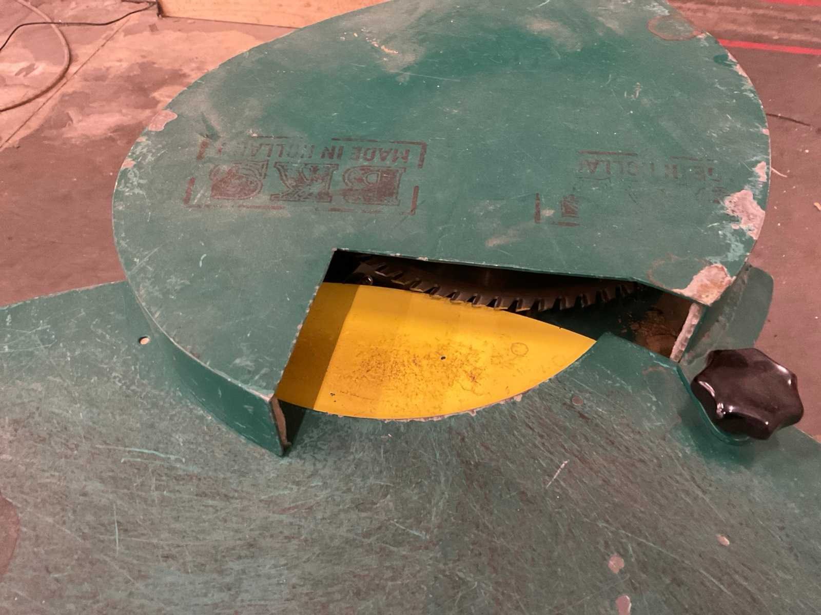 Ø tafel 80cm, voorzien van voetbediening Motorvermogen (kW): 2.2kW Afmeting l: 1400mm Afmeting b: 800mm Afmeting h: 1000mm Aansluiting: 230V