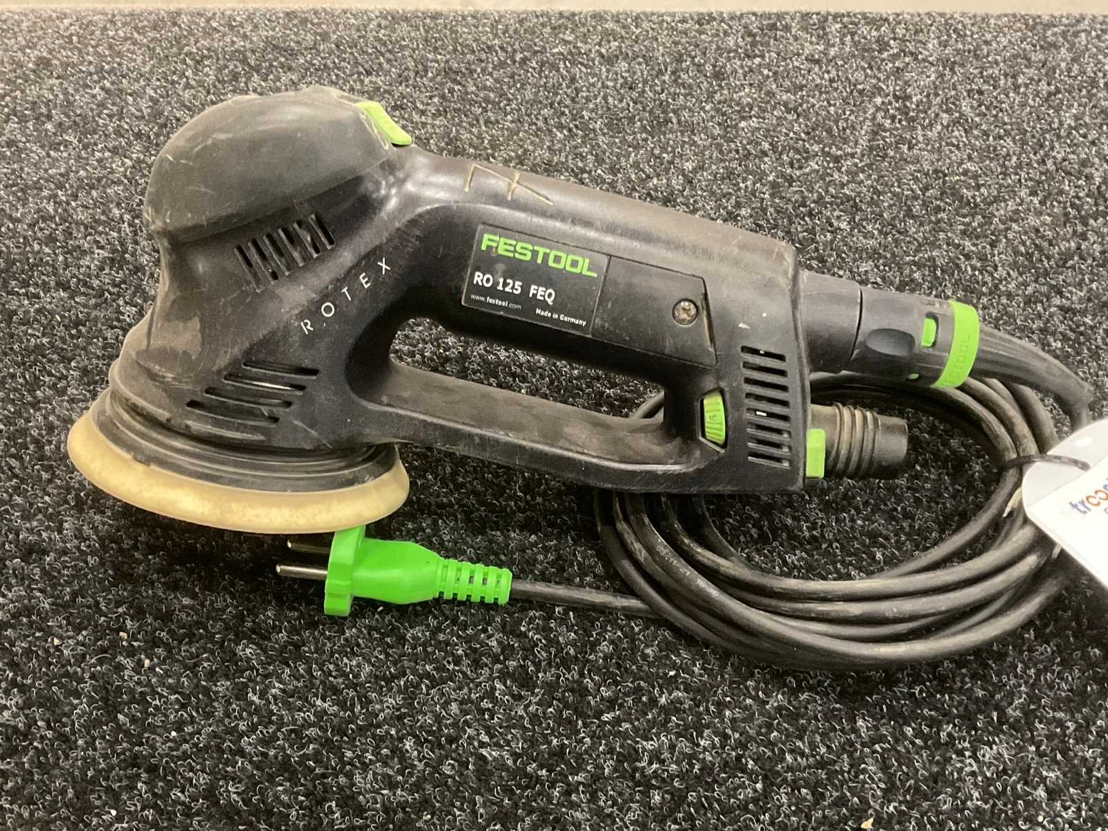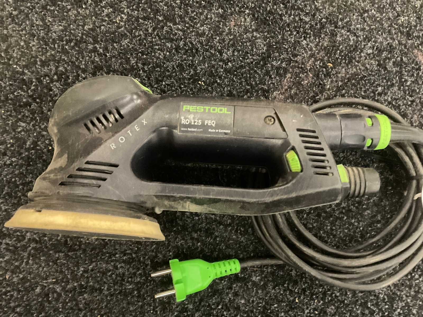 3000-6000 toeren per minuut, Schijfdiameter: 125mm, Aansluiting stofafzuiging: 27mm. Merk: Festool Type: RO 125 FEQ Bouwjaar: 2007 Excentrische schuurmachine: true Vermogen: 500 Aansluiting: 230V