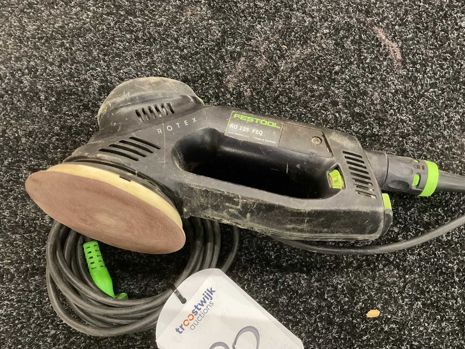 3000-6000 toeren per minuut, Schijfdiameter: 125mm, Aansluiting stofafzuiging: 27mm. Merk: Festool Type: RO 125 FEQ Bouwjaar: 2006 Excentrische schuurmachine: true Vermogen: 500 Aansluiting: 230V
