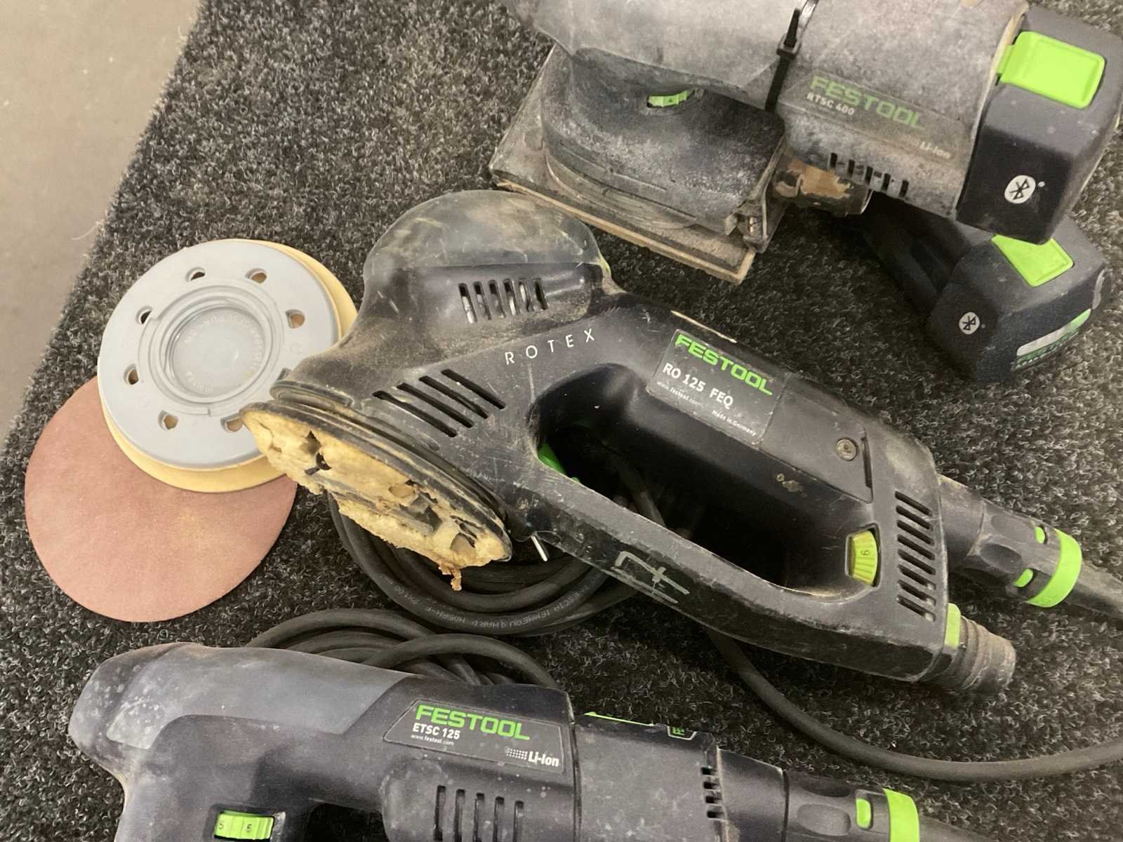 Bestaande uit: (3x) Excenterschuurmachines, (1x) accu- vlakschuurmachine (zonder lader). Merk: Festool Aansluiting: 230V
