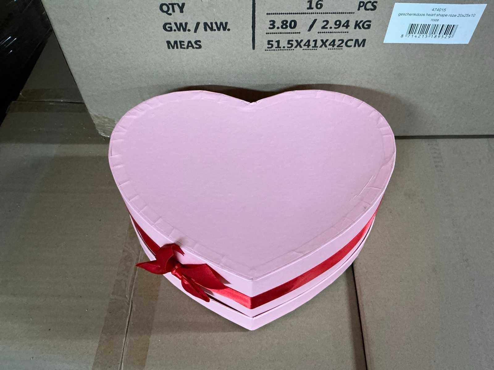 Partij geschenkdozen heart shape roze 20x25x10 roze (144x)