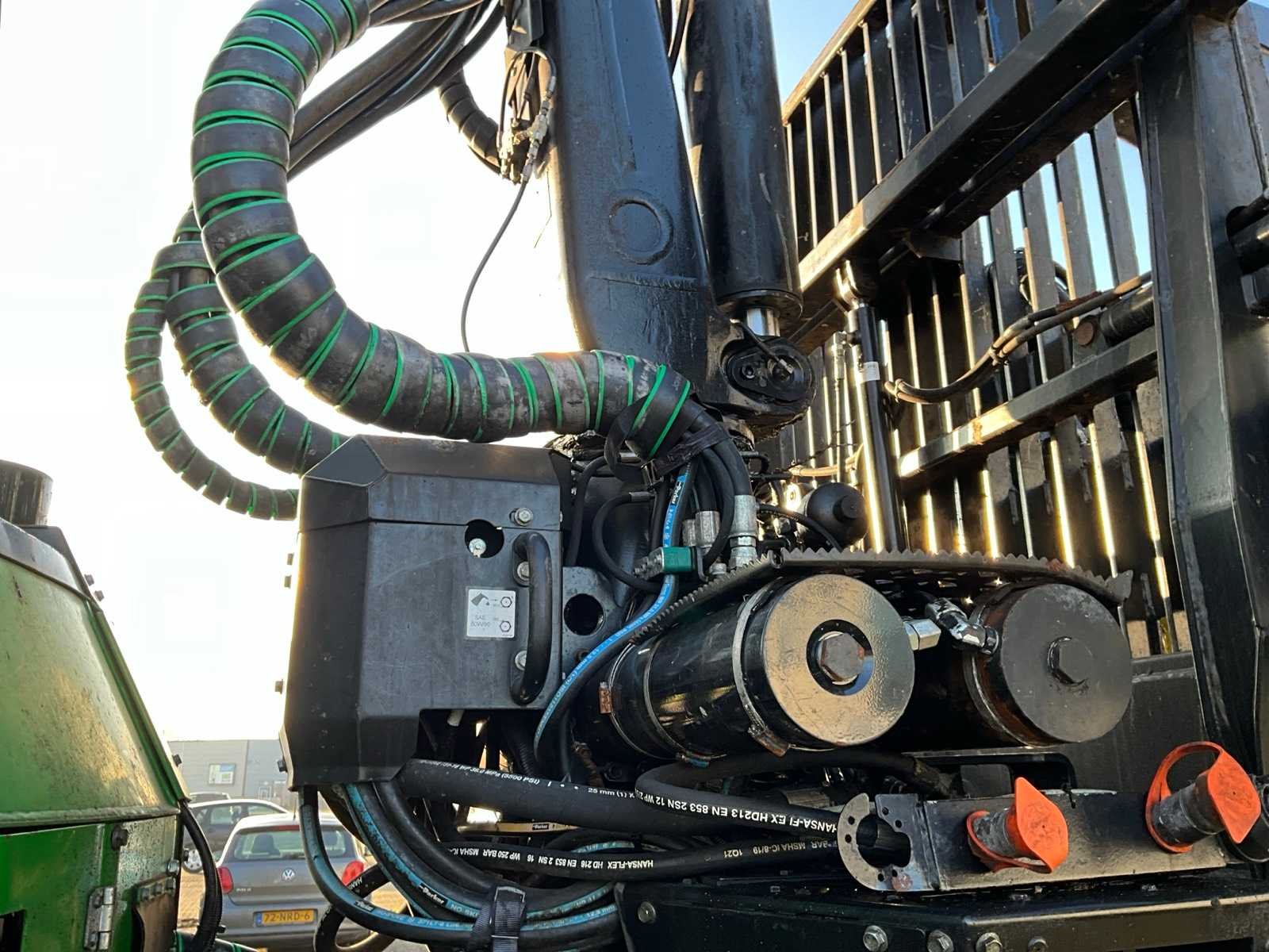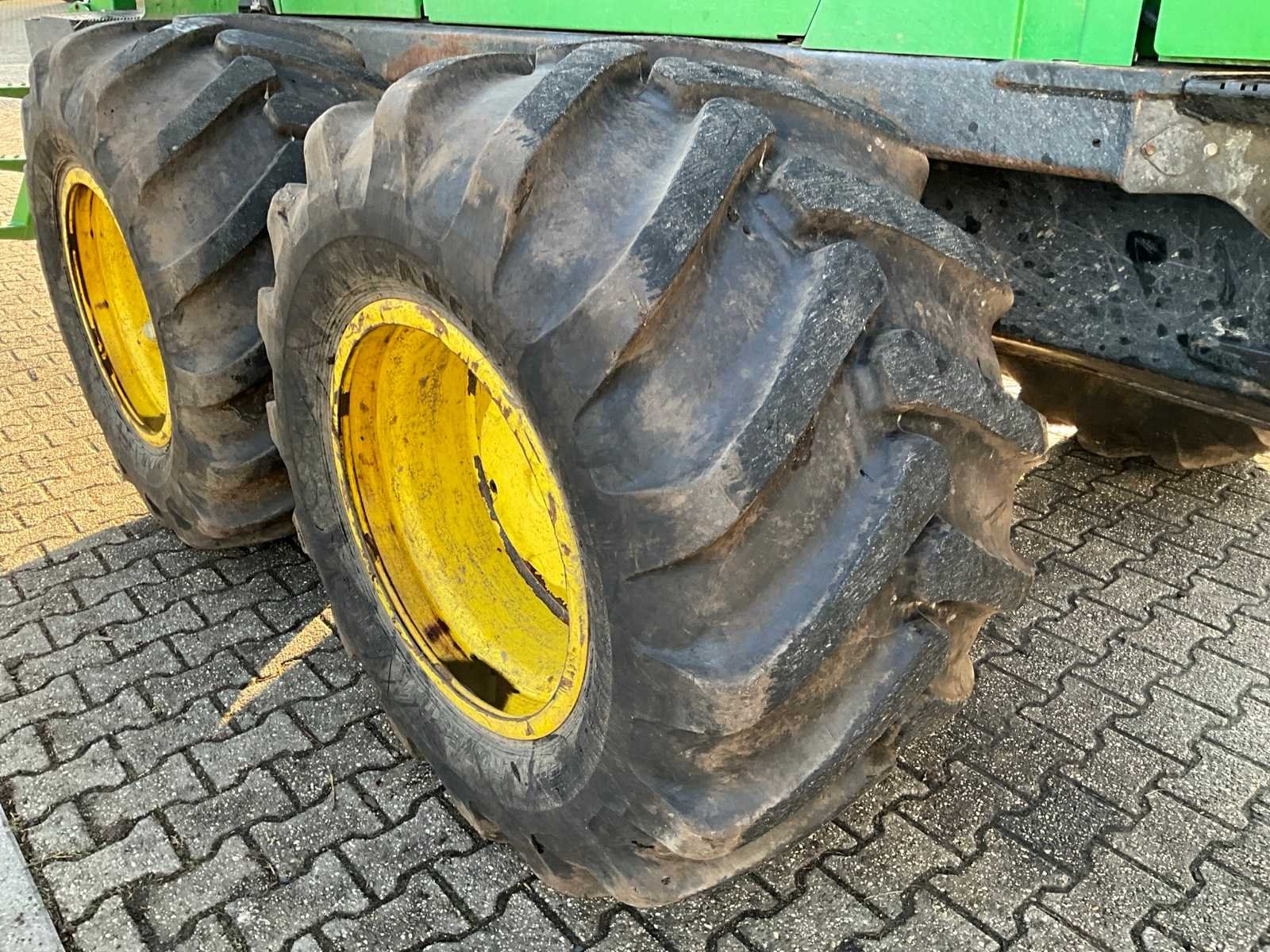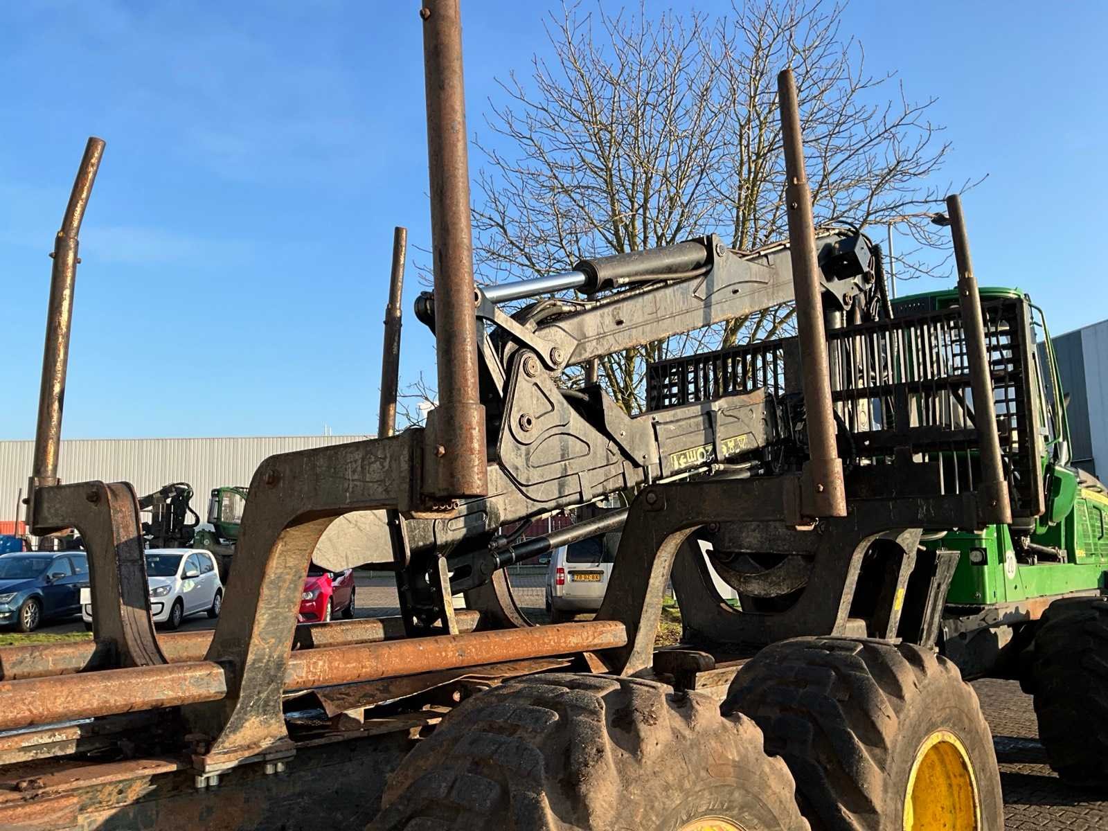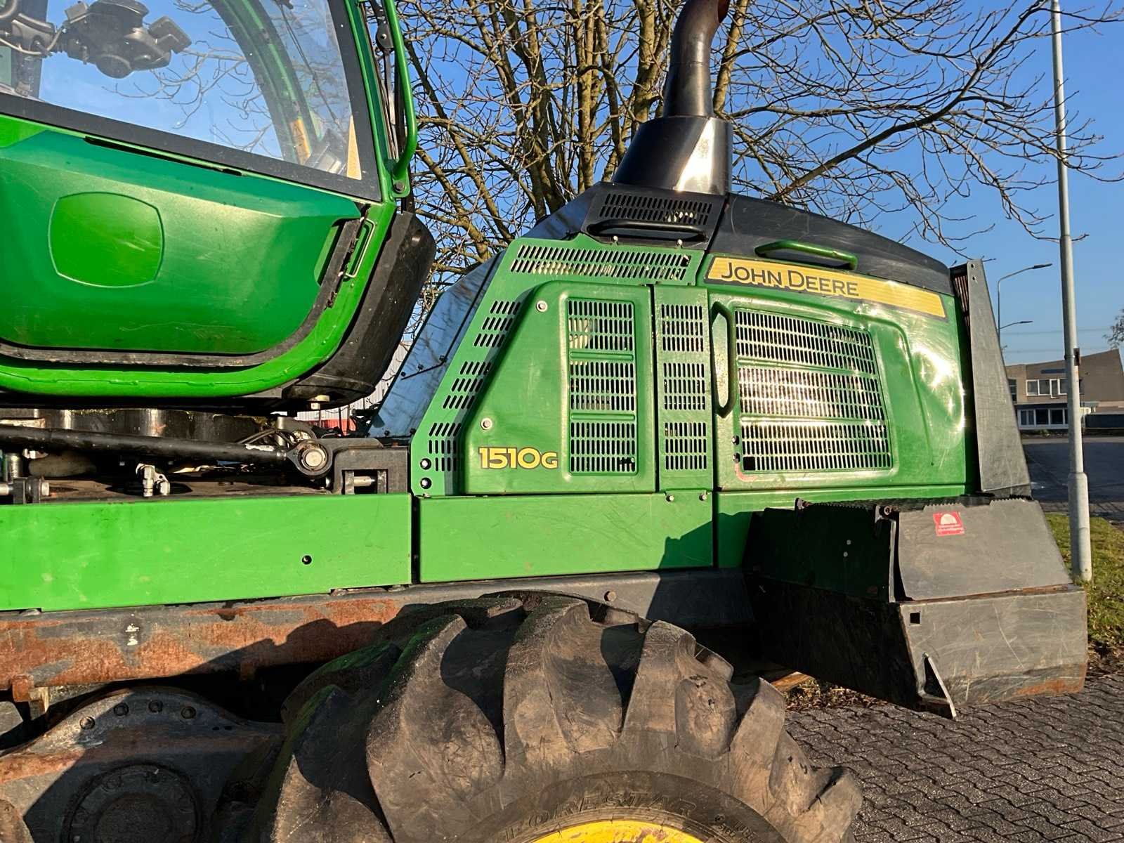 Voorzien van 8x8, hydrostaat aandrijving (2-traps), draai- en nivelleer cabine met centrale smering, CF7S-10mtr laadkraan met binnen liggende slangen, IBC boom control, Hultdins SG360S stammen grijper, kopschot hydraulisch verstelbaar (horizontaal + verticaal), hydraulisch verstelbare laadruimte verbreders, laadruimte lengte 5300 mm, led werkverlichting, hydrauliek- en brandstof vulpomp, centraal smeer systeem, hydraulisch opklapbare trap, standkachel, hydraulische klembank functie, luxe bestuurdersstoel (verwarmd, luchtverstelling verstelbaar, geventileerd), XL4 besturingssysteem, 4G MTG kit, Timbermatic Maps, documentatie, biologische hydraulische olie, Sun blinds, Merk: John Deere Type: 1510G Tier IV Bouwjaar: 2018 Serienummer: 1WJ1510GHJF003791 Motorvermogen (kW): 156kW Afgelezen urenstand: 13100 Versnellingsbaktype: Hydrostaat Bandenmaat voor: Alliance 710/45-26.5 A344 Bandenmaat achter: Nokian 710/45-26.5 Forest King F2 Cabine: true Luchtgeveerde stoel: true Totale afmeting L: 11000mm Totale afmeting Breedte: 2965mm Totale afmeting Hoogte: 3850mm