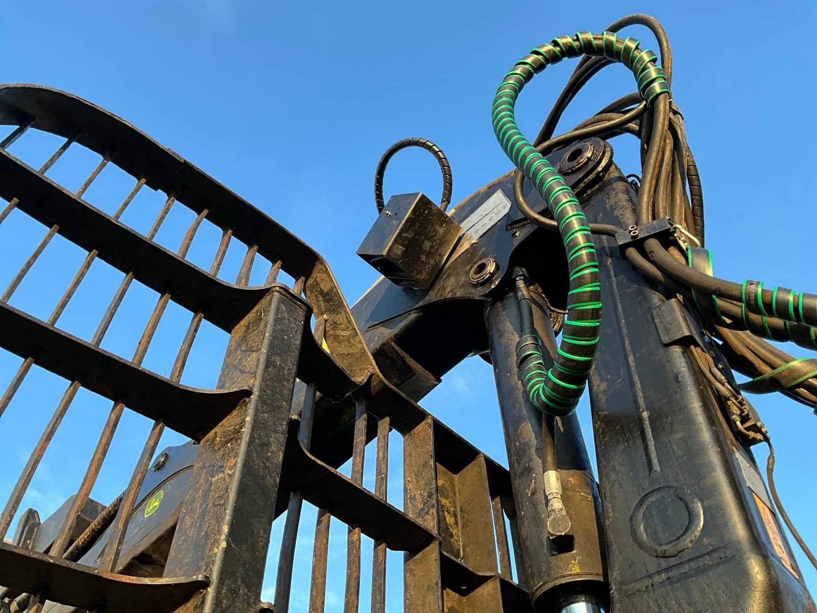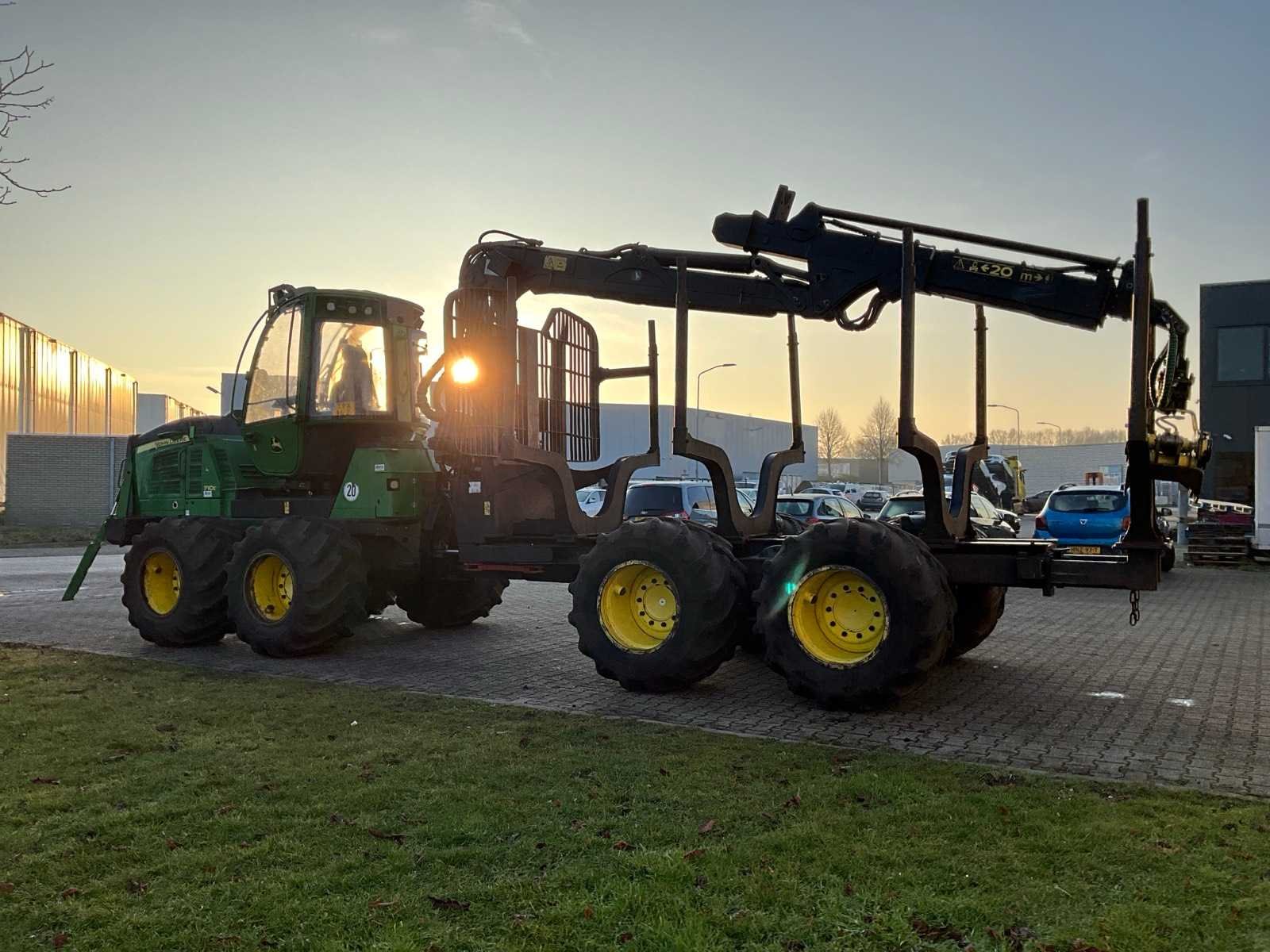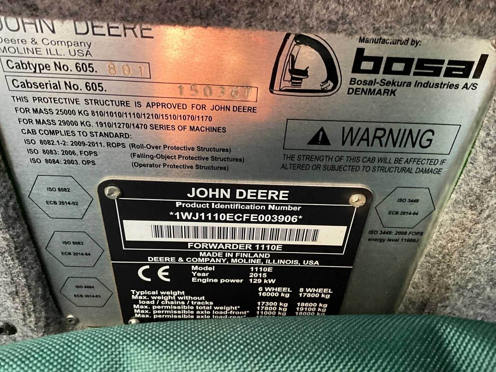 8x8, hydrostaat aandrijving (2-traps), draai- en nivelleer cabine, CF5-10mtr laadkraan met binnen liggende slangen, Hultdins SG360 stammen grijper, laadruimte lengte van 4800 tot 5300 mm (mechanisch uitschuifbaar), weg verlichting, led werkverlichting, kopschot hydraulisch verstelbaar, brandstof- en hydrauliek vulpomp, XL4 PC, 4G MTG kit, Timbermatic Maps, luxe bestuurdersstoel zitting (luchtverstelling, verwarmd, geventileerd), standkachel, massa slot, off line filter, achteruitrijcamera, hydraulisch opklapbare trap, TUV + RDW Papieren Merk: John deere Type: 1110E IT4 Bouwjaar: 2015 Serienummer: 1WJ1110ECFE003906 Kenteken: TPX-16-Z Motorvermogen (kW): 129kW Afgelezen urenstand: 13920 Versnellingsbaktype: Hydrostaat Bandenmaat voor: Nokian 710/45-26.5 TRS2 Bandenmaat achter: Nokian 800/40-26.5 TRS2 Cabine: true Luchtgeveerde stoel: true Totale afmeting L: 11000mm Totale afmeting Breedte: 2900mm Totale afmeting Hoogte: 3850mm Datum eerste toelating: 2015-06-30