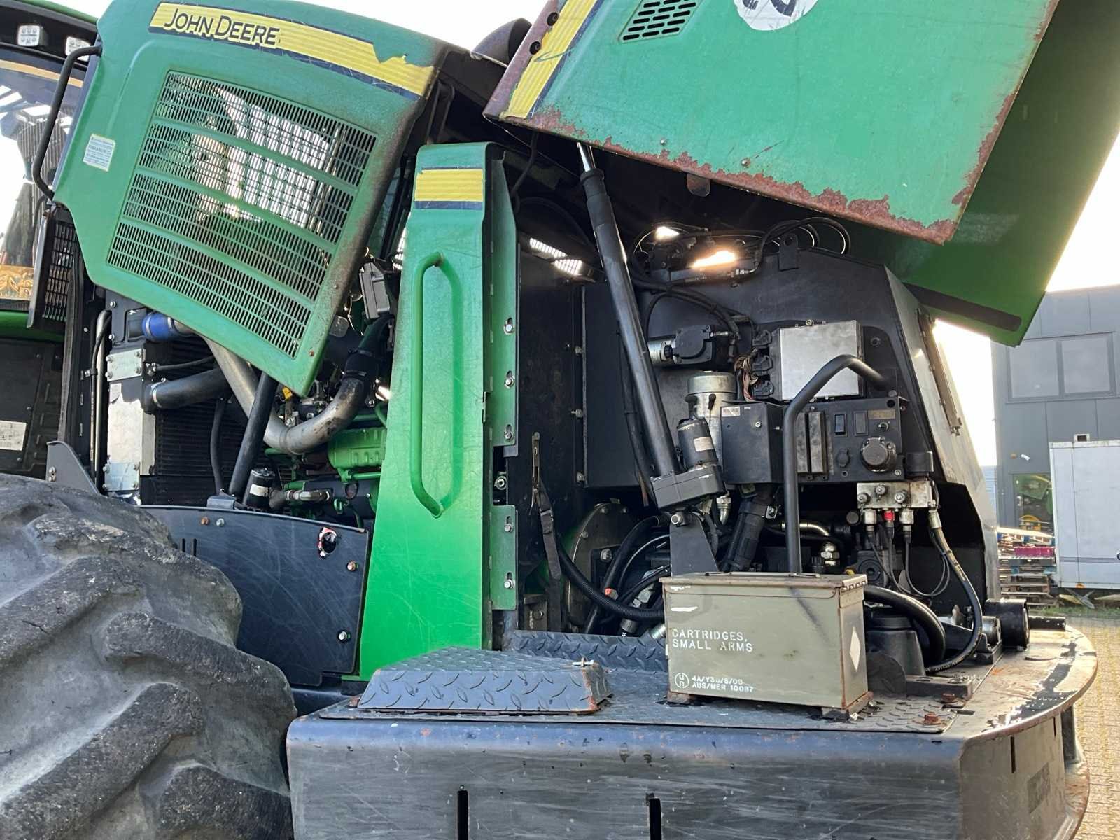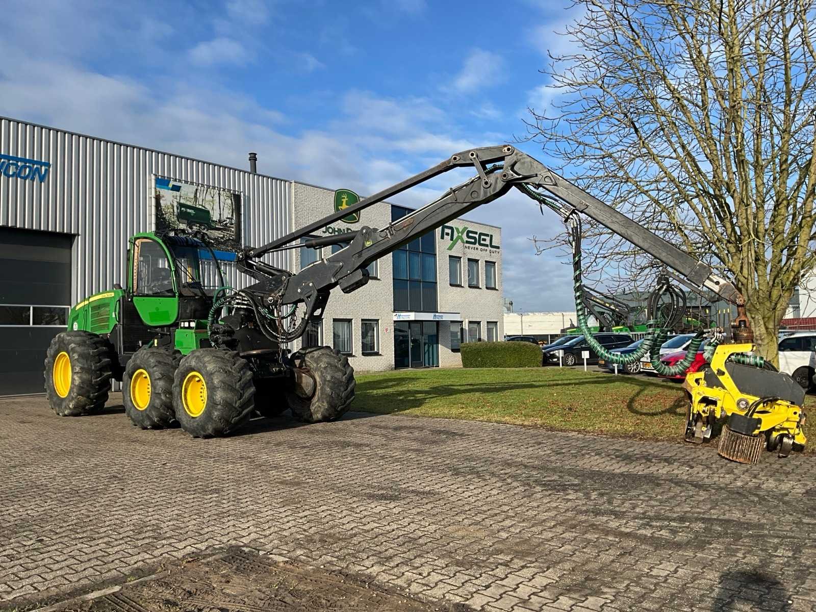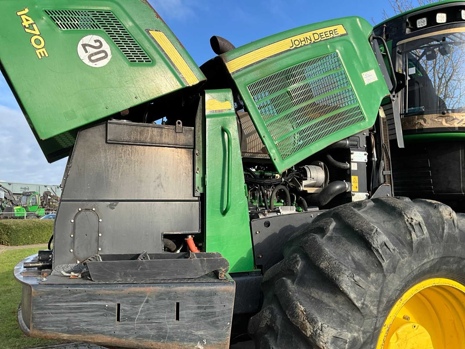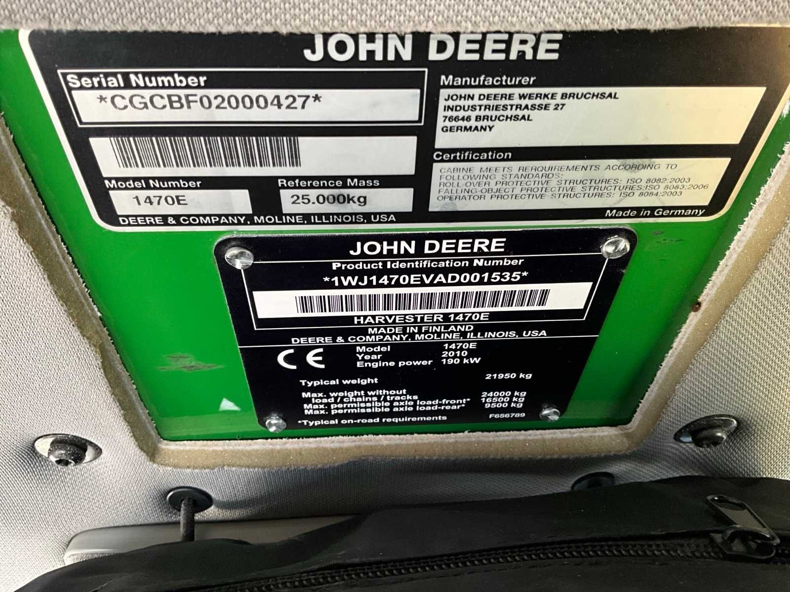 Voorzien van 6x6, hydrostaat (2-traps), werkverlichting, CH8-11mtr kraan met harvester kop, draai- en nivelleer cabine, centrale smering op cabine lager, automatisch smeersysteem, elektrisch te openen motorkap, Olie vulpomp, standkachel, luxe bestuurdersstoel (luchtverstelling, geventileerde en verwarmd), Sun blinds, vacuümpomp voor hydraulisch systeem, aanbouwdeel: Harvester kop H270 (serienummer 1EJH270XVH0002057), 2 walsen kop, Hultdins zaagsysteem, Merk: John Deere Type: 1470E ECO3 Bouwjaar: 2010 Serienummer: 1WJ1470EVAD001535 Motorvermogen (kW): 190kW Afgelezen urenstand: 19889 Versnellingsbaktype: hydrostaat Bandenmaat voor: Nokian 750/55-26.5 Forest King VRS L2 Bandenmaat achter: Nokia 700/70-34 Tractor Special Cabine: true Totale afmeting L: 11000mm Totale afmeting Breedte: 2960mm