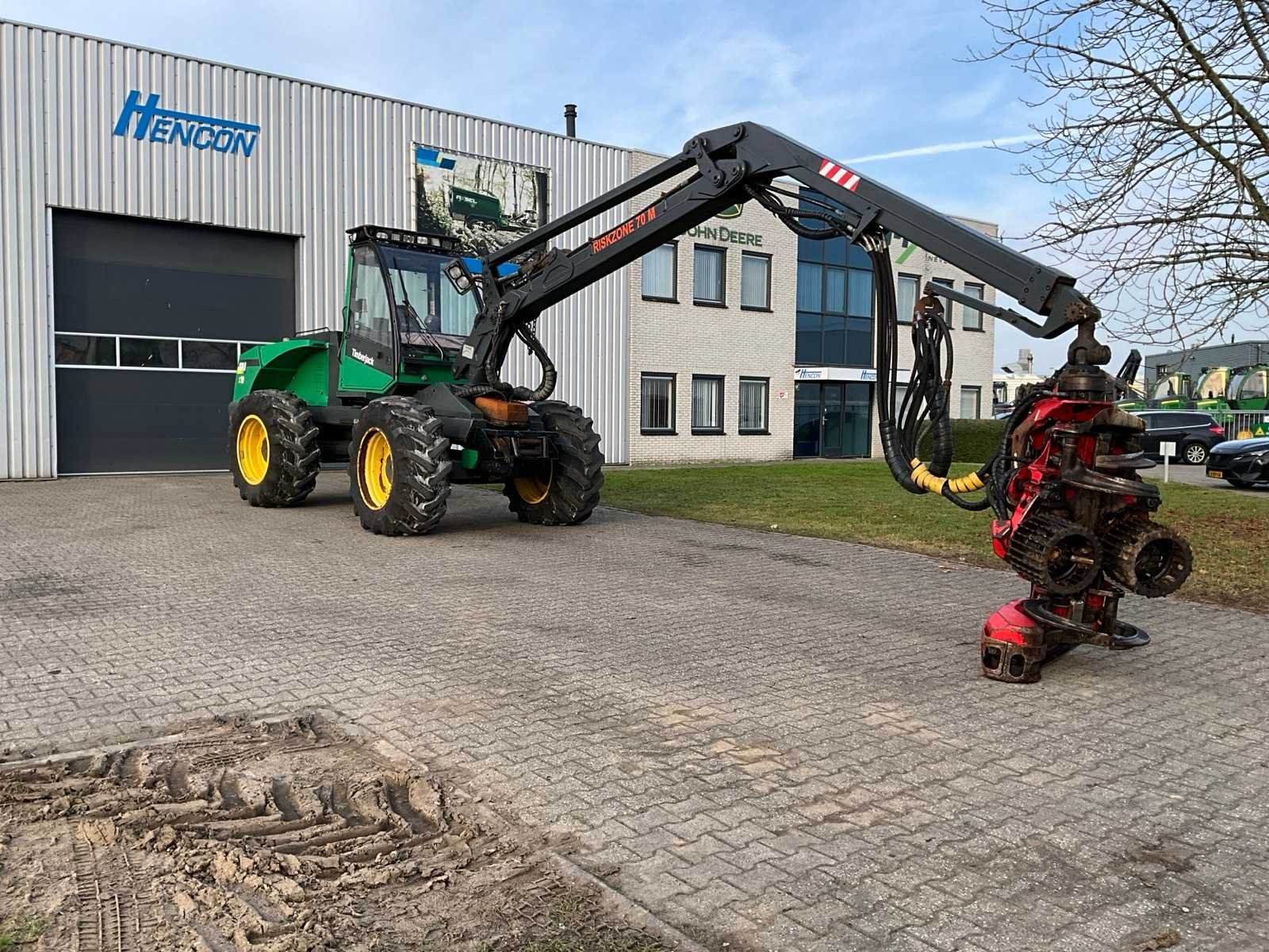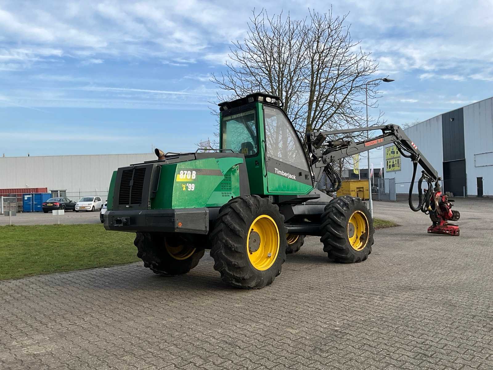 Volgens opgave motorrevisie bij 23.000 hr, voorzien van 4x4, hydrostaat, Timberjack TJ170H 9,7 mtr kraan met harvester kop, lier, hydraulische as stempeling, aanbouwdeel: Harvester kop SP561, 2 walsen kop, Merk: Timberjack Type: 870B Bouwjaar: 1999 Kenteken: T-85-DLB Afgelezen urenstand: 32379 Versnellingsbaktype: hydrostaat Bandenmaat voor: Alliance / Nokian 600/65-34 Bandenmaat achter: Alliance Forestar600/65-34 Cabine: true Totale afmeting L: 10500mm Totale afmeting Breedte: 2700mm Totale afmeting Hoogte: 3700mm Datum eerste toelating: 1999-06-30