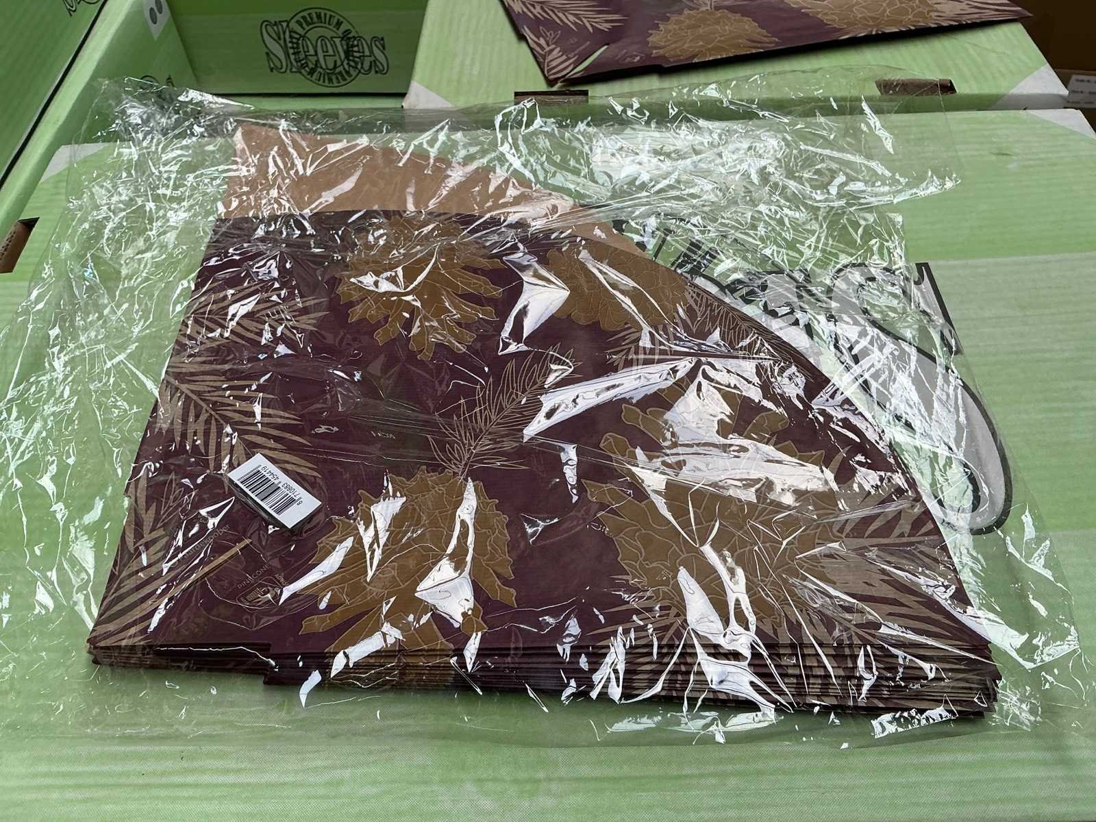 35x35cm. 37 dozen, per doos 500 bloemenhoezen = totaal 18500 bloemenhoezen.
