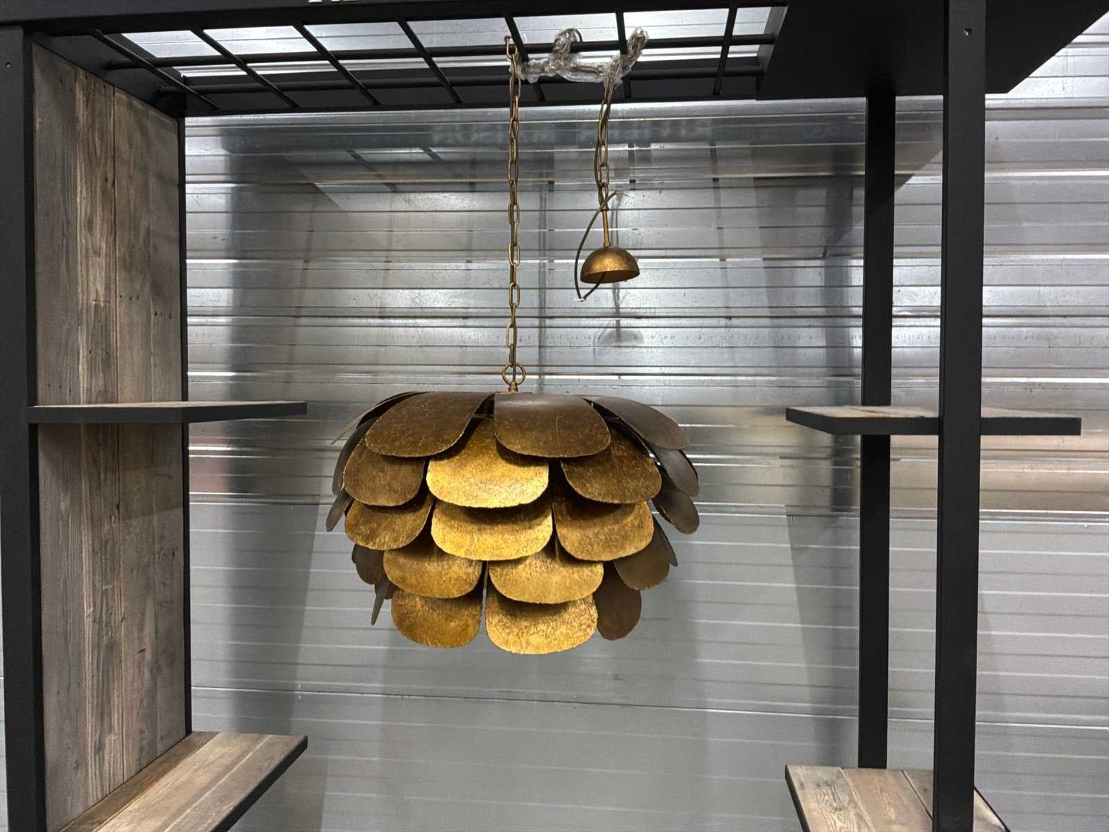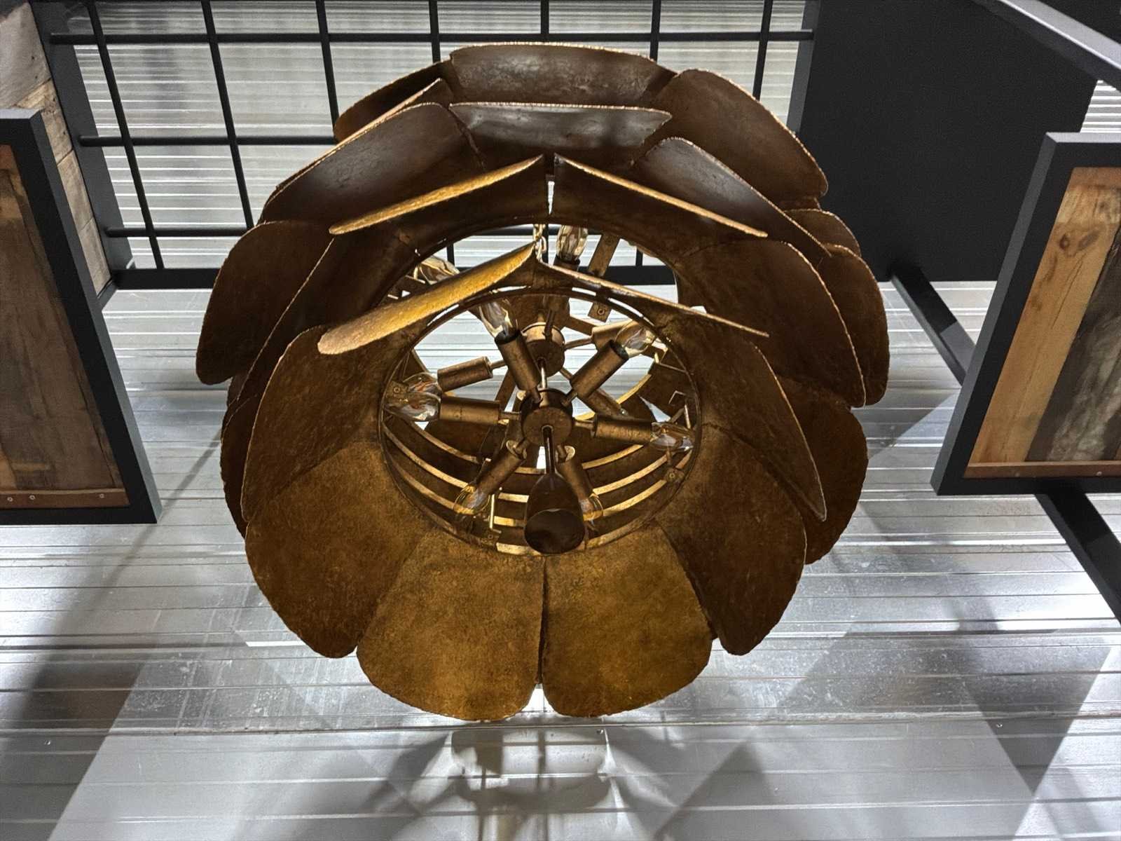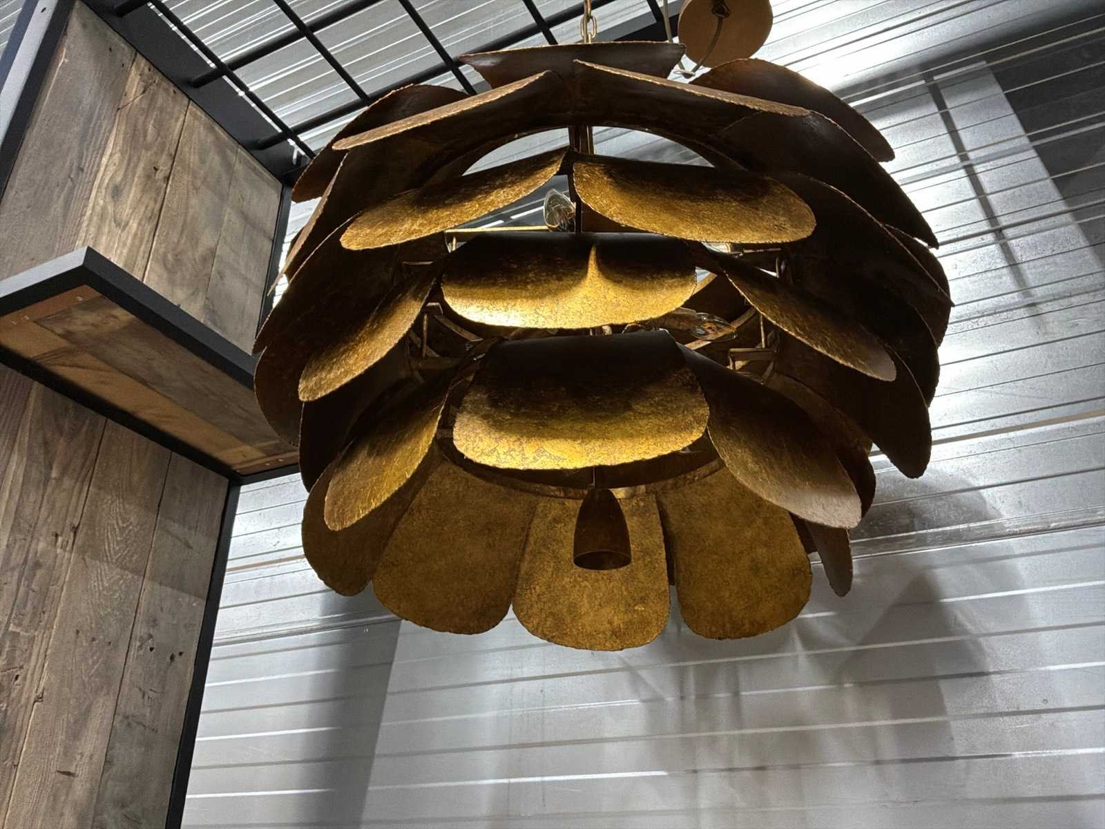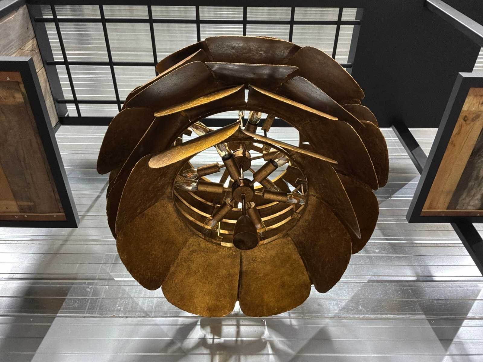 Model: Artisjok Fitting: 12 Lichtbron: 12 Kleur: Ambachtelijk brons Lengte: 75cm Breedte: 75cm Hoogte: 50cm