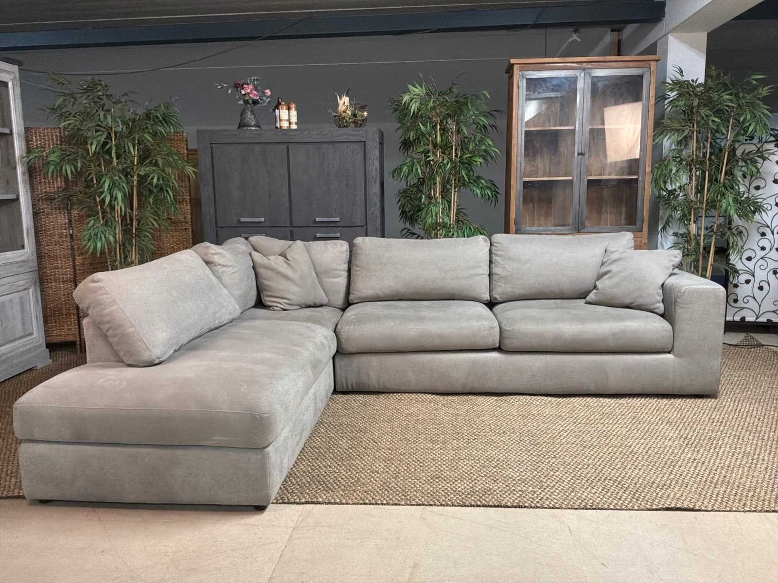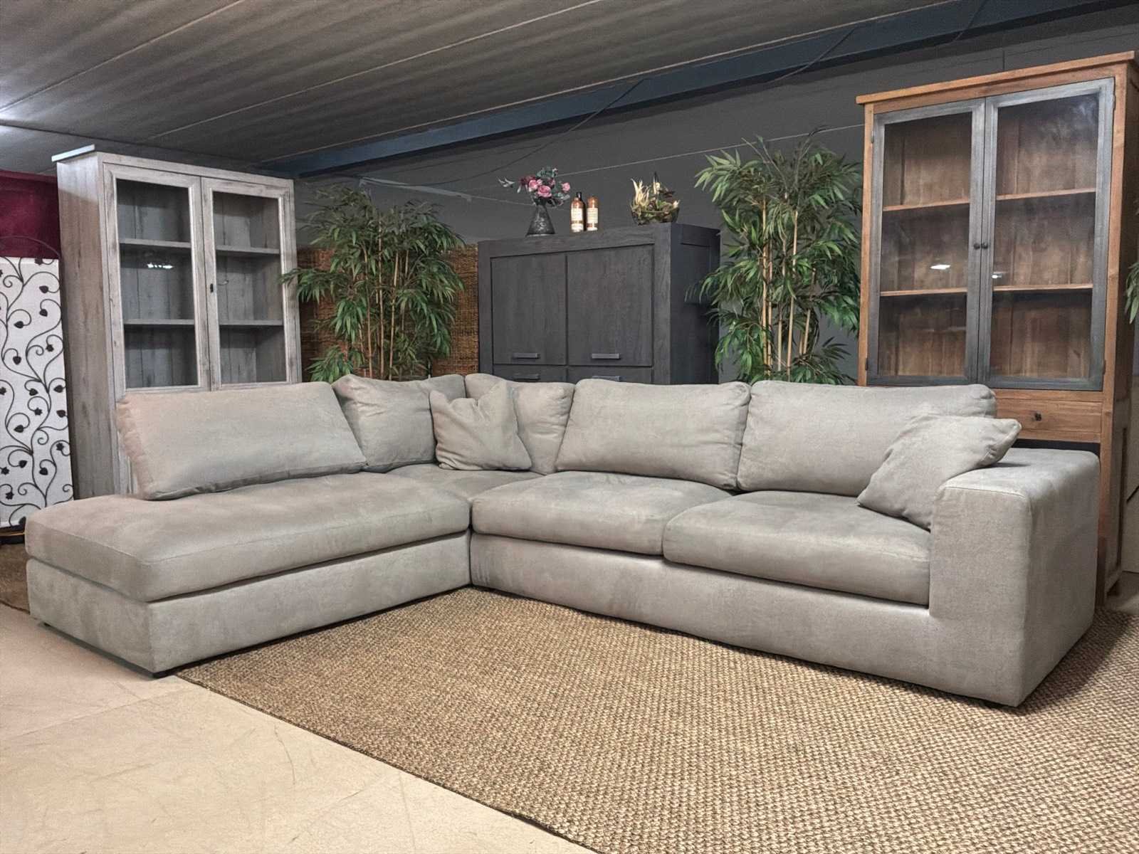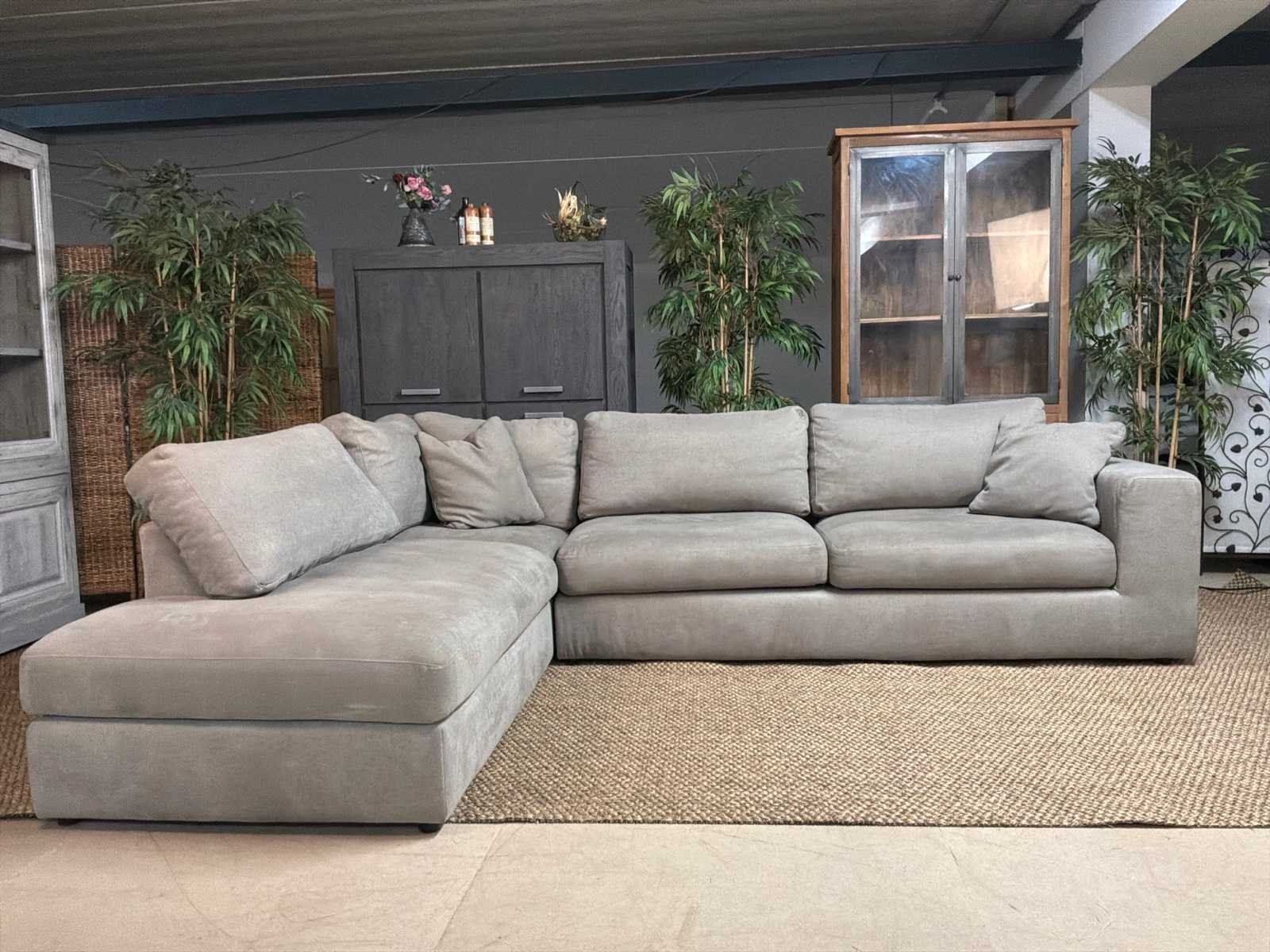Bankstel is 2-delig Zware uitvoering, Model: Maison Kleur: Grijs Lengte: 240cm Breedte: 330cm Hoogte: 90cm Zithoogte: 45cm Materiaal: Stof