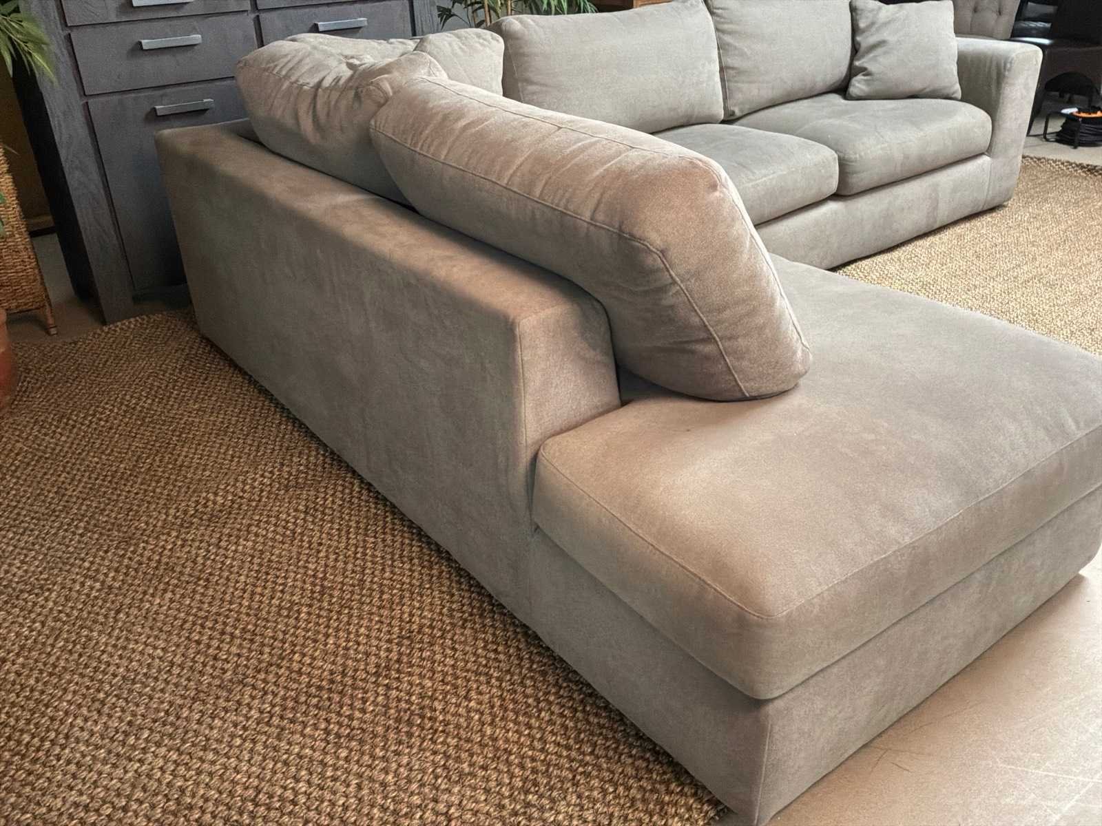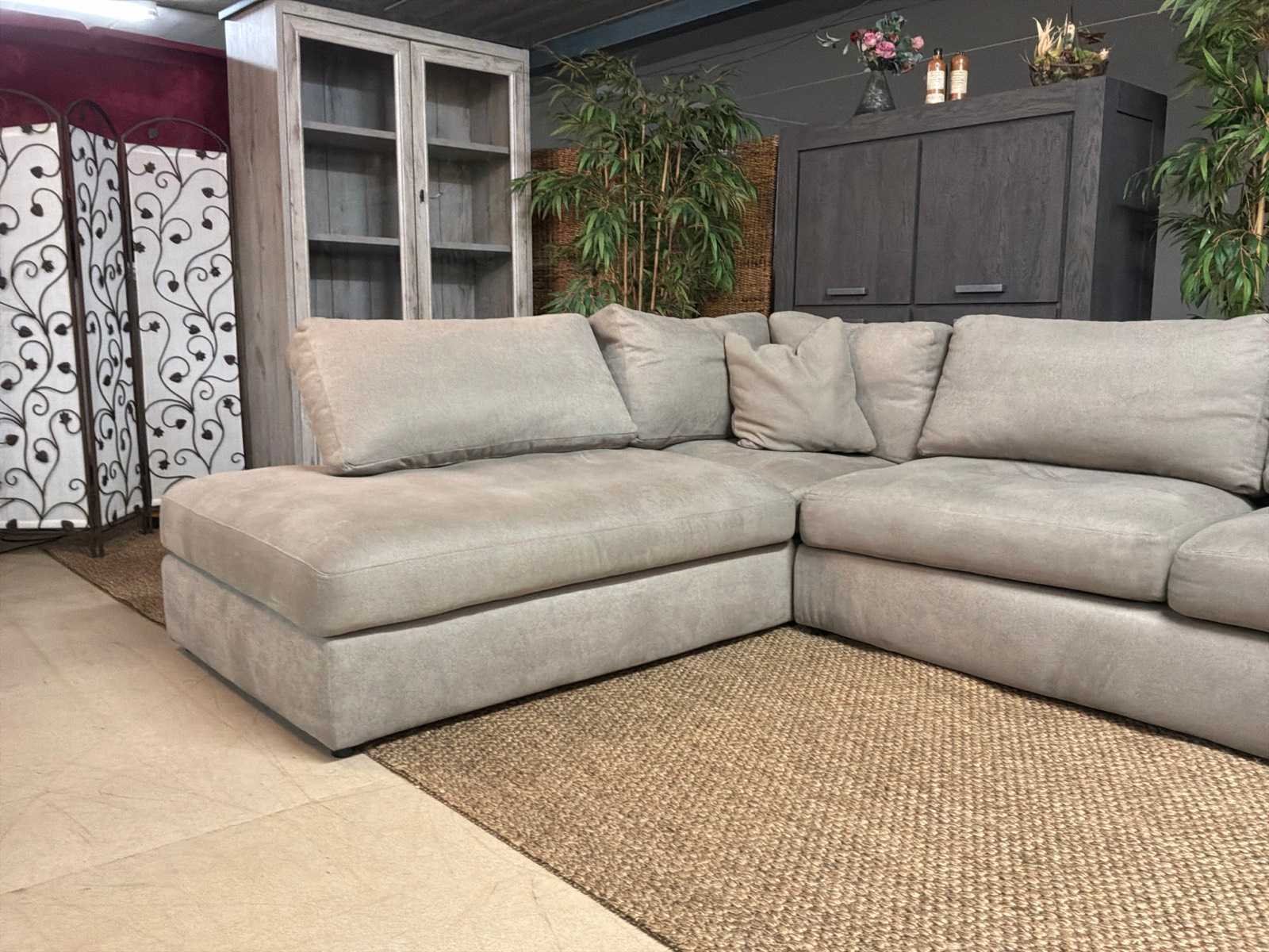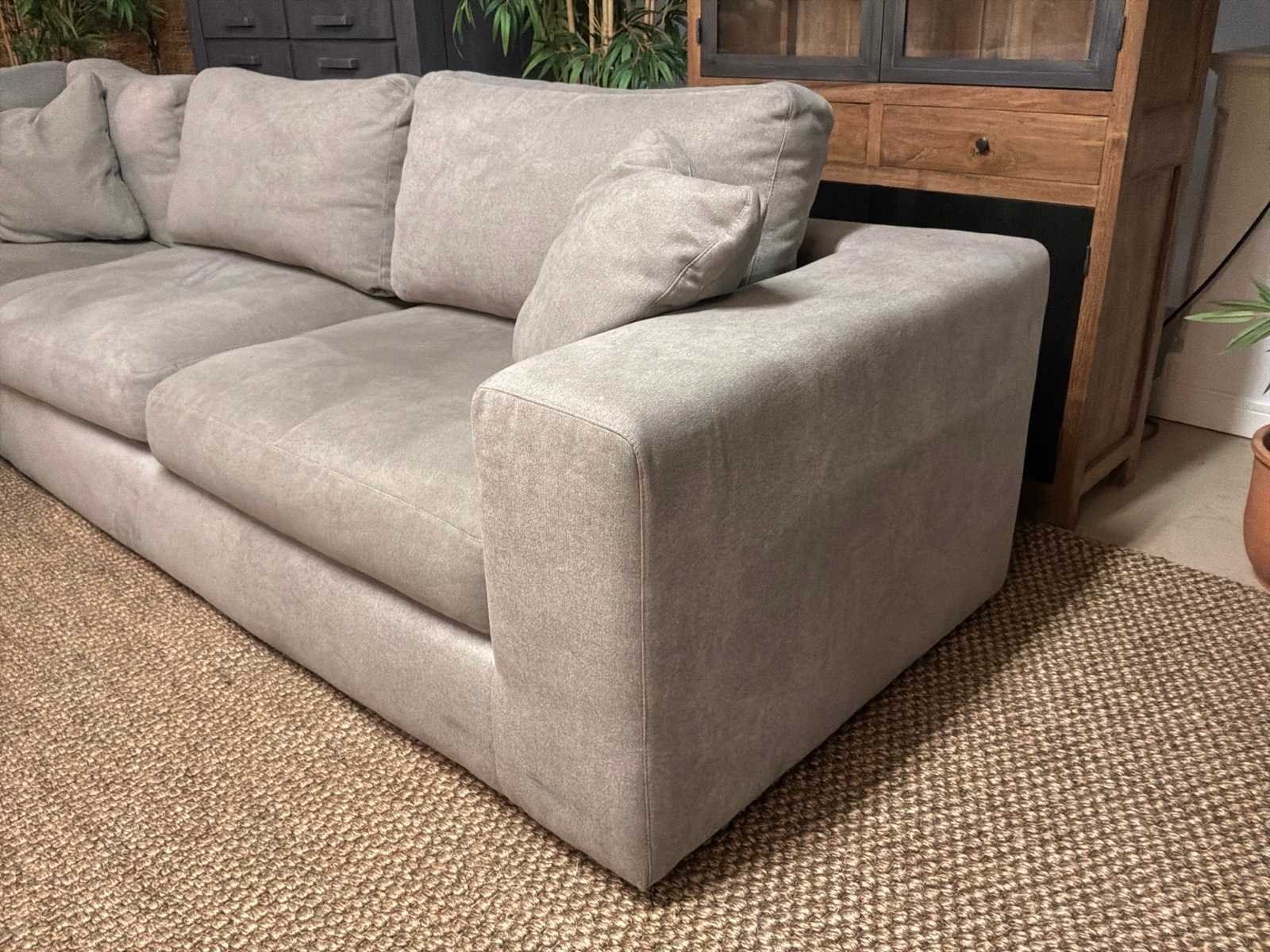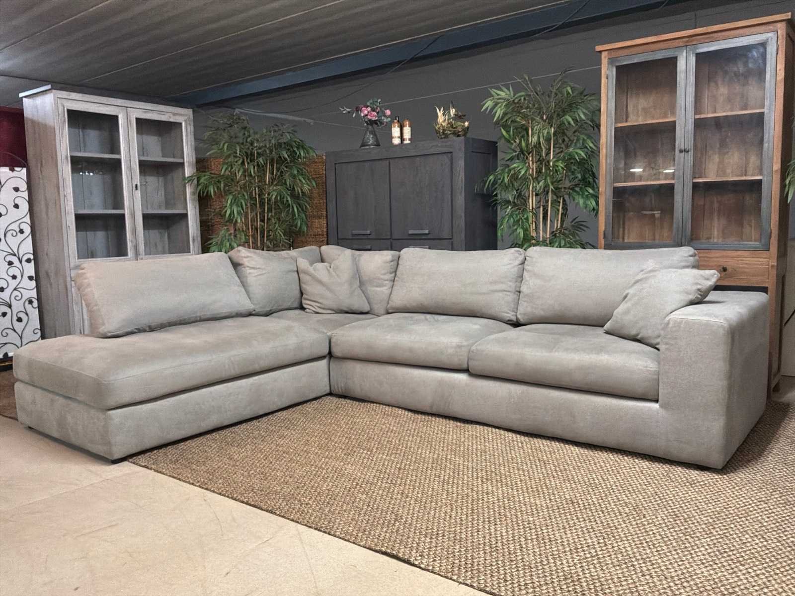 Bankstel is 2-delig Zware uitvoering, Model: Maison Kleur: Grijs Lengte: 240cm Breedte: 330cm Hoogte: 90cm Zithoogte: 45cm Materiaal: Stof