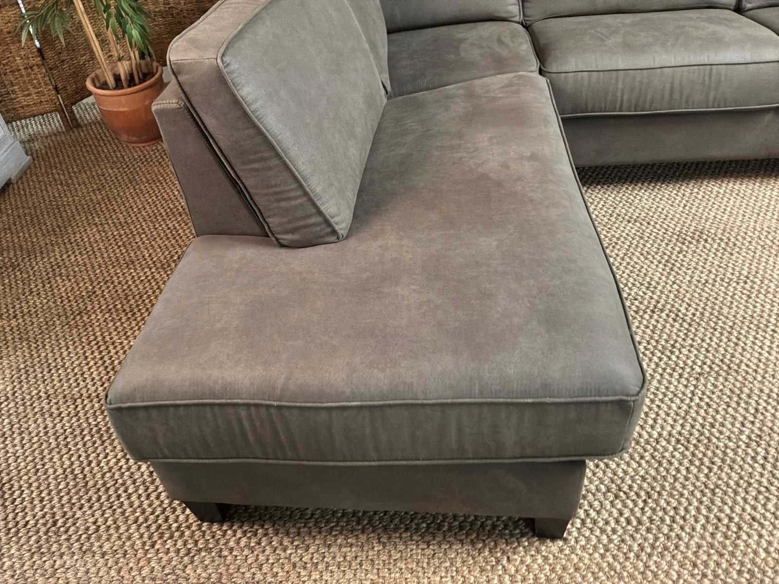 Bank is 2-delig Model: Chelsea Lengte: 240cm Breedte: 255cm Hoogte: 90cm Zithoogte: 50cm Materiaal: Leer