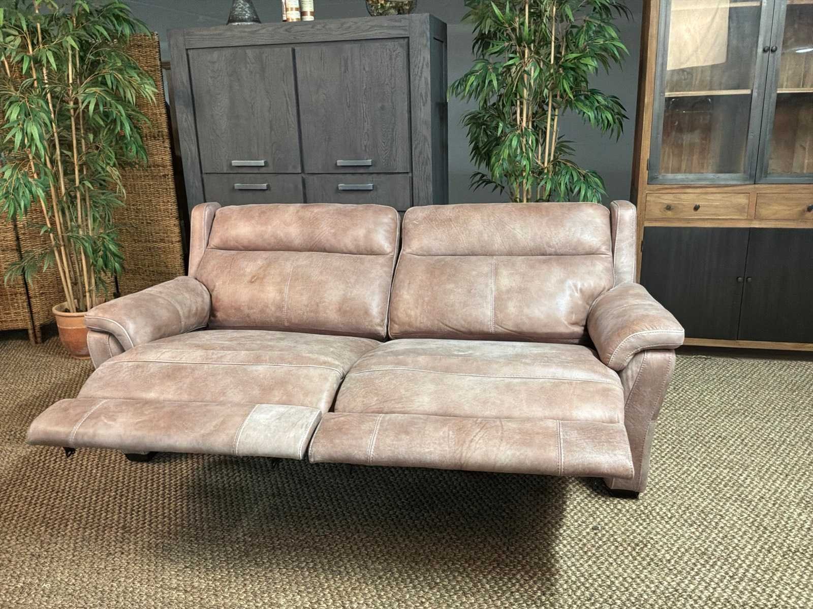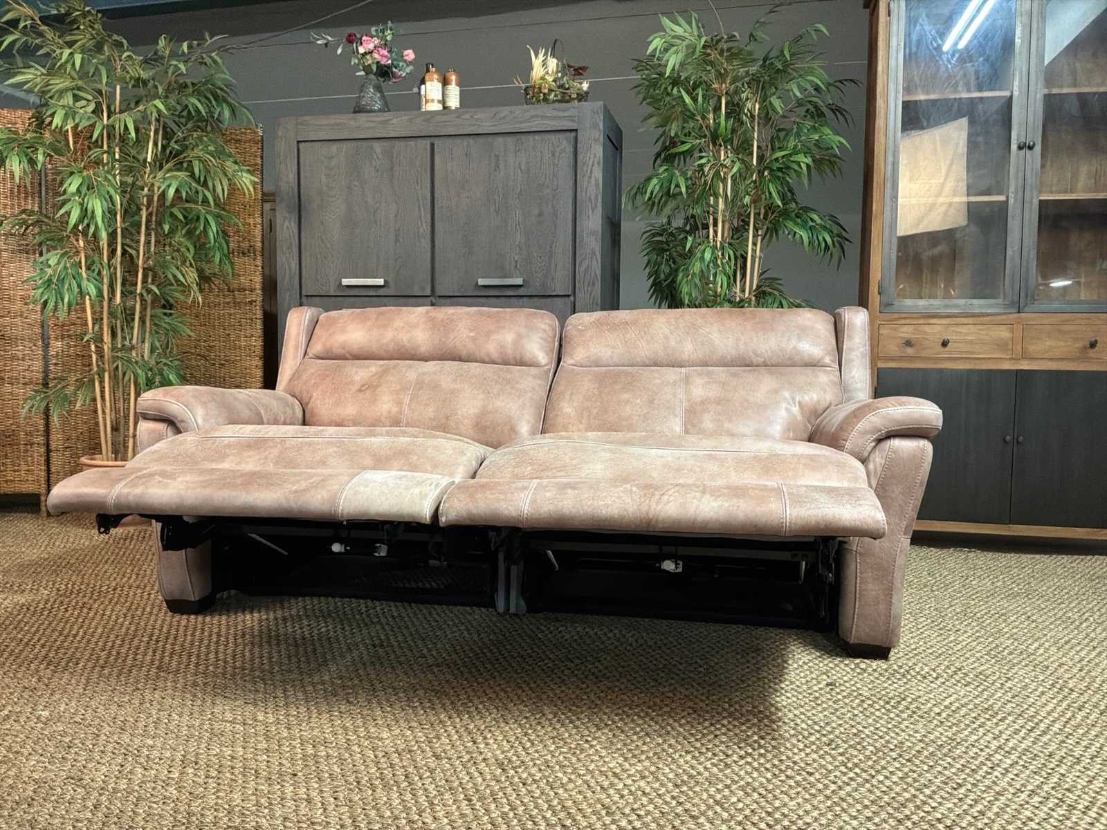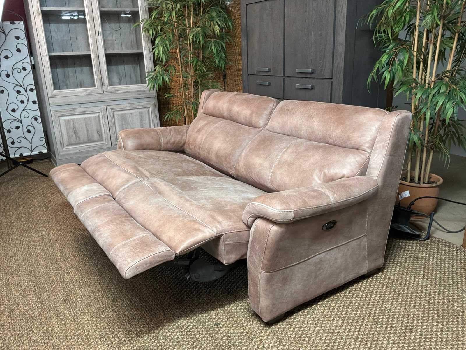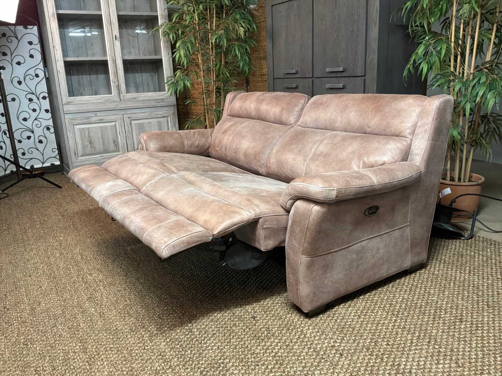 Model: Roma electrisch Kleur: Grijs Lengte: 93cm Breedte: 210cm Hoogte: 100cm Zithoogte: 46cm Materiaal: Leer
