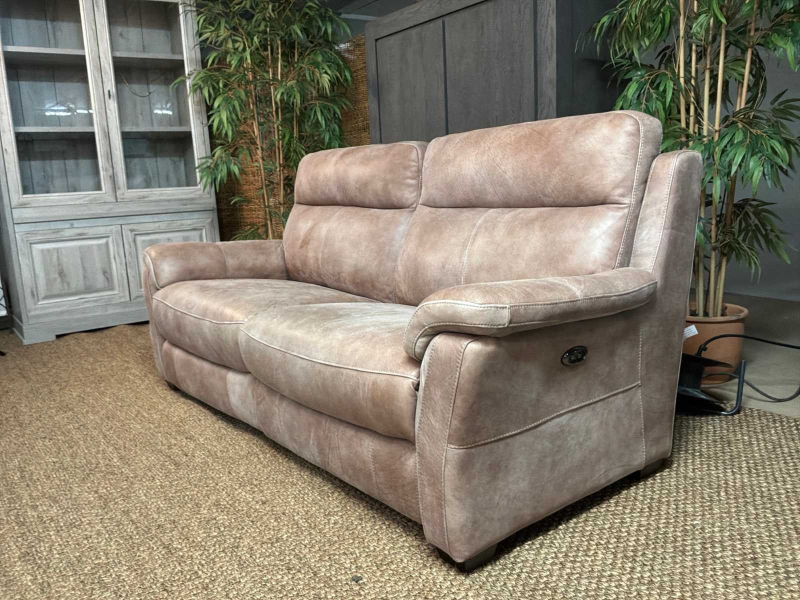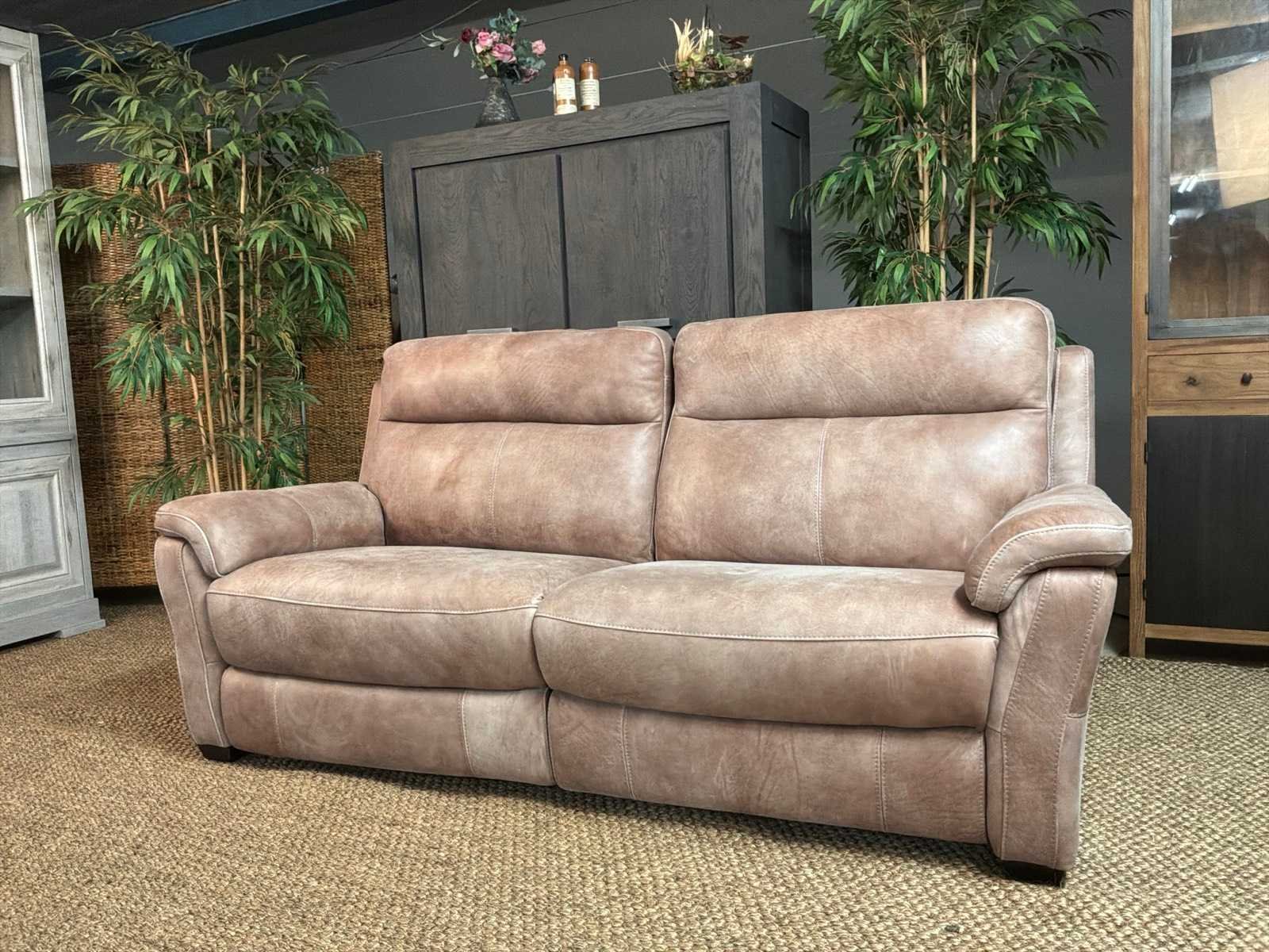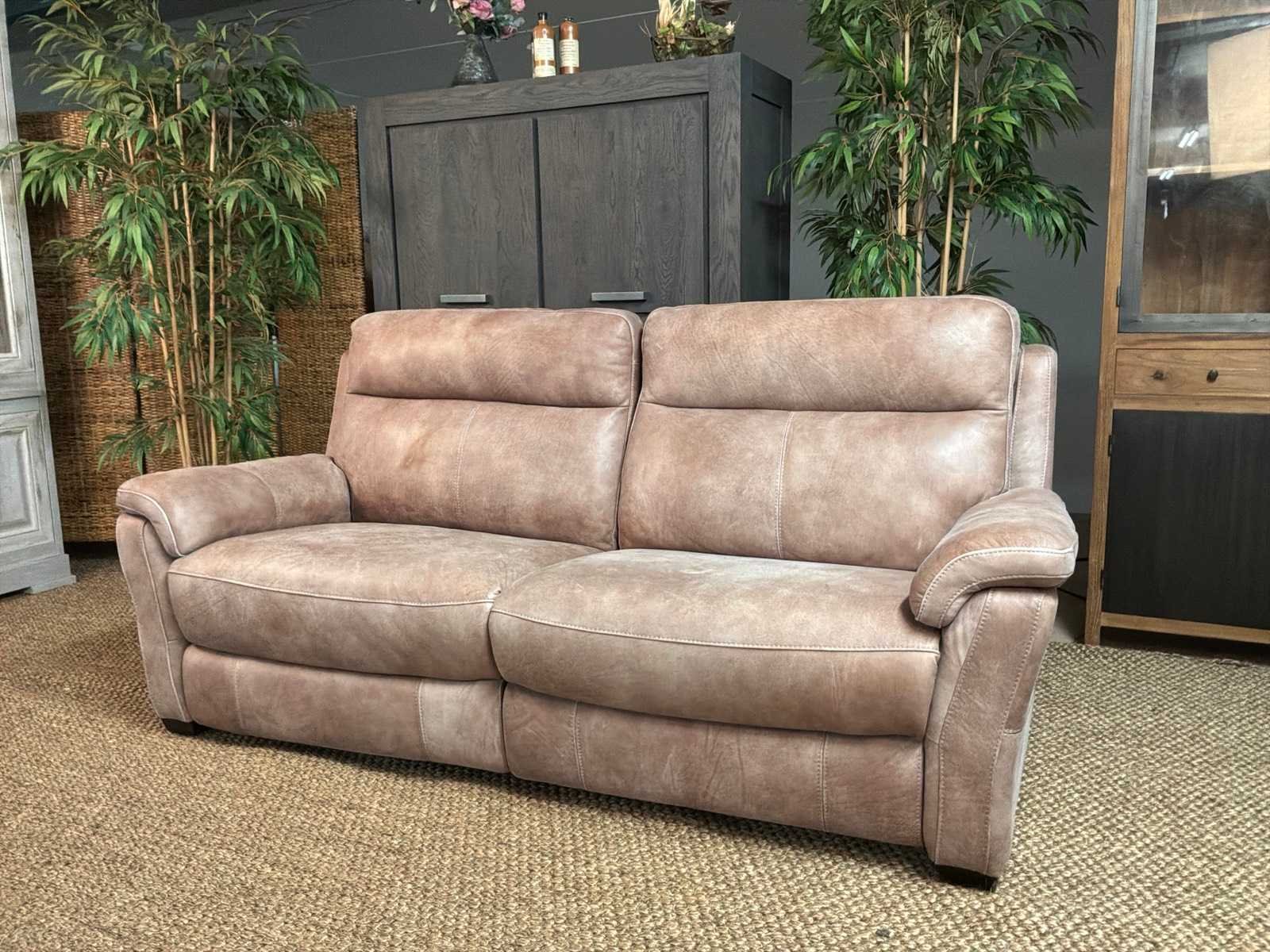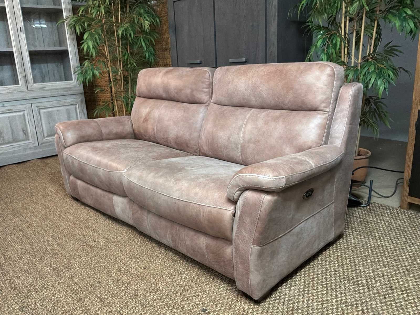 Model: Roma electrisch Kleur: Grijs Lengte: 93cm Breedte: 210cm Hoogte: 100cm Zithoogte: 46cm Materiaal: Leer