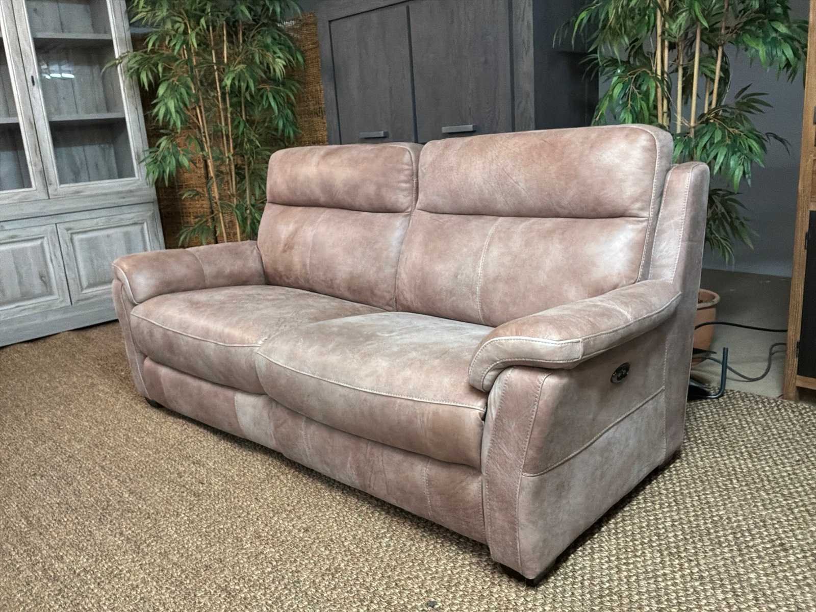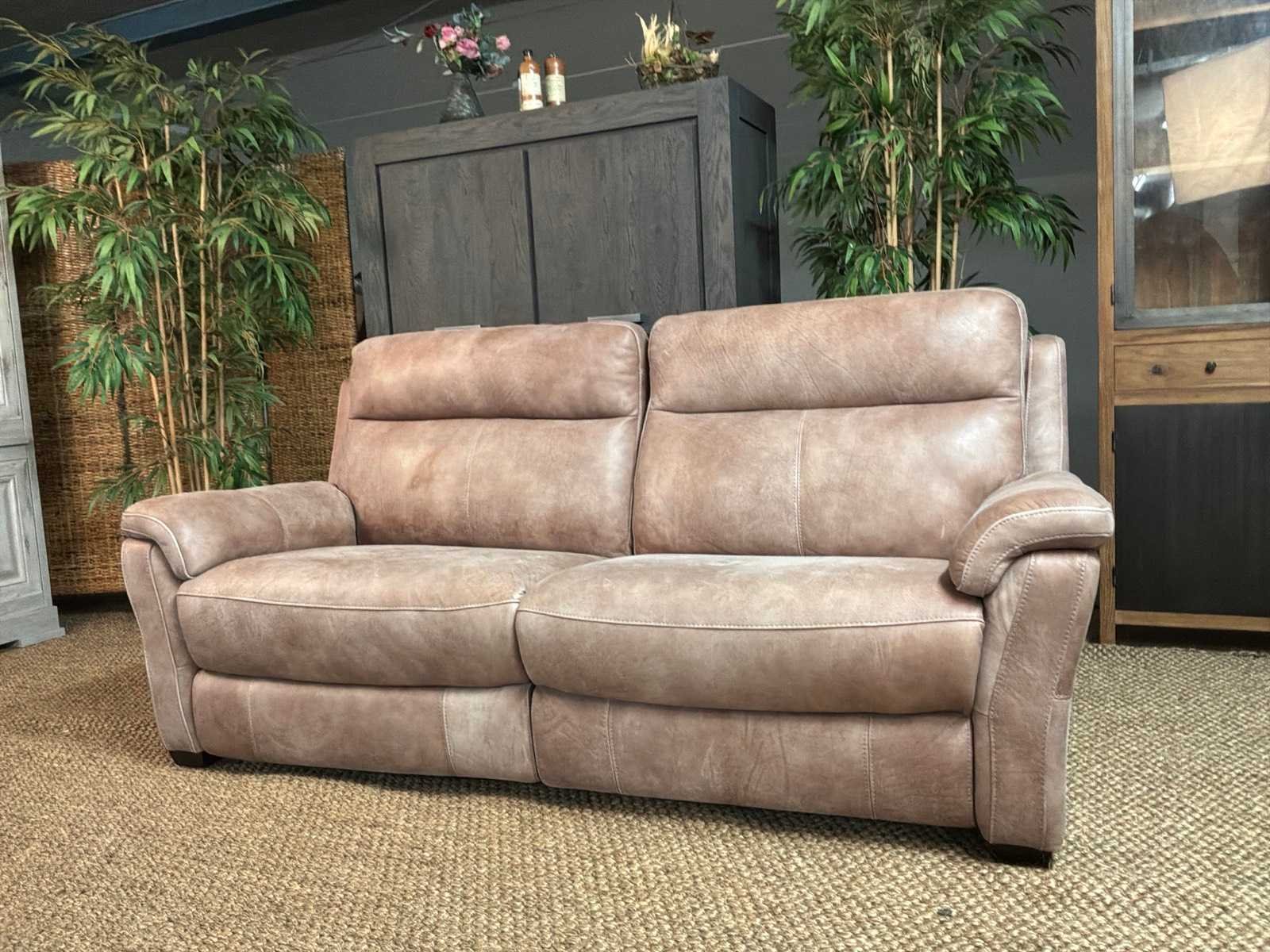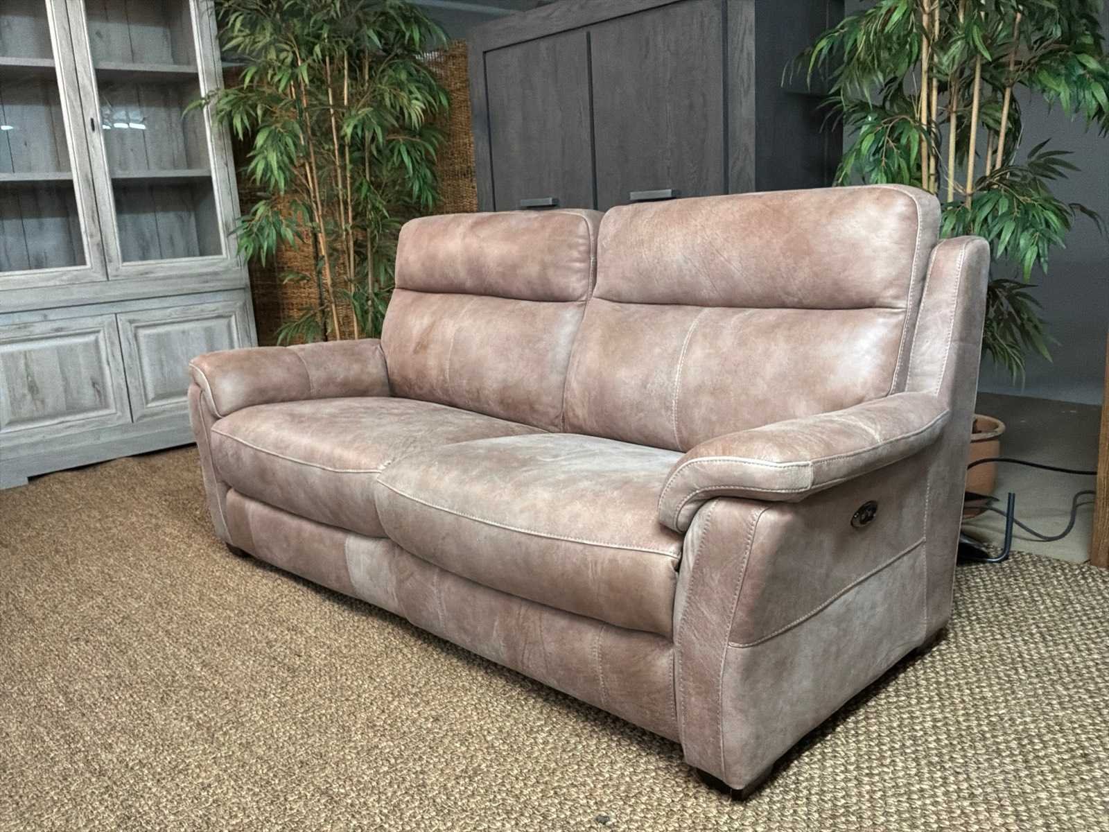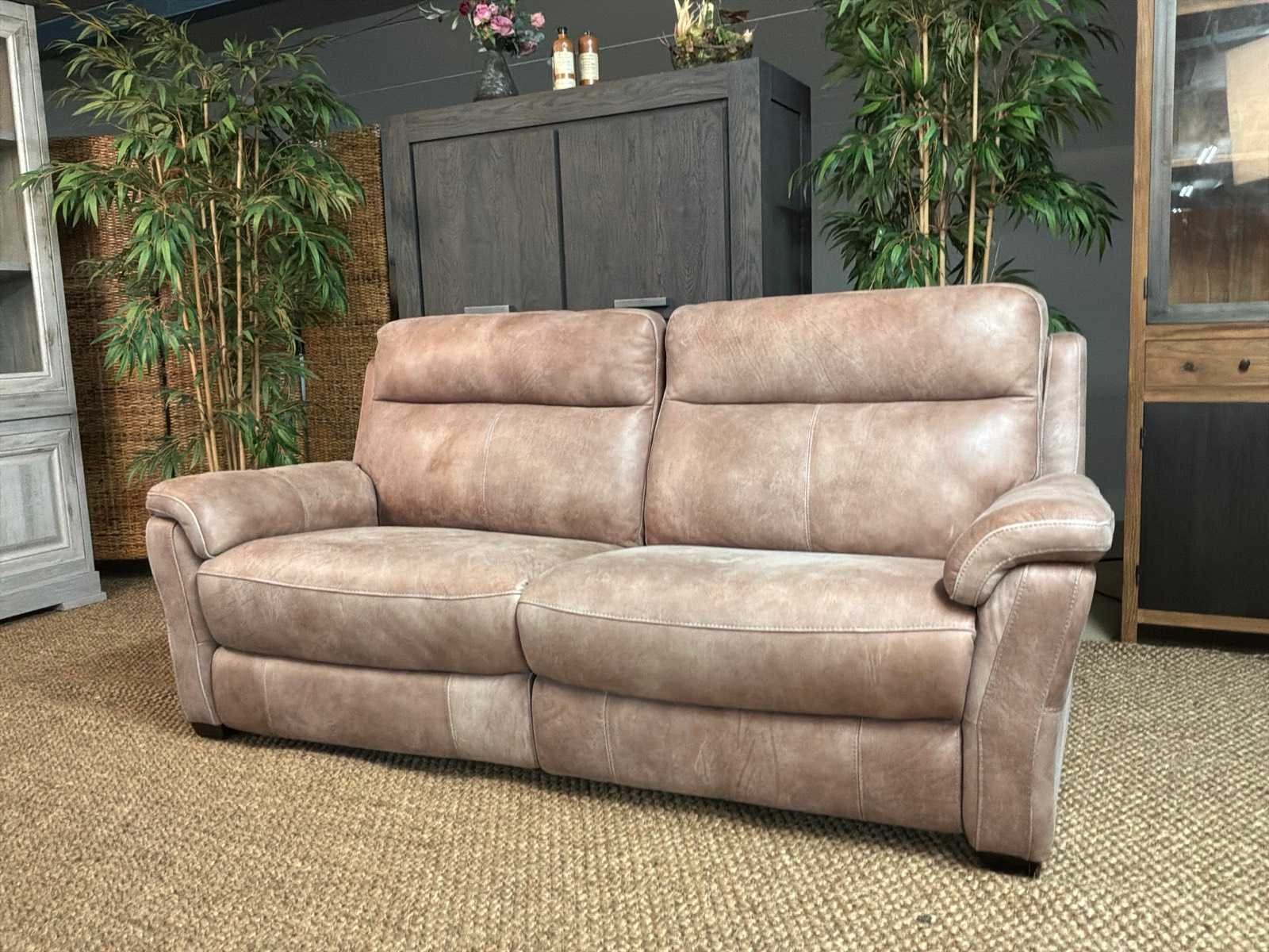 Model: Roma electrisch Kleur: Grijs Lengte: 93cm Breedte: 210cm Hoogte: 100cm Zithoogte: 46cm Materiaal: Leer