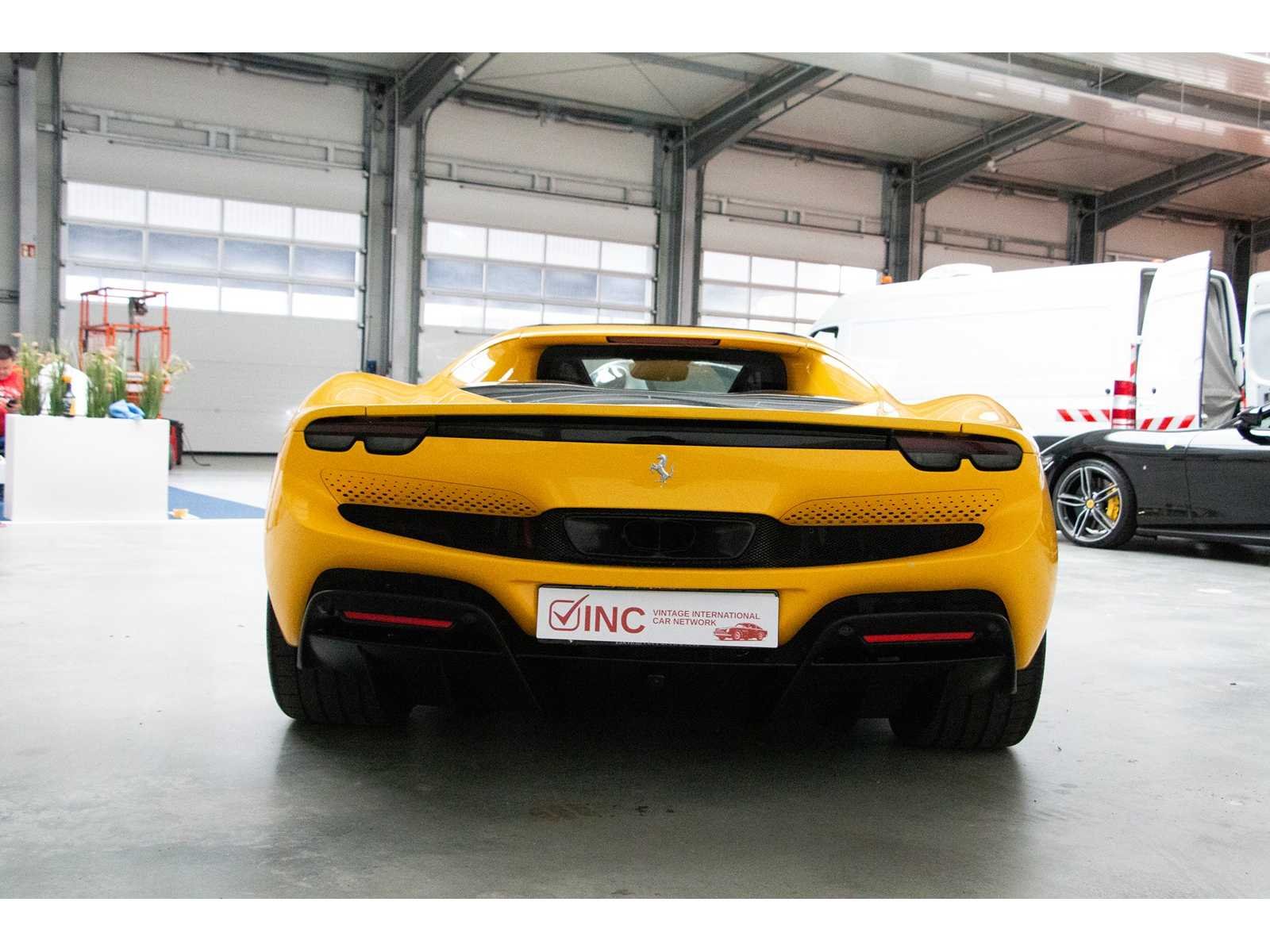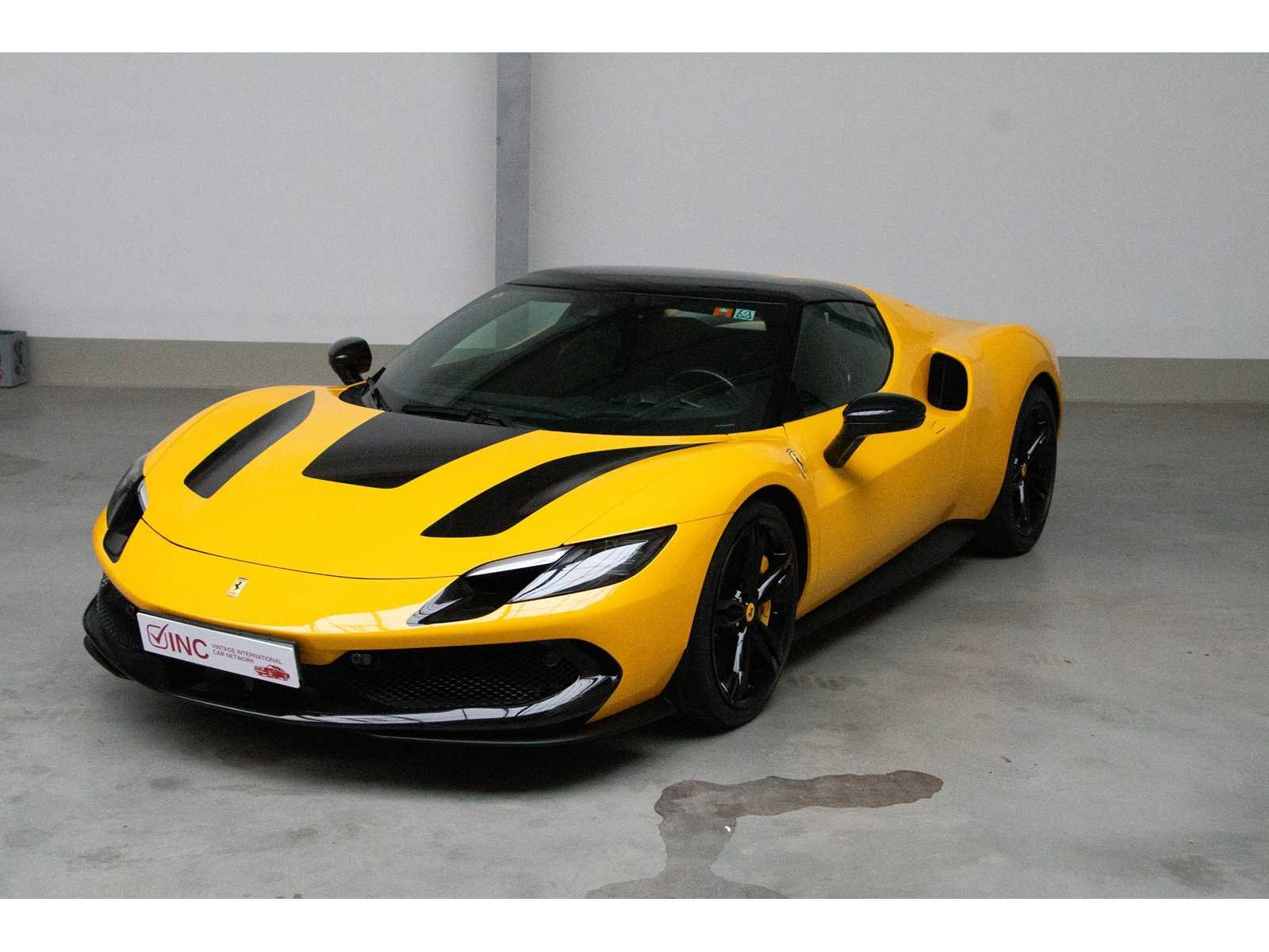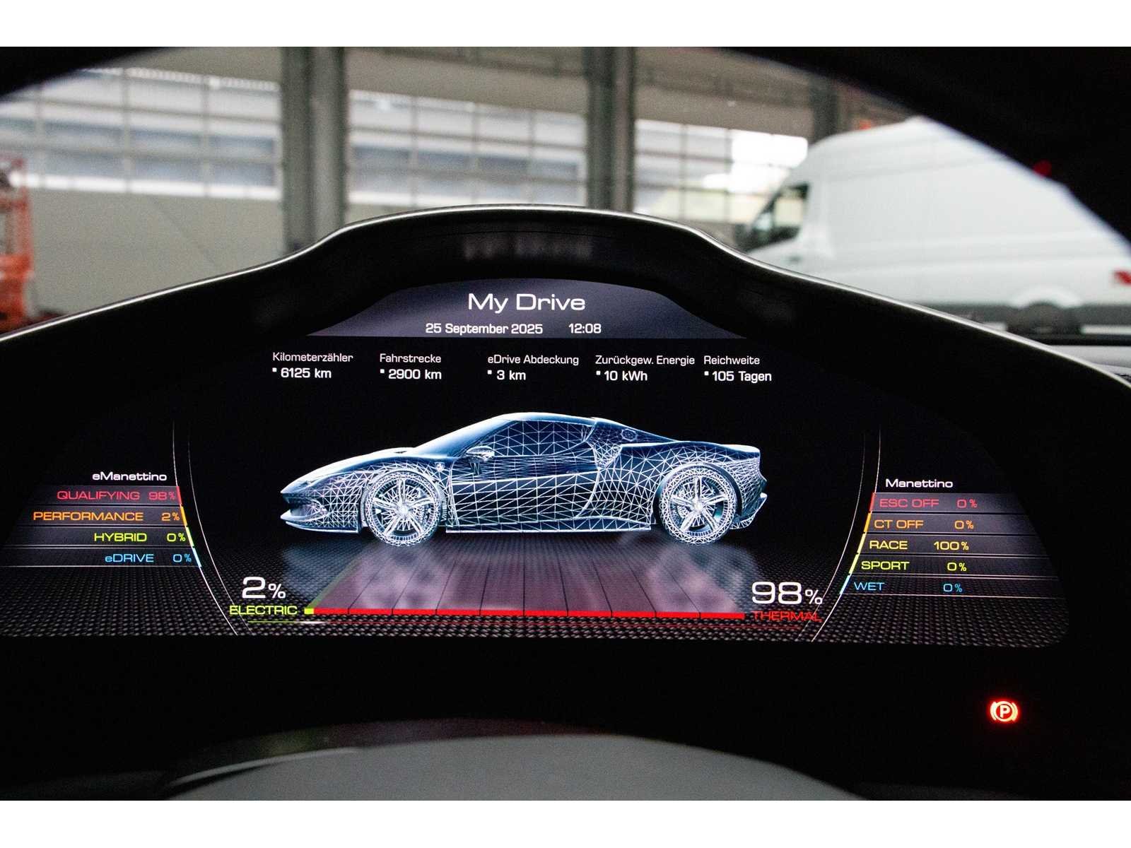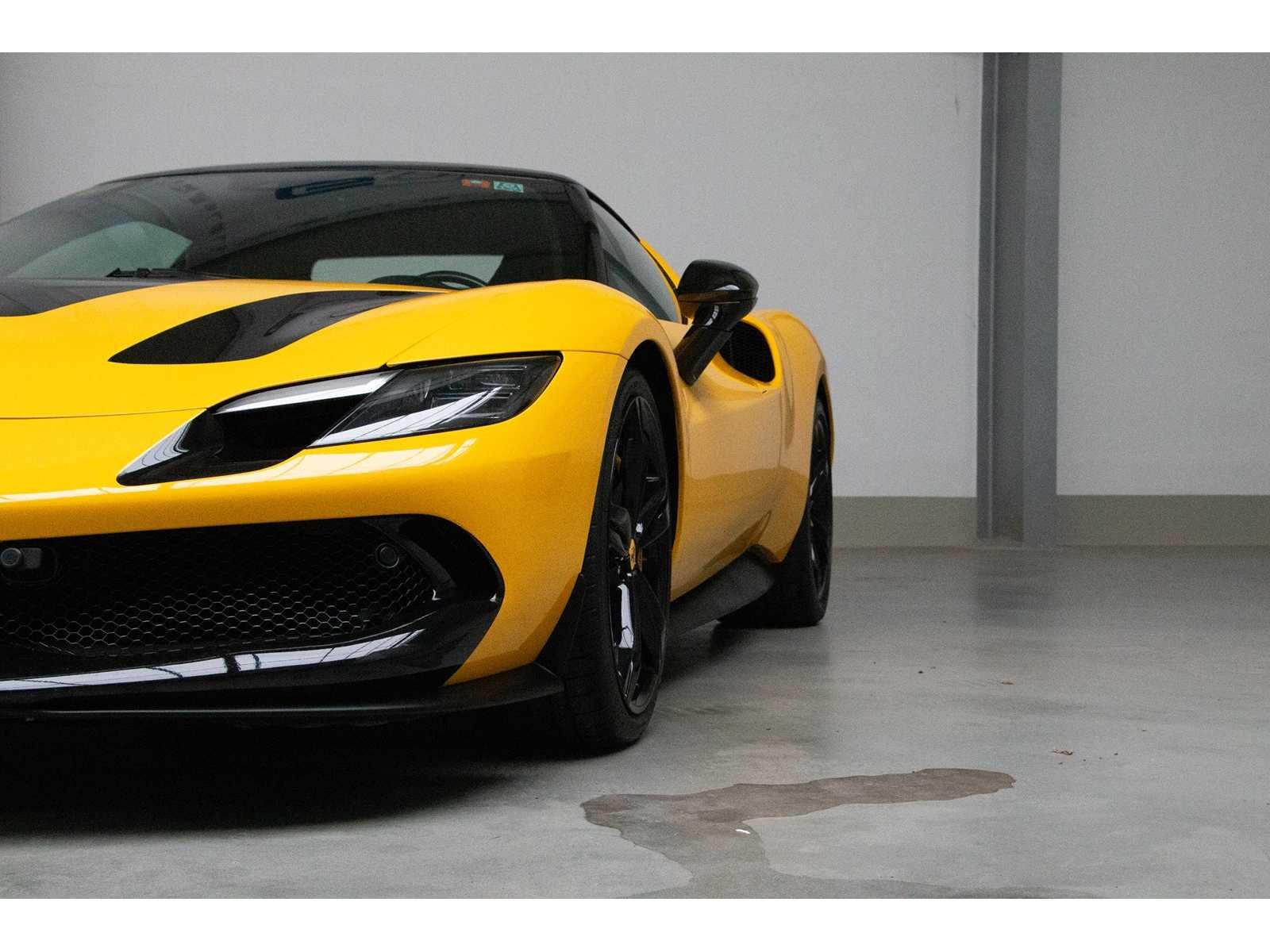 Ferrari 296 GTB – Hybride Supercar met Italiaanse Ziel Deze Ferrari 296 GTB vertegenwoordigt het nieuwe hoofdstuk van Ferrari: compacte kracht, Formule 1-technologie en tijdloze elegantie in één pure rijdersauto. Uitgevoerd in Giallo Modena met contrasterende zwarte accenten is dit exemplaar niet alleen technisch bijzonder, maar ook visueel een statement. Onder de glazen motorkap ligt een 3.0 liter V6 twin-turbo gekoppeld aan een elektromotor samen goed voor maar liefst 830 pk. De sprint van 0 naar 100 km/h duurt slechts 2,9 seconden, terwijl volledig elektrisch rijden ook mogelijk is dankzij het e-Drive systeem. Deze 296 GTB is uitgevoerd met: Giallo Modena lak met Nero details en striping Zwart gesmede velgen met gele remklauwen Achterwielaandrijving en 8-traps DCT automaat Hybride aandrijving met 25 km elektrisch bereik Actieve aerodynamica en Ferrari Side Slip Control Het design ademt klassieke Ferrari-heritage, maar met moderne finesse. Slanke LED-koplampen, brede heupen, luchtinlaten achter de deuren en een cockpit die volledig op de bestuurder is gericht. Een auto voor wie prestaties zoekt, maar ook schoonheid en zeldzaamheid waardeert. Merk: Ferrari Model: 296 GTB Type: Coupe Bouwjaar: 2023 Afgelezen kilometerstand: 3.040km Cilinderinhoud: 2992cc Vermogen (kW): 625kW Brandstof: Benzine / Electrisch Datum eerste toelating: 30-08-2023 Vermogen (pk): 850hp Aandrijving: Elektrische motor + 7.45 kWh batterij Kleur: Geel/Zwart Transmissie: 8-traps DCT automaat Aantal deuren: 2 Aantal sleutels: 2 Aantal cilinders: 6 Nationaliteit documenten: Duits Airconditioning: true Navigatie: true Xenon verlichting: true LED-koplampen: true Leder bekleed: true