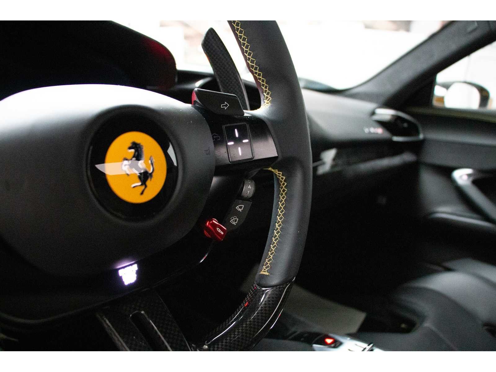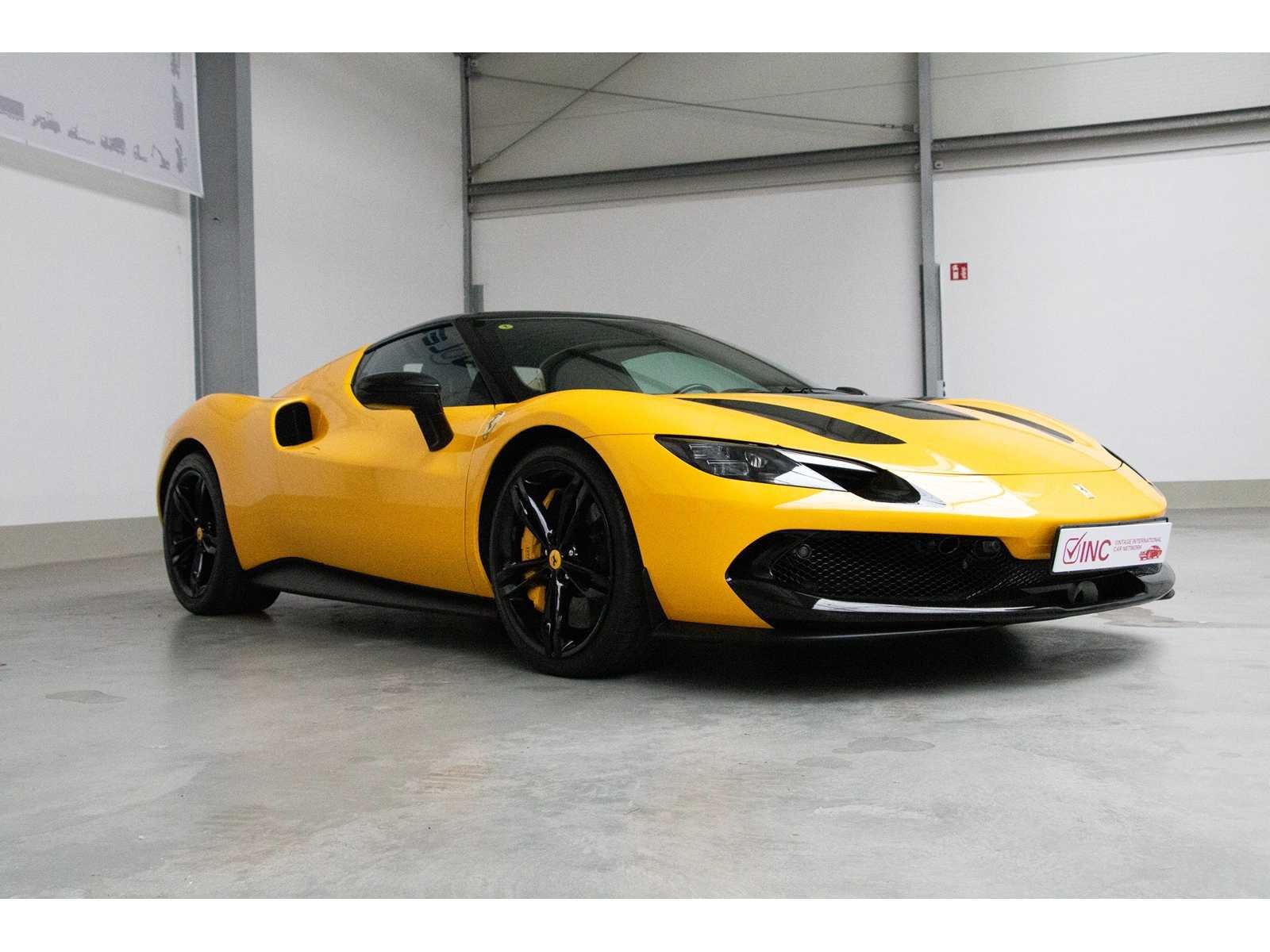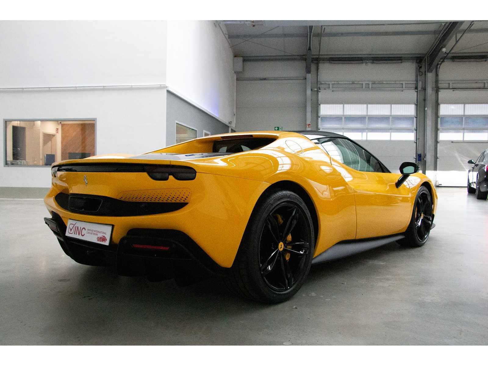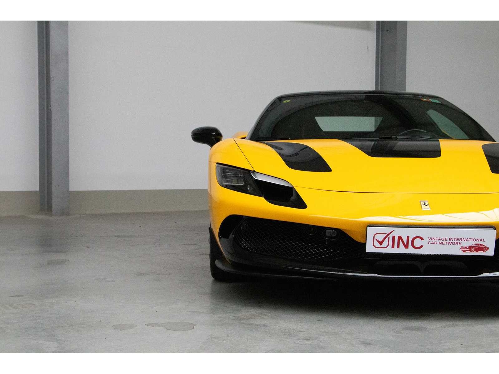 Ferrari 296 GTB – Hybride Supercar met Italiaanse Ziel Deze Ferrari 296 GTB vertegenwoordigt het nieuwe hoofdstuk van Ferrari: compacte kracht, Formule 1-technologie en tijdloze elegantie in één pure rijdersauto. Uitgevoerd in Giallo Modena met contrasterende zwarte accenten is dit exemplaar niet alleen technisch bijzonder, maar ook visueel een statement. Onder de glazen motorkap ligt een 3.0 liter V6 twin-turbo gekoppeld aan een elektromotor samen goed voor maar liefst 830 pk. De sprint van 0 naar 100 km/h duurt slechts 2,9 seconden, terwijl volledig elektrisch rijden ook mogelijk is dankzij het e-Drive systeem. Deze 296 GTB is uitgevoerd met: Giallo Modena lak met Nero details en striping Zwart gesmede velgen met gele remklauwen Achterwielaandrijving en 8-traps DCT automaat Hybride aandrijving met 25 km elektrisch bereik Actieve aerodynamica en Ferrari Side Slip Control Het design ademt klassieke Ferrari-heritage, maar met moderne finesse. Slanke LED-koplampen, brede heupen, luchtinlaten achter de deuren en een cockpit die volledig op de bestuurder is gericht. Een auto voor wie prestaties zoekt, maar ook schoonheid en zeldzaamheid waardeert. Merk: Ferrari Model: 296 GTB Type: Coupe Bouwjaar: 2023 Afgelezen kilometerstand: 3.040km Cilinderinhoud: 2992cc Vermogen (kW): 625kW Brandstof: Benzine / Electrisch Datum eerste toelating: 30-08-2023 Vermogen (pk): 850hp Aandrijving: Elektrische motor + 7.45 kWh batterij Kleur: Geel/Zwart Transmissie: 8-traps DCT automaat Aantal deuren: 2 Aantal sleutels: 2 Aantal cilinders: 6 Nationaliteit documenten: Duits Airconditioning: true Navigatie: true Xenon verlichting: true LED-koplampen: true Leder bekleed: true
