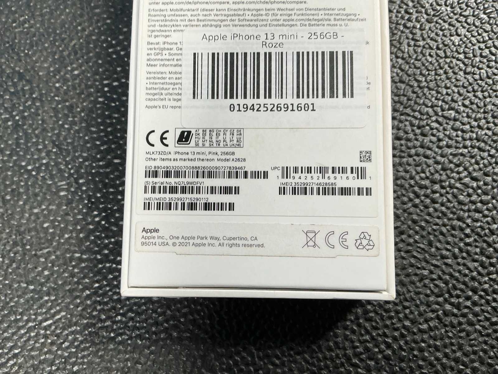 Merk: Apple Model: A2628 Type: iPhone 13 mini 256GB Quick charge functie: true Wifi: true Bluetooth: true Video functie: true Gezichtsherkenning: true Frontcamera: true Camera: true Touchscreen: true Opslagcapaciteit: 256GB Met oplader: true