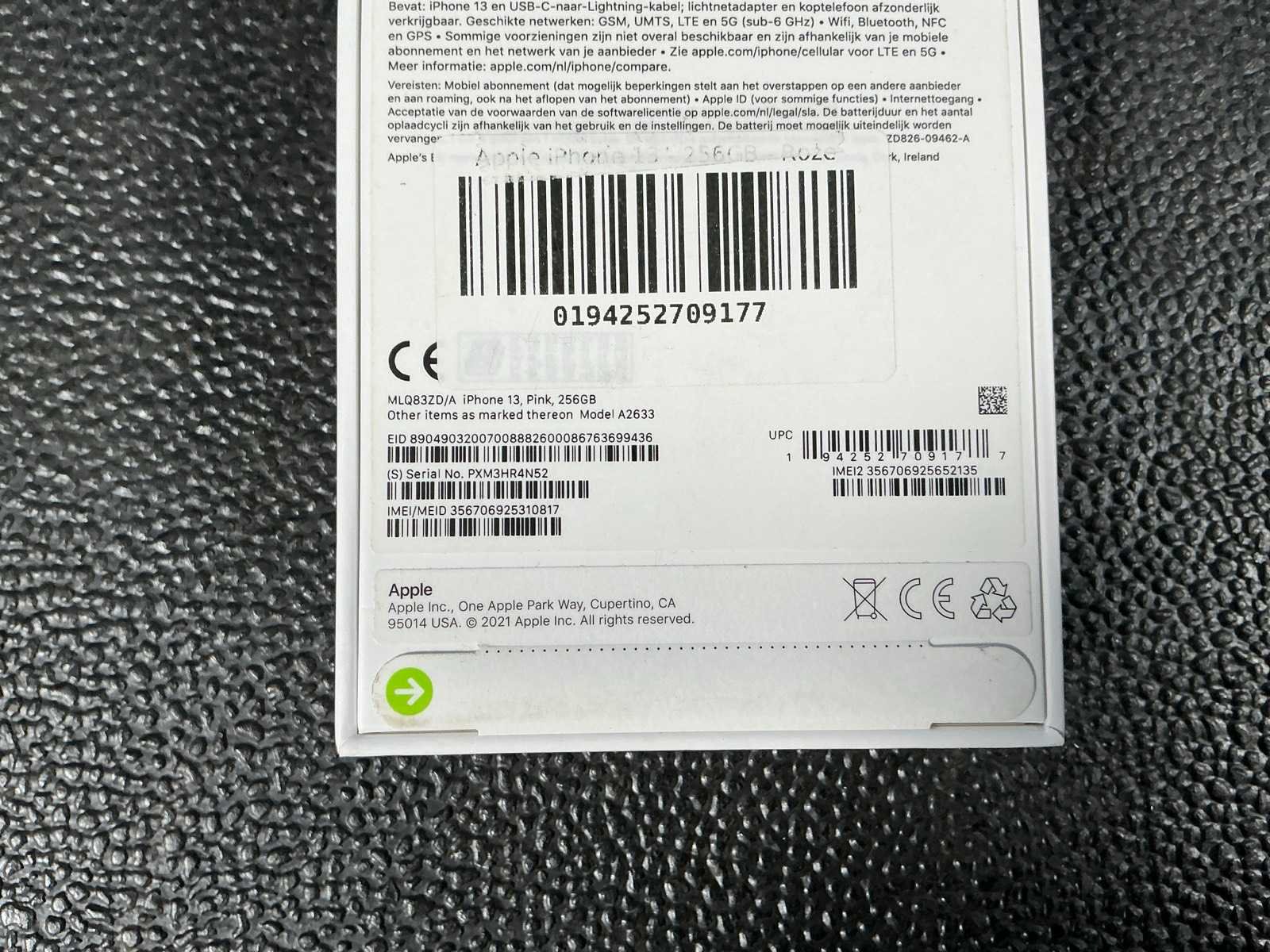 Merk: Apple Model: A2633 Type: iPhone 13 256GB Quick charge functie: true Wifi: true Bluetooth: true Video functie: true Gezichtsherkenning: true Frontcamera: true Camera: true Touchscreen: true Opslagcapaciteit: 256GB Met oplader: true