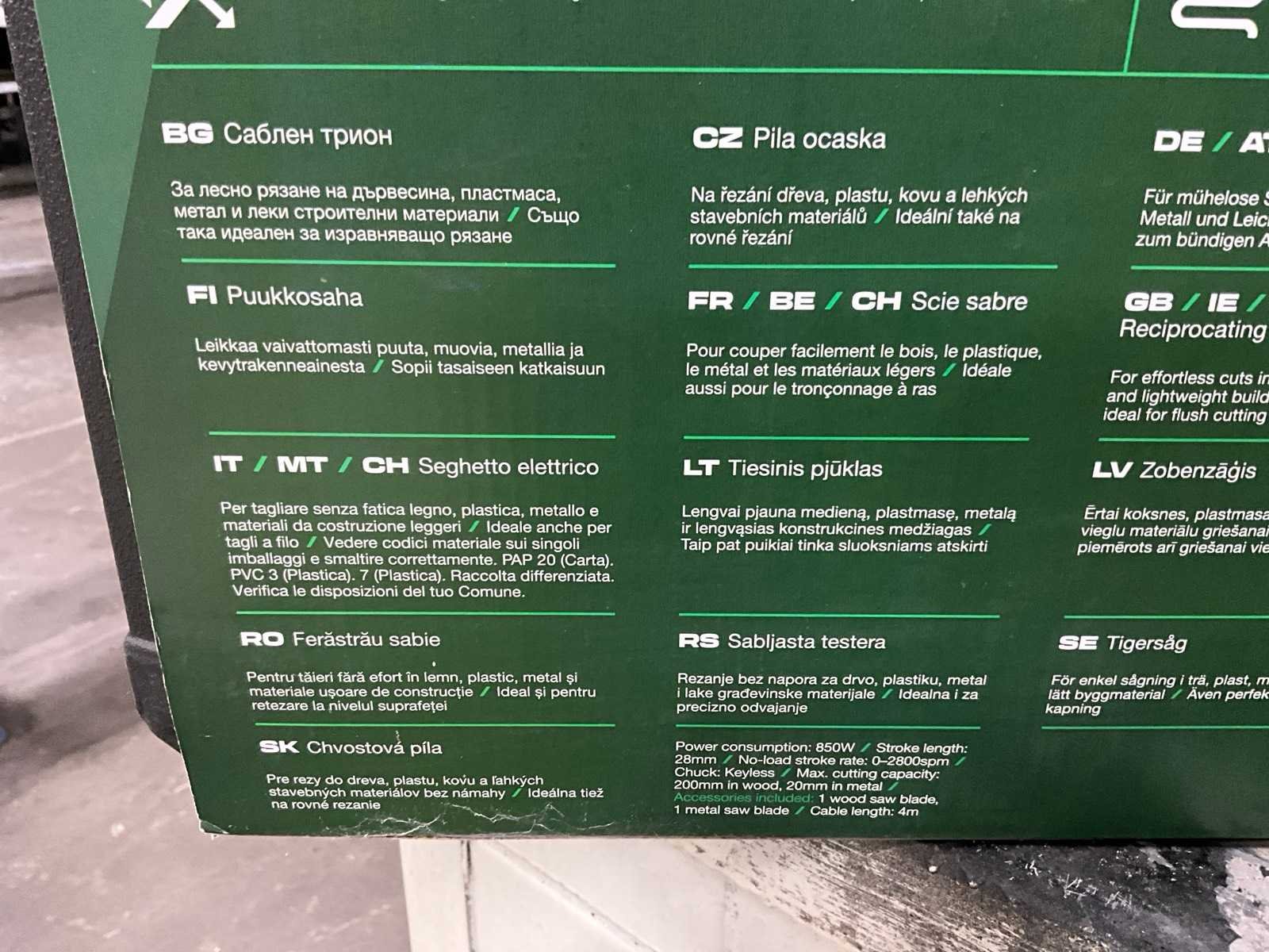 Ongebruikt in verpakking, 220volt, met 2 zagen in koffer Merk: Parkside Type: PFS 850 B2