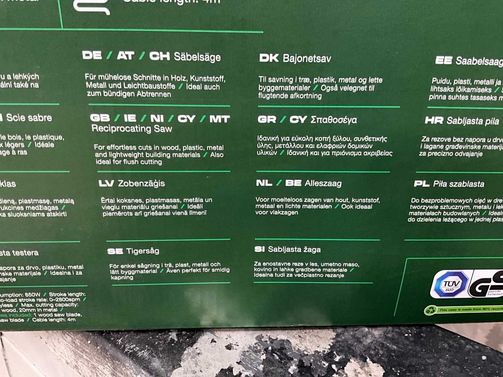 Ongebruikt in verpakking, 220volt, met 2 zagen in koffer Merk: Parkside Type: PFS 850 B2