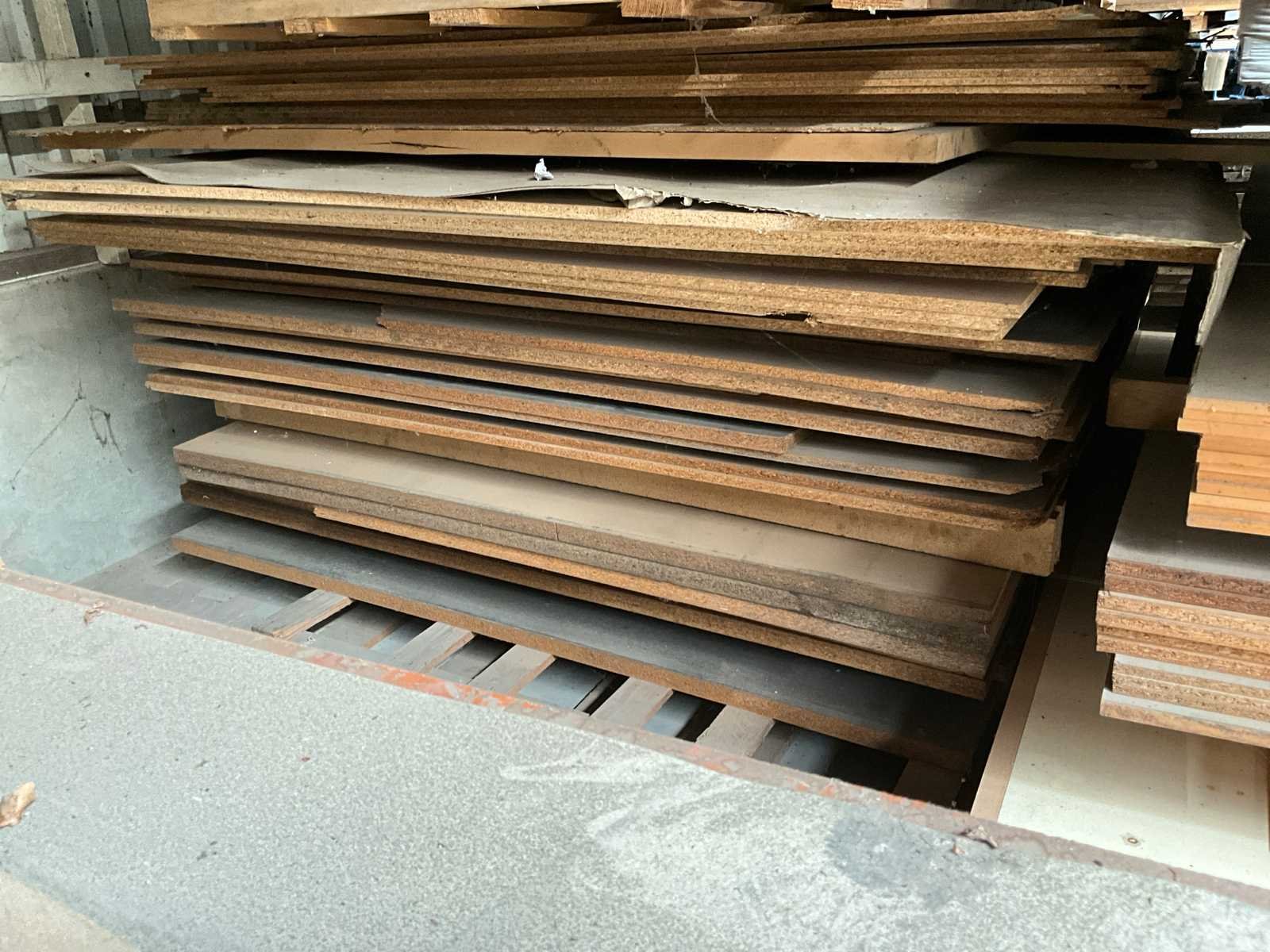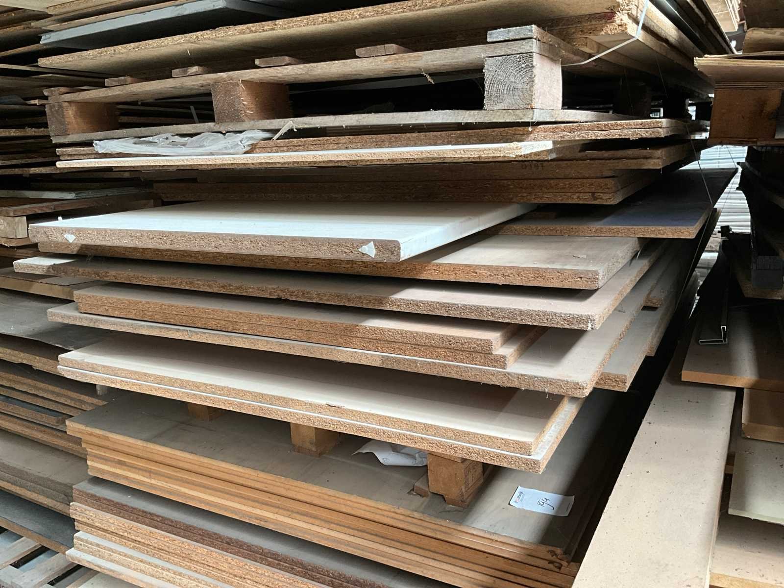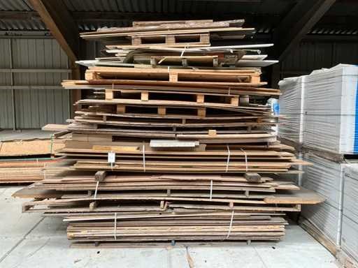 Op 3 stapels waaronder mdf, spaanplaat, triplex, meubelplaat, multiplex, in diverse afmetingen en uitvoeringen, afmetingen per stapel circa 350x240x265 cm, 350x145x265 cm, 350x150x255 cm