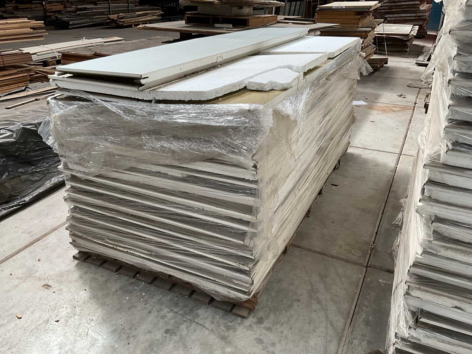 Op 2 pallets afmeting per pallet 122x260x150 cm, 122x260x120 cm, waarvan 33 platen afmeting circa 122x260x4 cm en 6 stuks afmeting circa 51x260x4 cm