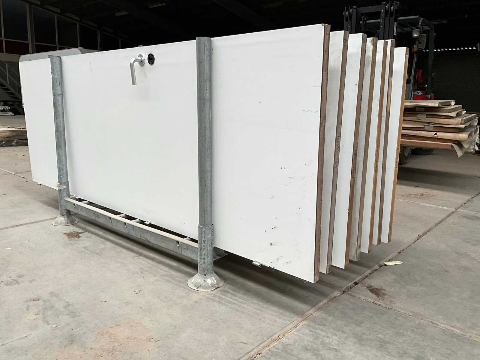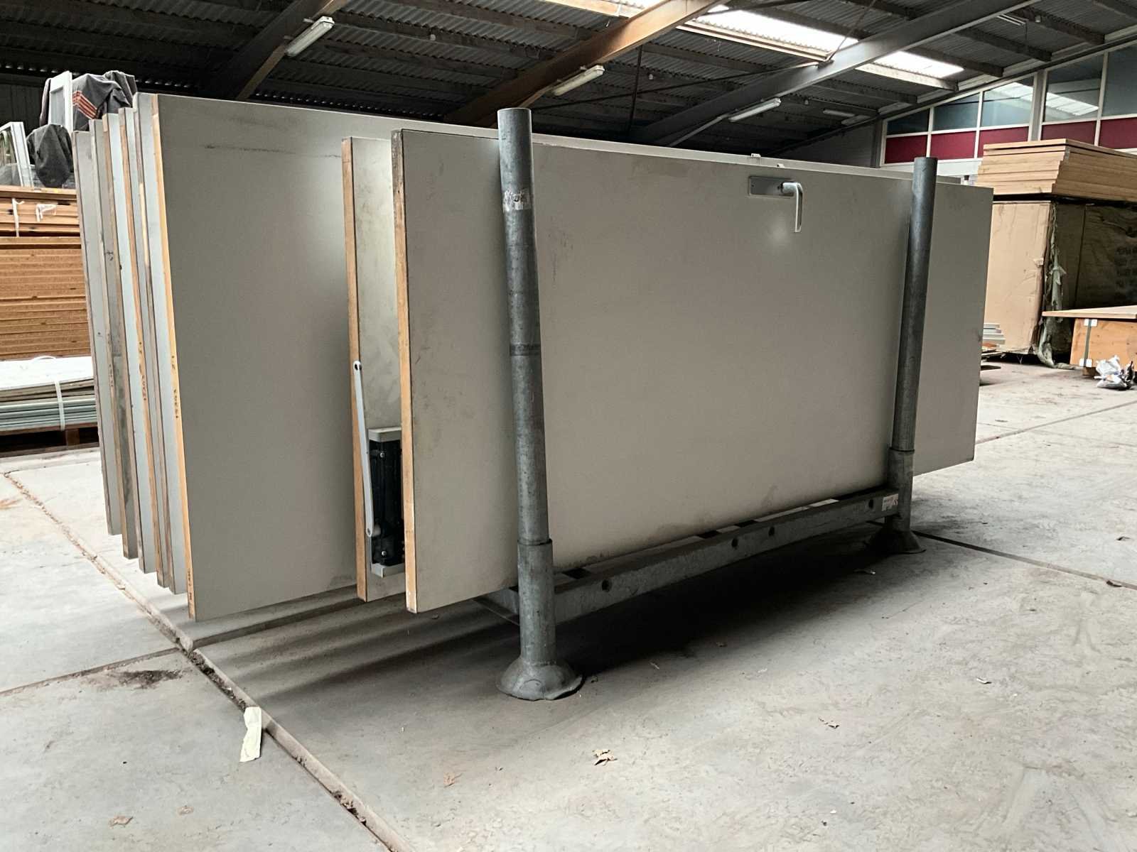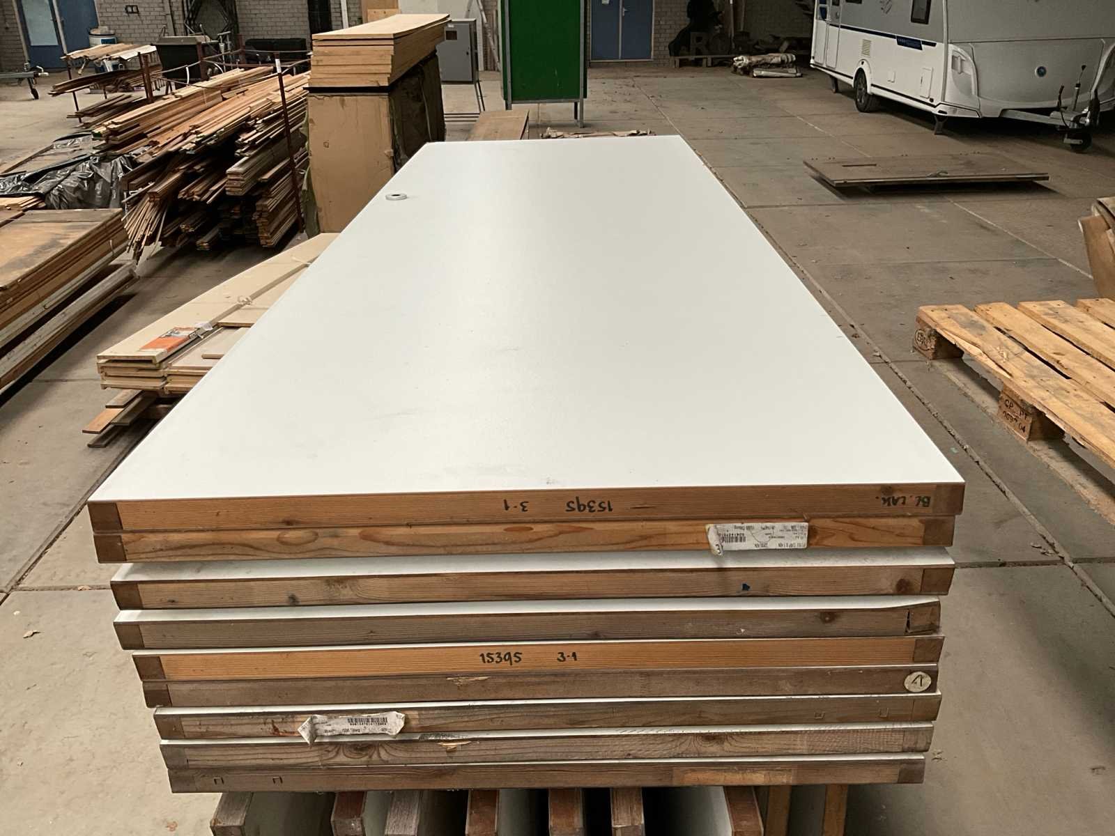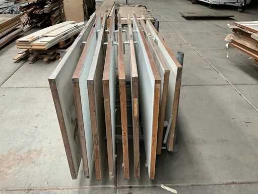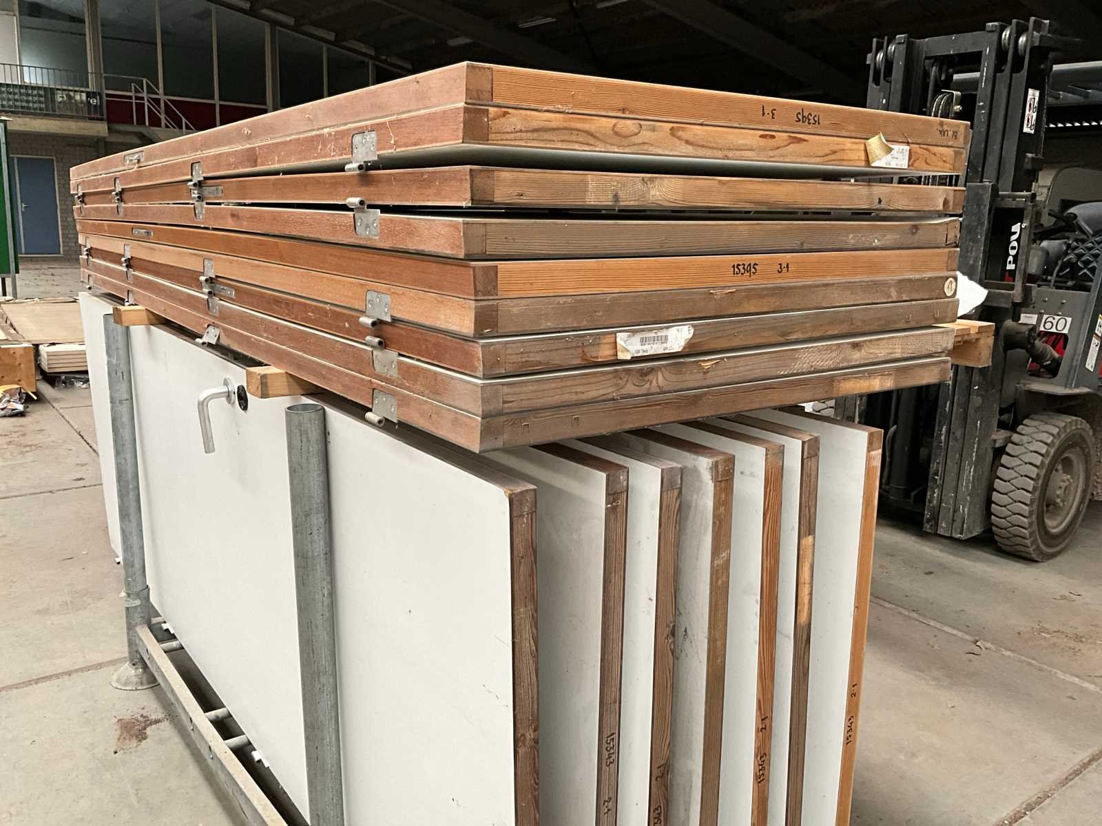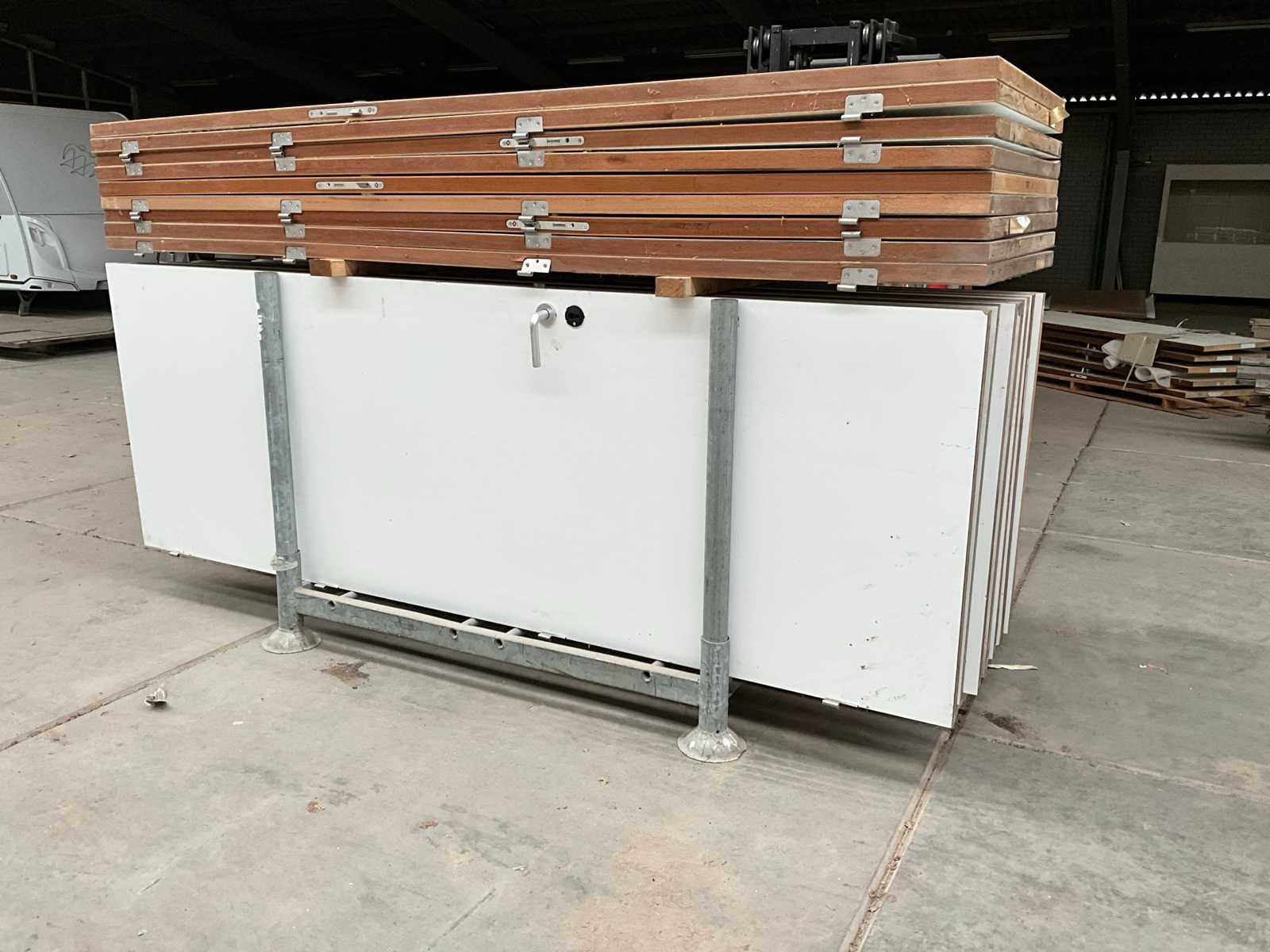 Waaronder 18 stuks afmeting 263x92,5x4 cm, 2 stuks afmeting 212x87x4 cm, gedeeltelijk voorzien van klinken, met rvs scharnieren in en met transportjuk Merk: Interwand Binnendeur: true Stomp: true
