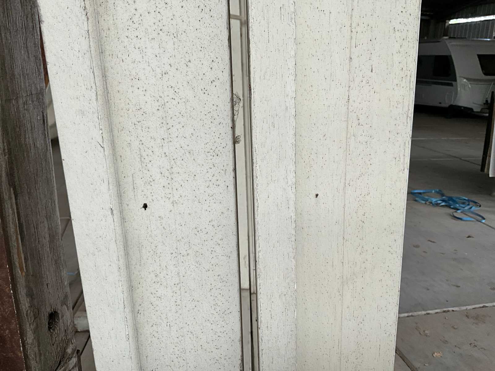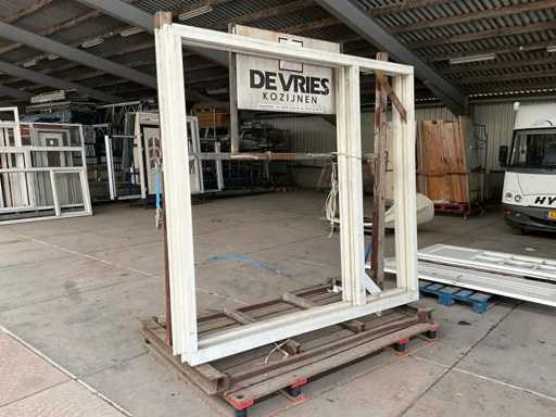 T.b.v. openslaande deuren ( niet aanwezig) en 1 raamuitsparing, Zonder bokjuk, zonder beglazing Merk: De Vries Afmeting h: 2160mm Afmeting b: 2350mm Hout: true Dikte: 110mm