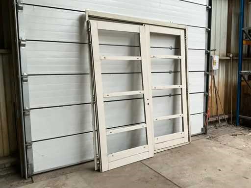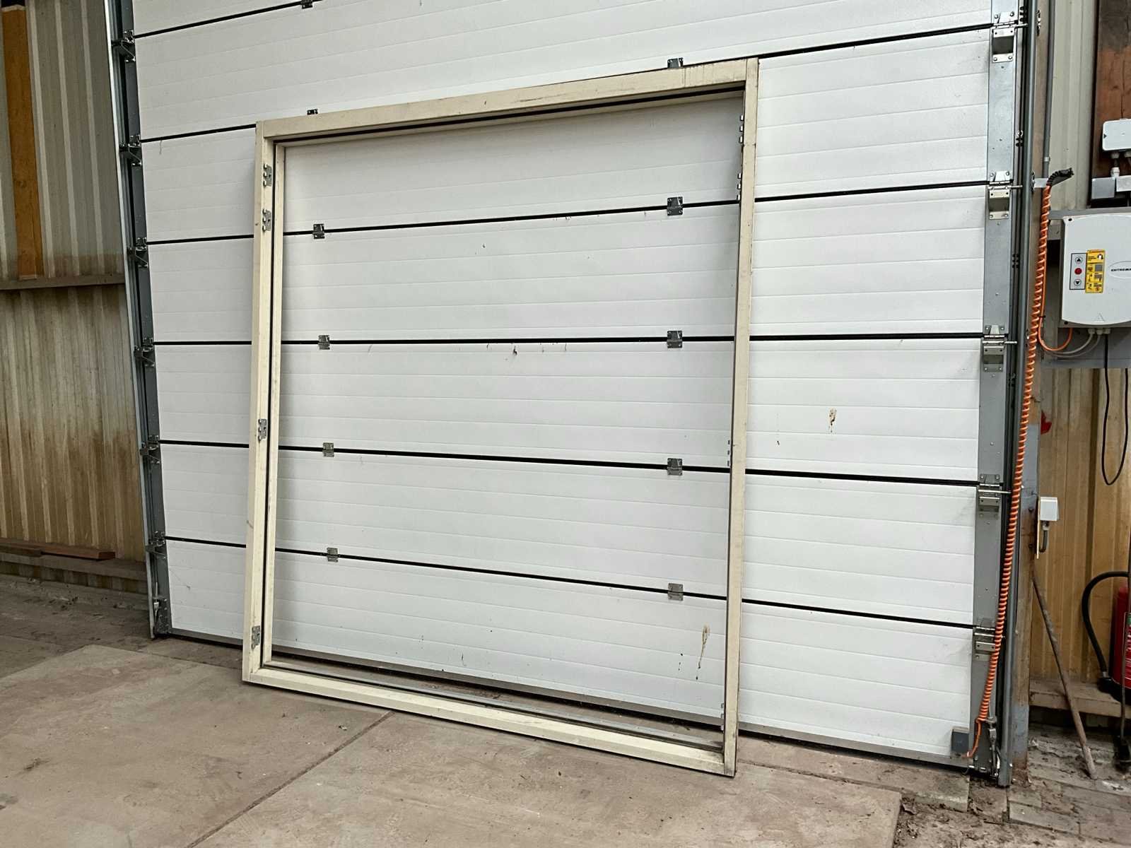 Zonder beglazing en zonder transportjuk, totaal 3 stuks Afmeting h: 2270mm Afmeting b: 2520mm Hout: true Dikte: 110mm