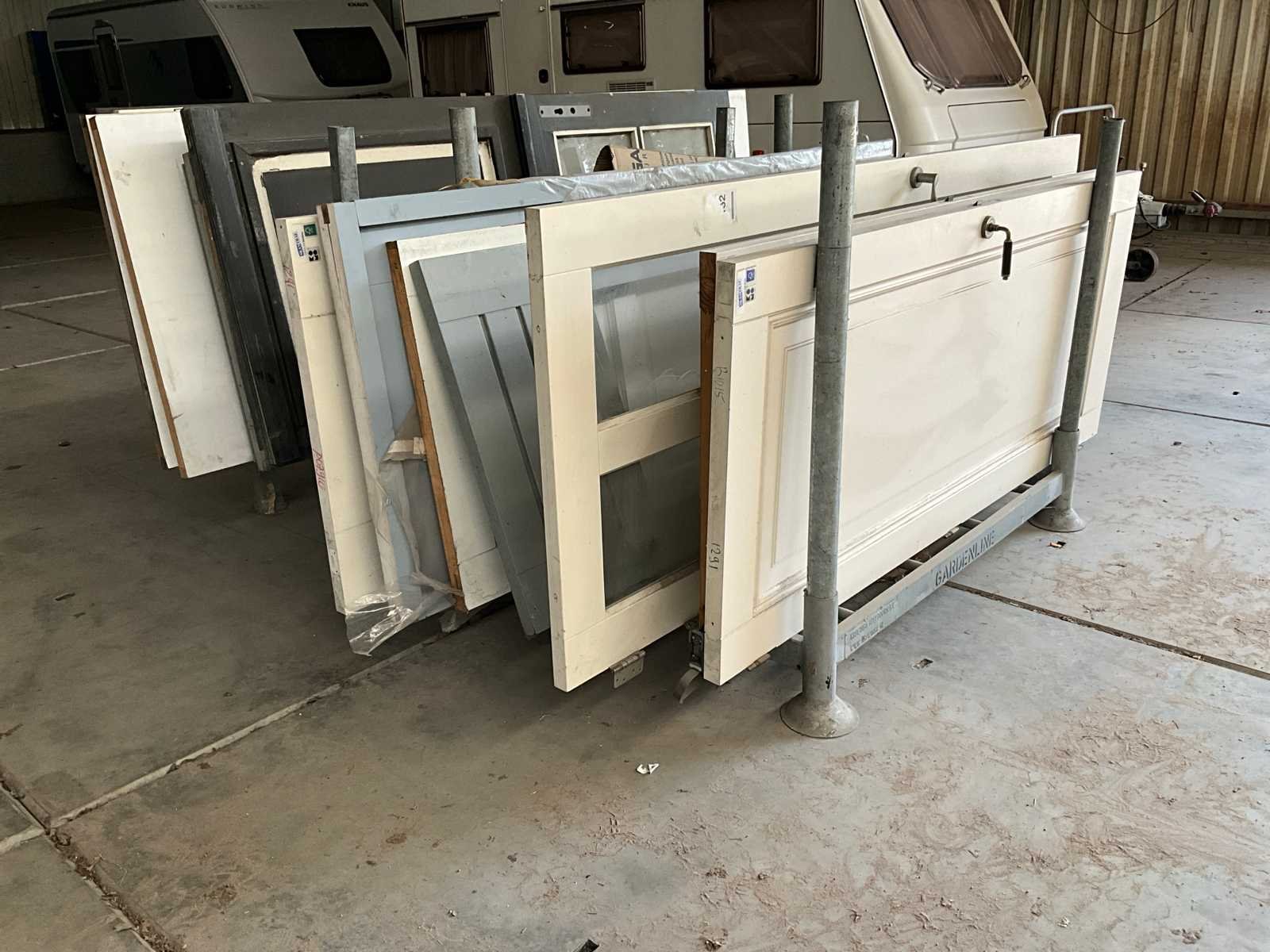 In diverse maten en uitvoeringen, totaal circa 16 stuks gedeeltelijk voorzien van beglazing met 2 stuks transportjuk