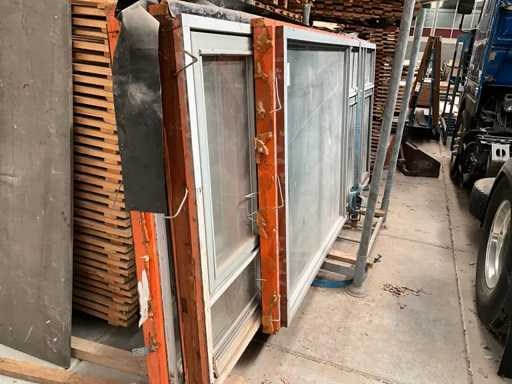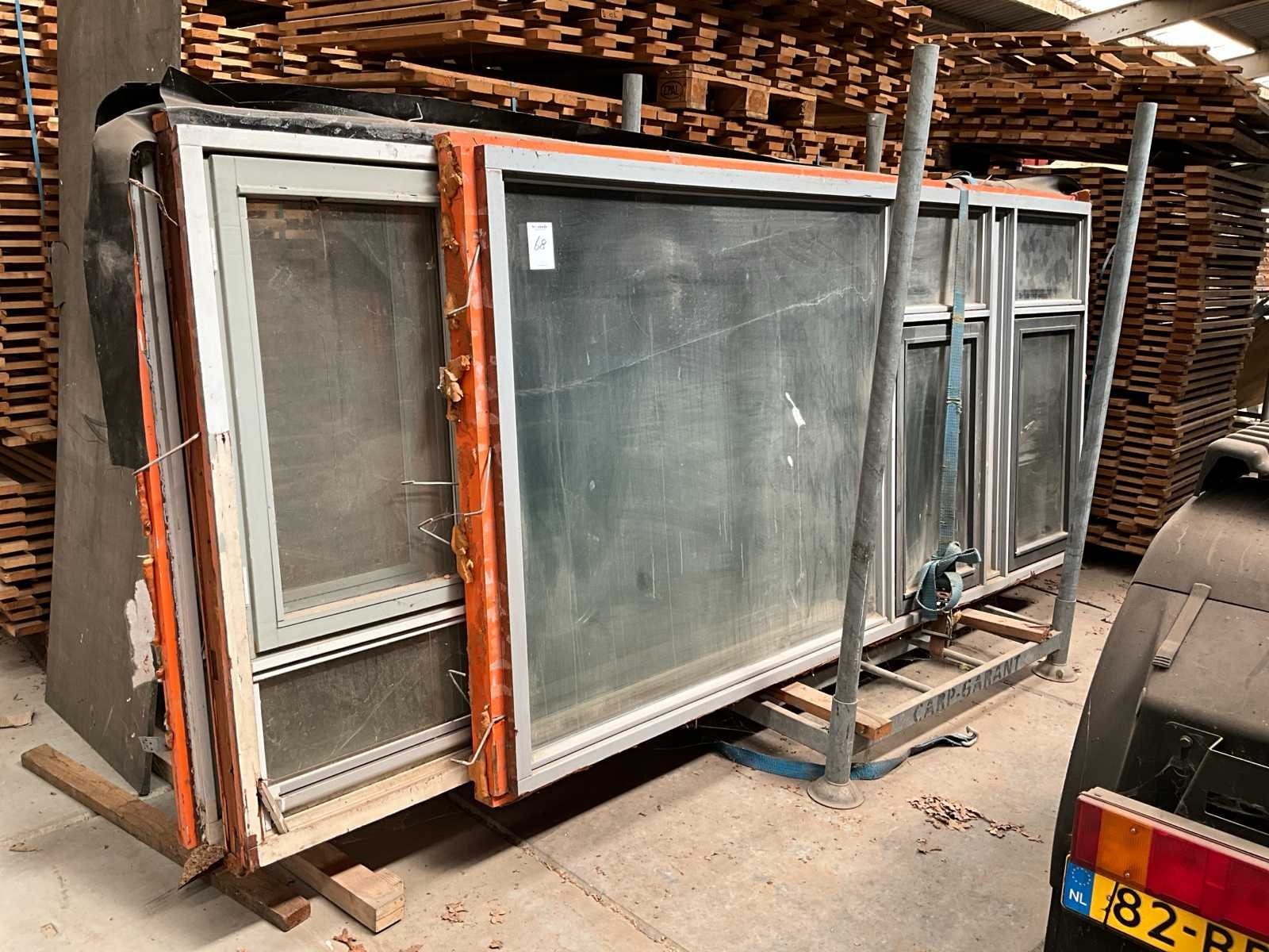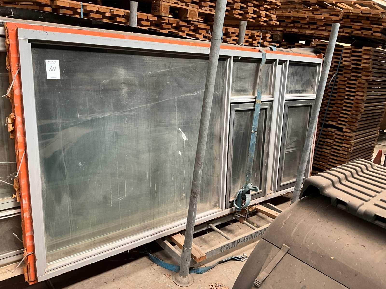 Waarvan 2 stuks afmeting 400x158 cm, 1 stuks 370x158 cm en 1 stuks 316x158 cm voorzien van openslaande ramen , met beglazing en transportjuk