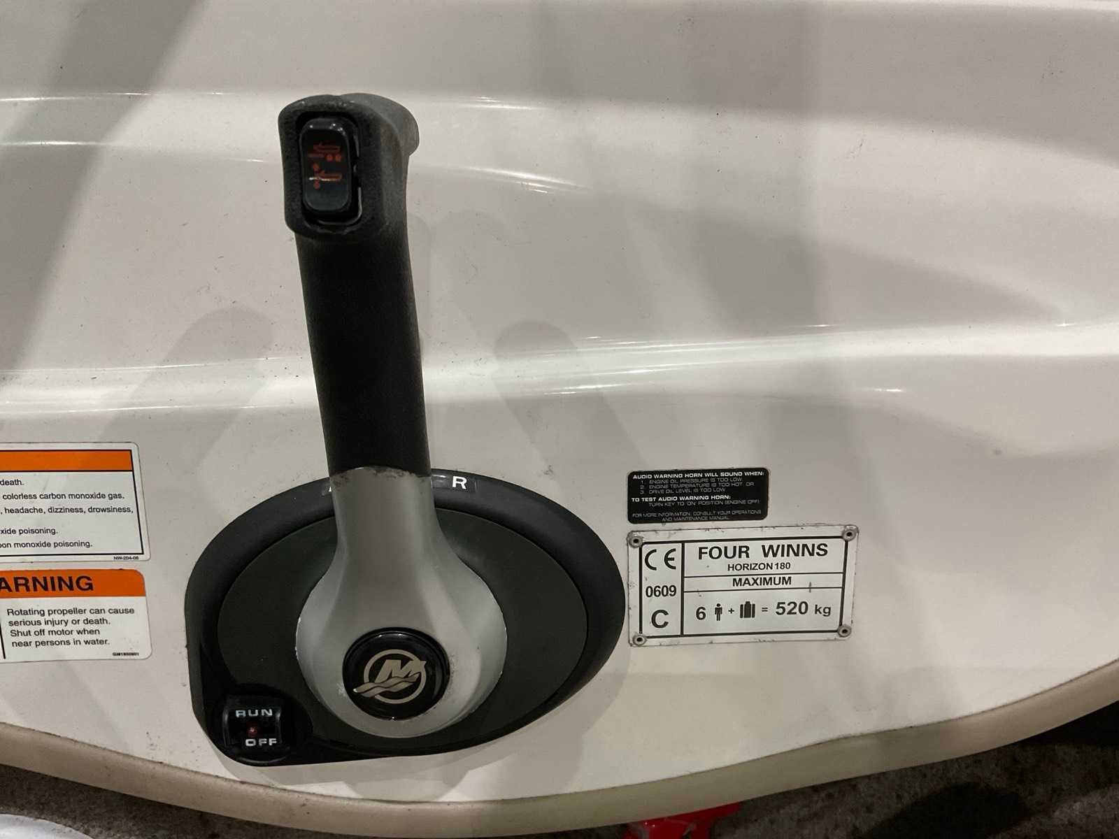 Boot heeft een rdw pasje, Inclusief trailer, let op trailer heeft geen documenten, 100 kw of te wel 135,9 pk; datum eerste afgifte 2007, inclusief hoes Merk: Four winns Type: Horizon 180 Rompmateriaal: Polyester Brandstof: Benzine 98 Serienummer: US-GFNMB404K607 Type motor: Mercury mercruiser Aantal cilinders: 4 Vermogen: 100kW Trailer merk + type: Mecanorem