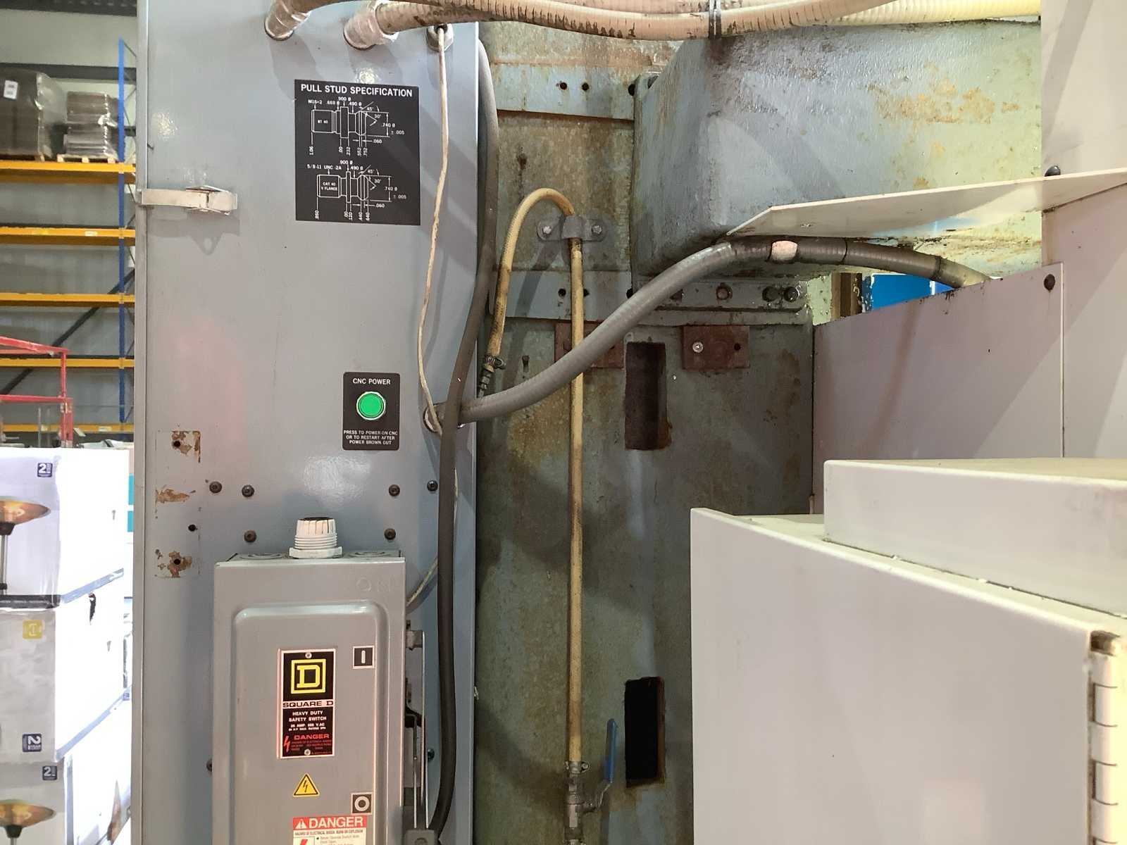 Freesmachines zijn werktuigmachines waarbij de belangrijkste roterende beweging wordt uitgevoerd door een gereedschap dat in de spindel is gemonteerd - een frees, en de aanvoerbewegingen worden meestal uitgevoerd door een werkstuk dat op een schuiftafel is gemonteerd. Het doel van freesmachines is het bewerken van vlakken en gevormde oppervlakken met behulp van cilindrische frezen, cilindrische frezen, freeskoppen en verschillende soorten gevormde frezen. X-as verplaatsing 1016mm. Y-as verplaatsing 508mm. Z-as verplaatsing 508mm . FADAL CNC 88HS besturing Gereedschapmagazijn 21 stuks. SK40 spindel Spindelsnelheid max. 10.000 tpm. Spindelkoeling. Snelle verplaatsingssnelheid X/Y 22m/min. Gewicht ca. 6.000 kg; werkend Merk: Fadel Type: 906-1 VMC 4020 HT Bouwjaar: 1995 Serienummer: 9503251 Afmeting l: 2300mm Afmeting b: 3200mm Afmeting h: 2700mm