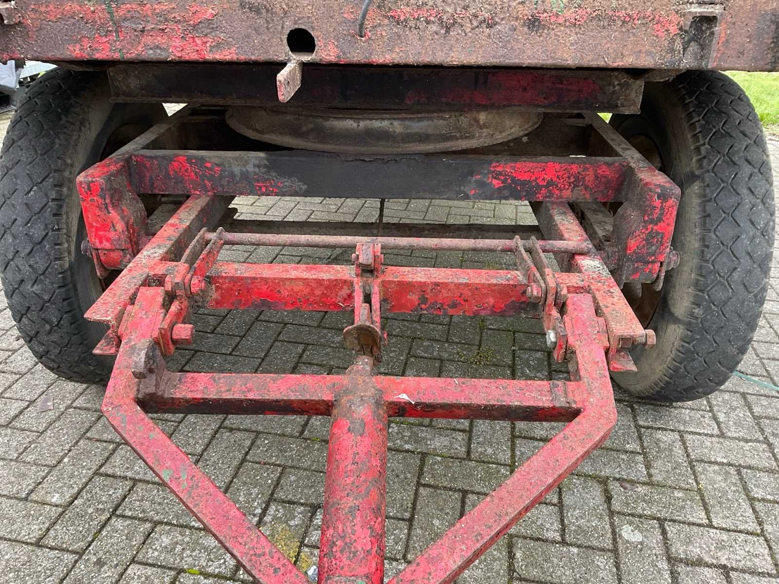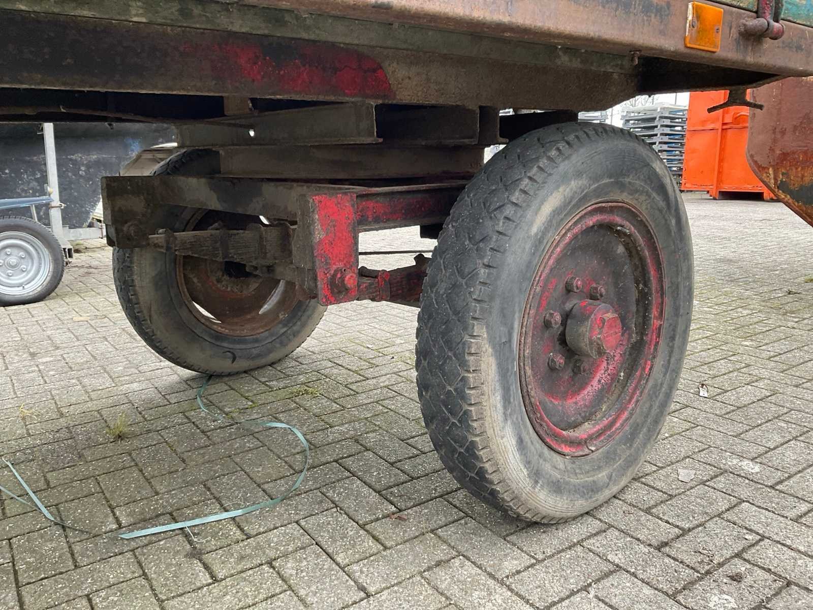 4 wielen geveerde landbouw wagen met graan borden; zonder documenten Merk: Miedema Totale afmeting L: 5430mm Totale afmeting Breedte: 2070mm Totale afmeting Hoogte: 1700mm