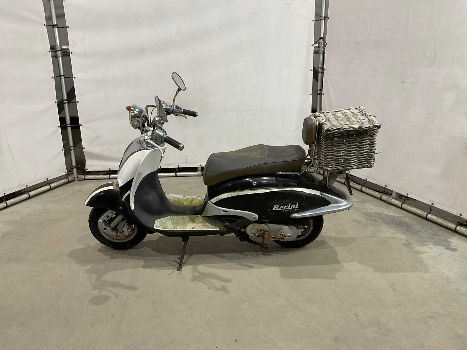 Werking onbekend Merk: Berini Model: Snorscooter Kenteken: DBK-71-Z Datum eerste toelating: 2015-08-15 Bouwjaar: 2015 Transmissie: Automaat Brandstof: benzine Kleur: niet van toepassing Afgelezen kilometerstand: 8475km