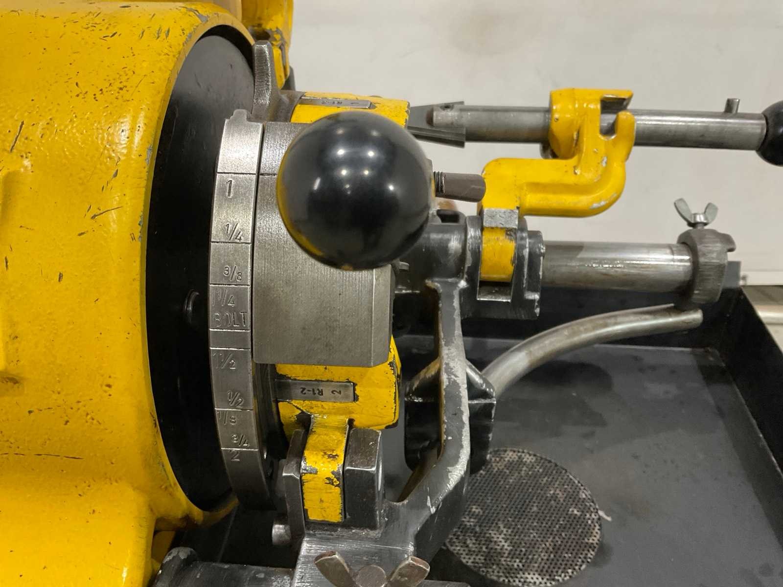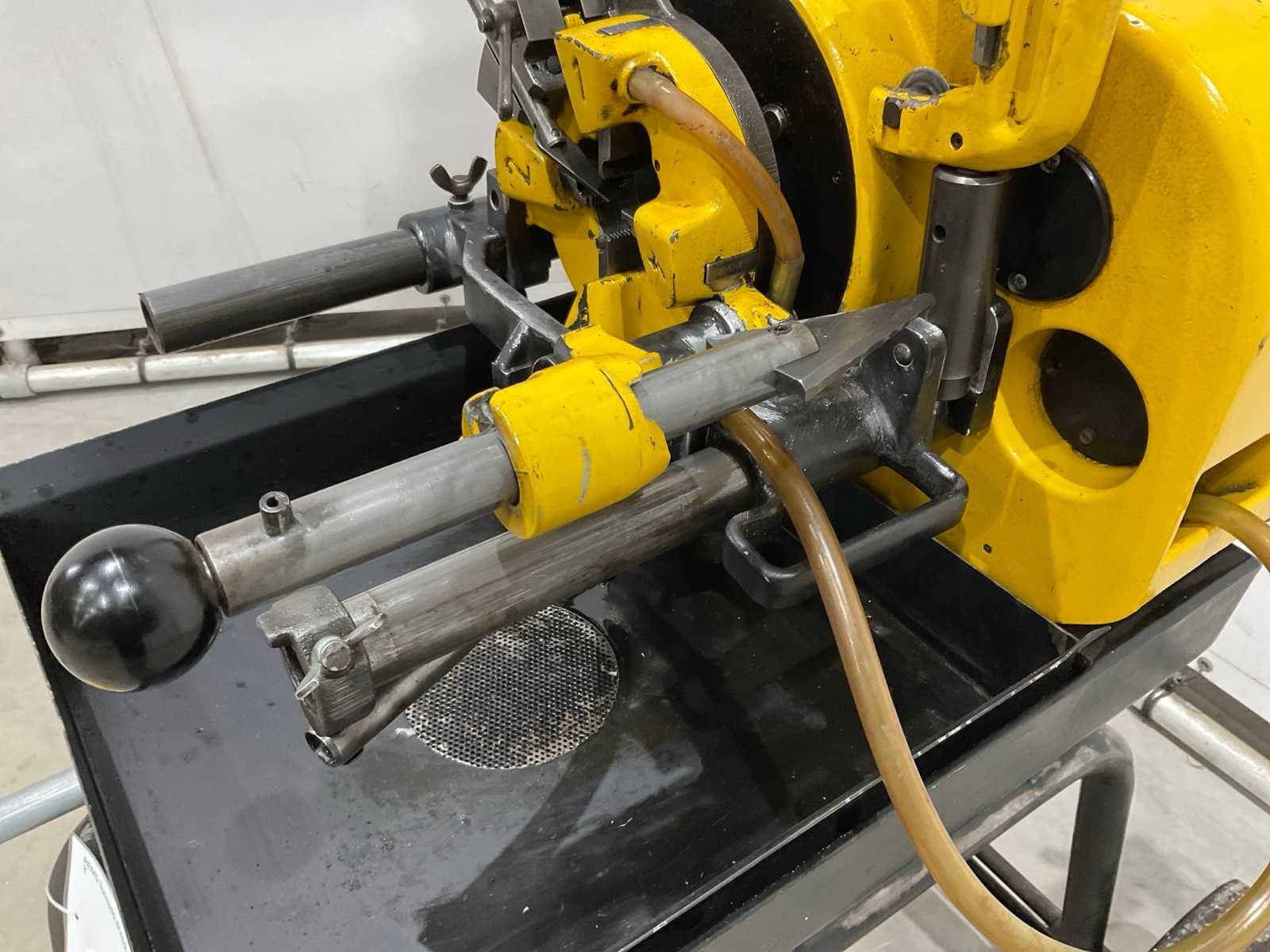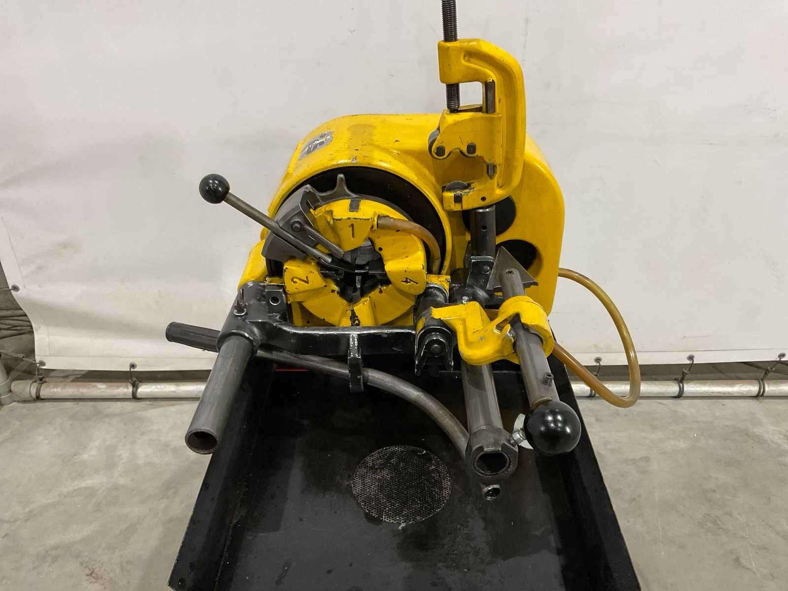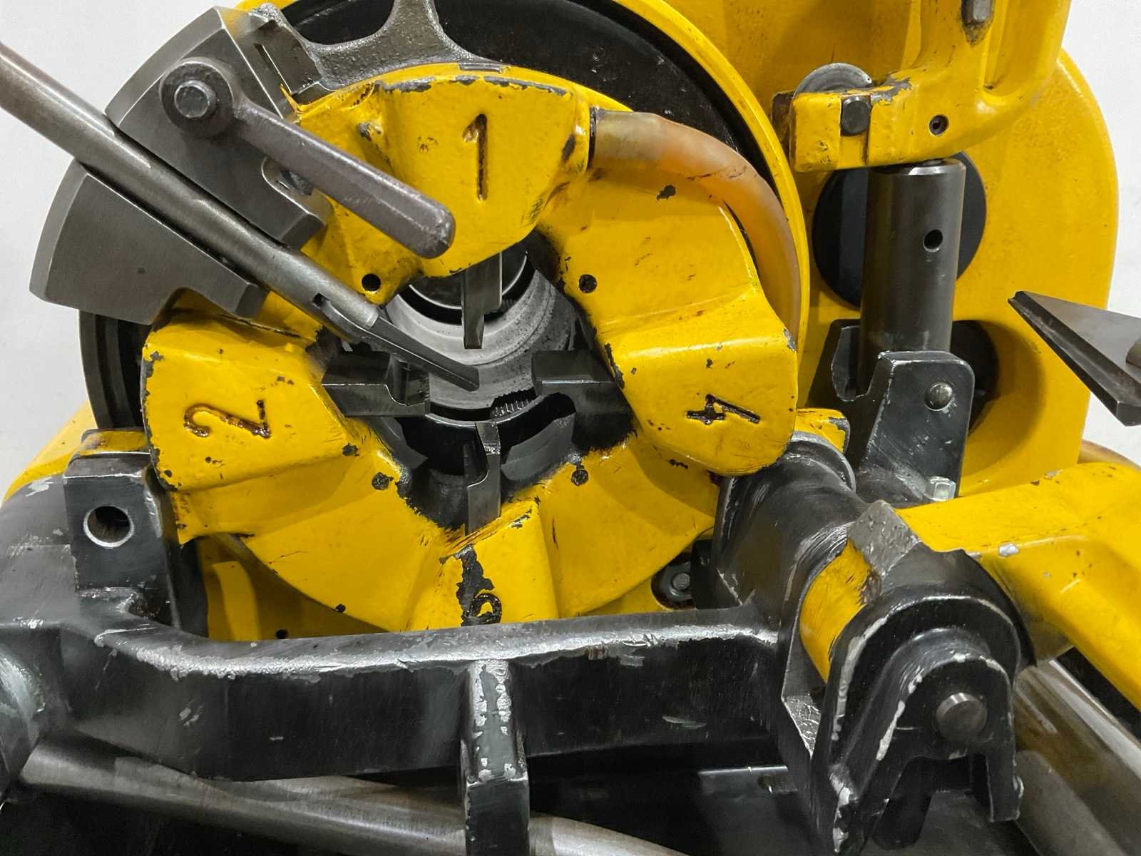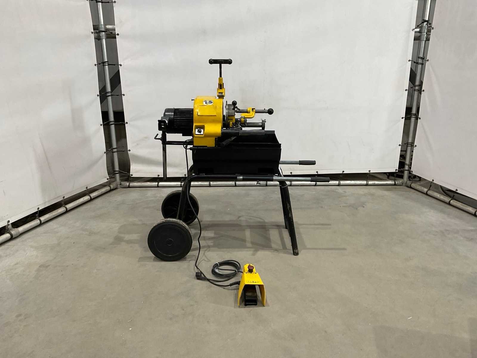 2 automatische klauwplaten; voetschakelaar met noodstop; automatisch openende snijkop; pijpsnijder; ontbraam voorziening; automatische smeerkoeling; op handige wielwagen; getest en werkend Merk: Rems Type: Tornado 2010 Aansluiting: 220V Vermogen: 2100W Totale afmeting Hoogte: 1300mm Totale afmeting Breedte: 600mm Totale afmeting L: 1250mm