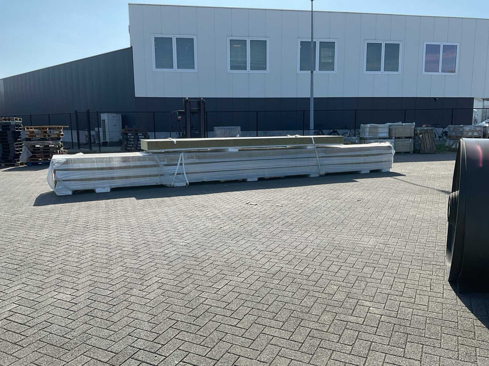 3x plaat 949 cm lang; 1x plaat 560 lang Merk: TRIMO Model: Trimoterm Power T FTV-240/1000 MS Lengte: 949cm Breedte: 102cm Hoogte: 24cm