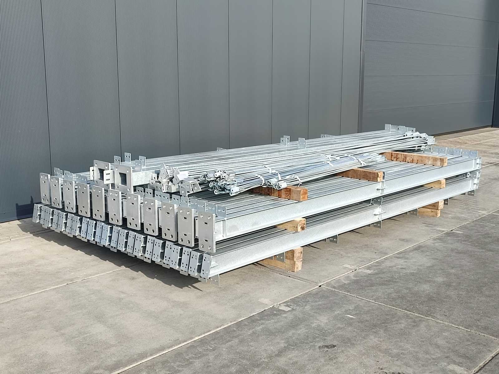 Ongebruikte staalconstructie; gegalvaniseerd staal; volblad verzinkt; IPE 160 onderbouw; constructie bestaat uit staanders en spanten; inclusief windverbanden/schoren; loods is transport klaar gemaakt Materiaal: Staal Bouwjaar: 2023 Totaal oppervlakte: 400m² Goot hoogte: 5000mm Totale afmeting L: 40000mm Totale afmeting Breedte: 10000mm