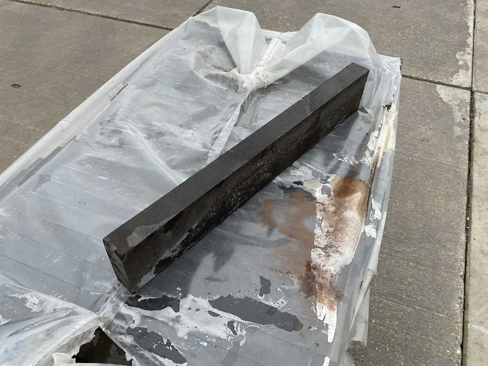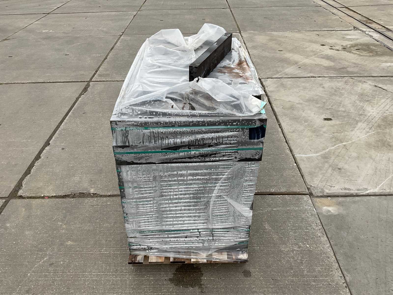 Pallet gevel steen; ongebruikt; afmetingen ca 595mm x 95mm x 40mm; aantal stuks op een pallet ca 224 stuks Merk: Mbi Model: Geostylistix charcoal Kleur: grijs