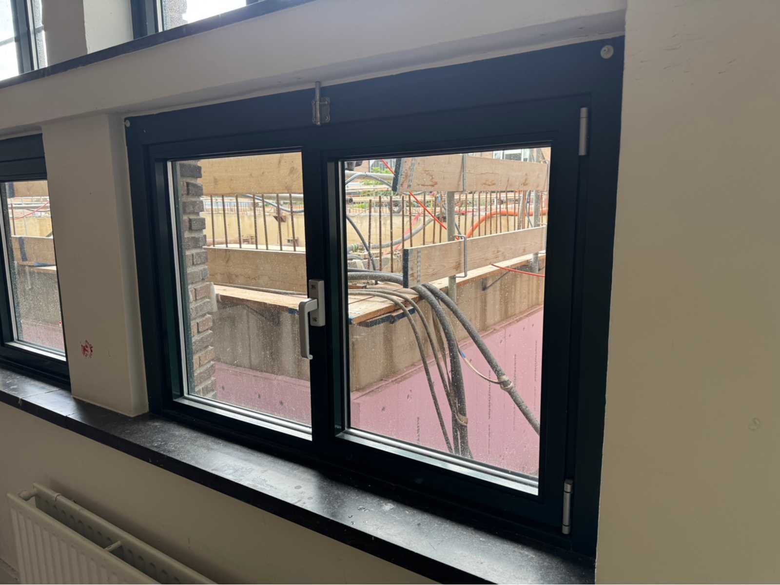 Groen gepoedercoat; met openslaande ramen; naar binnen draaiend; wordt gedemonteerd en transport klaar gemaakt door verkoper; kijkdag en afhalen op afspraak; afhalen eind februari / maart; Afmeting h: 800mm Afmeting b: 1350mm Bouwjaar: 2022