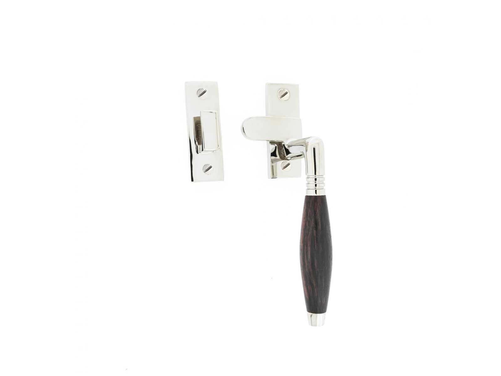 (10x) raamsluiter (rechts) jaren ‘30 / nikkel glans/palissanderhout