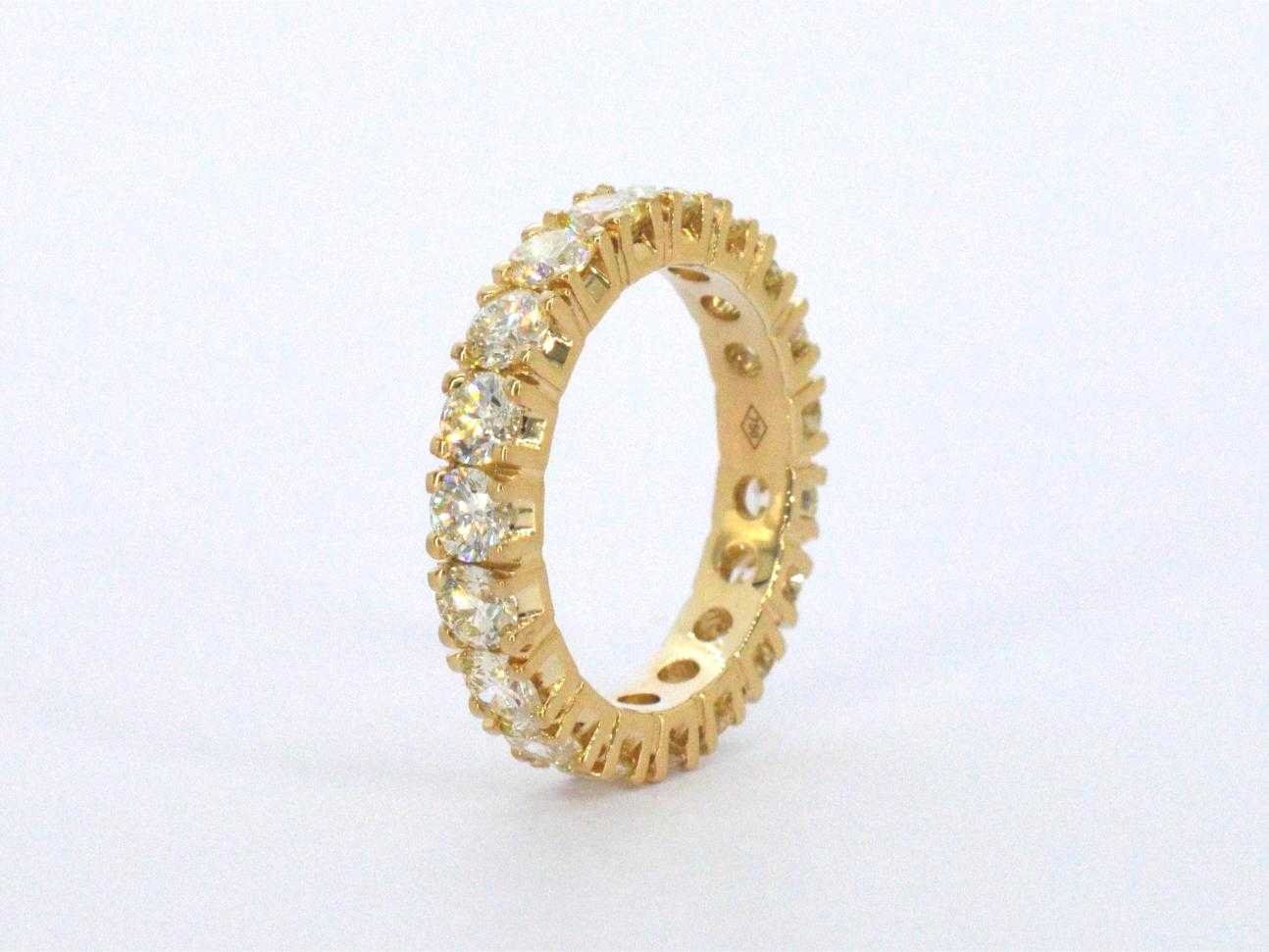 Samenvatting van gegevens Exclusieve alliance ring met zeer hoge kwaliteit aan diamanten Diamant: Natuurlijk; Slijpvorm: Briljant geslepen; Gewicht (carat): 3.20 carat; Kleur: Getint; Zuiverheid: VVS; Slijpkwaliteit: Excellent; Juweel: Ring; Gewicht: 5 gram; Ringmaat (op maat gemaakt*): 53 (17 mm); Materiaal: 18k goud (750); Conditie: Nieuw; Verpakking: Luxe sieradendoos; Toelichting: De kwaliteit is overgenomen van het rapport behorend bij item. De waardebepaling is een beoordeling van een gecertificeerde diamantair, gebaseerd op consumentenprijzen.; Consumentenprijs: € 16.000,- Within 14 days Materiaal: Goud Voornaamste diamant: Natuurlijk Gewicht diamant: 3.20ct Totaal gewicht: 5g Keurmerk: 750 Kleur diamant: Getint Slijpvorm diamant: Briljant geslepen Slijpkwaliteit diamant: Excellent Zuiverheidsgraad diamant: VVS