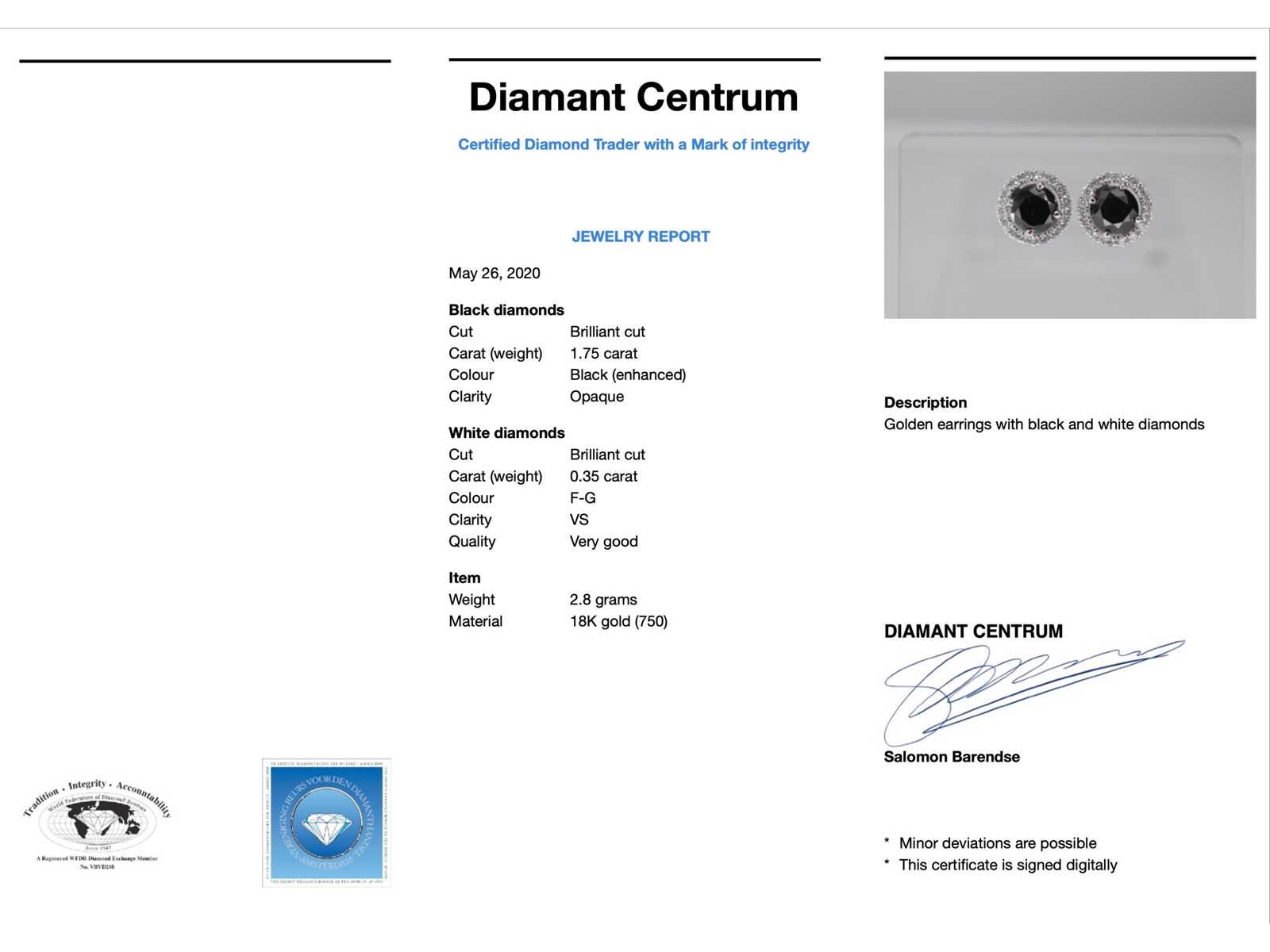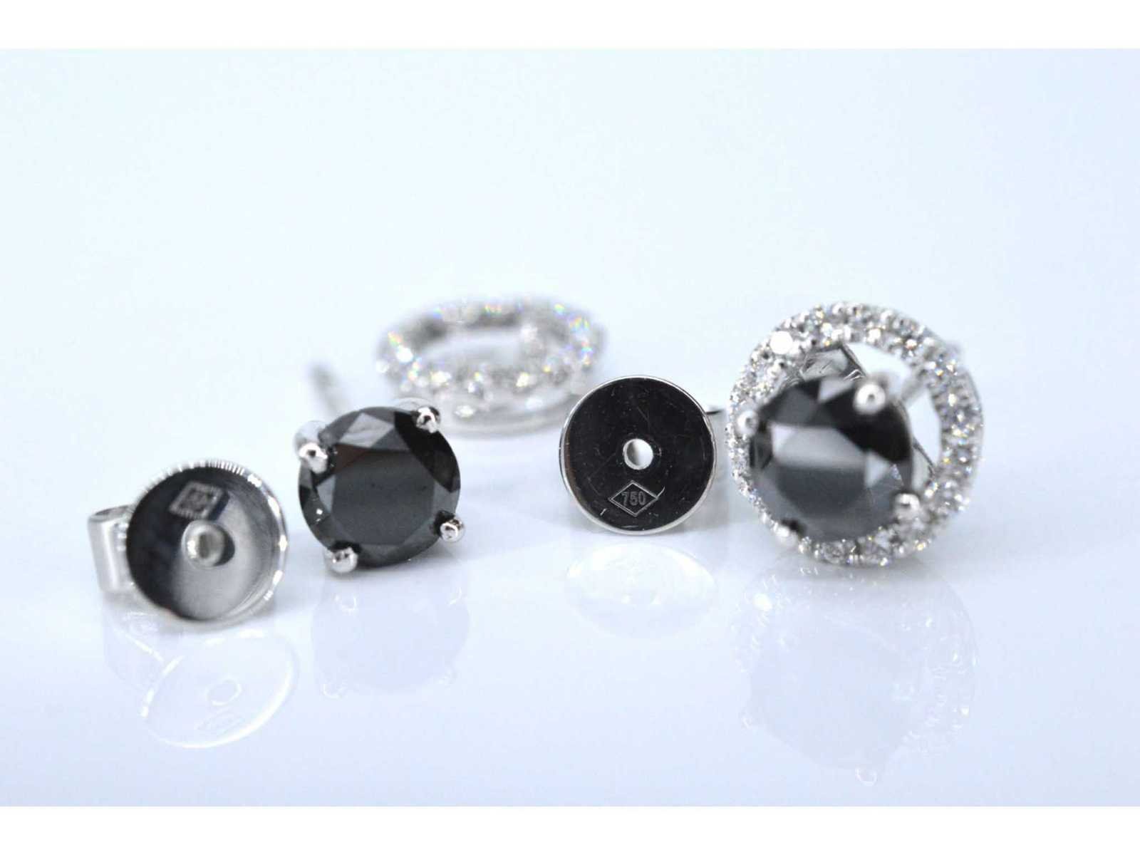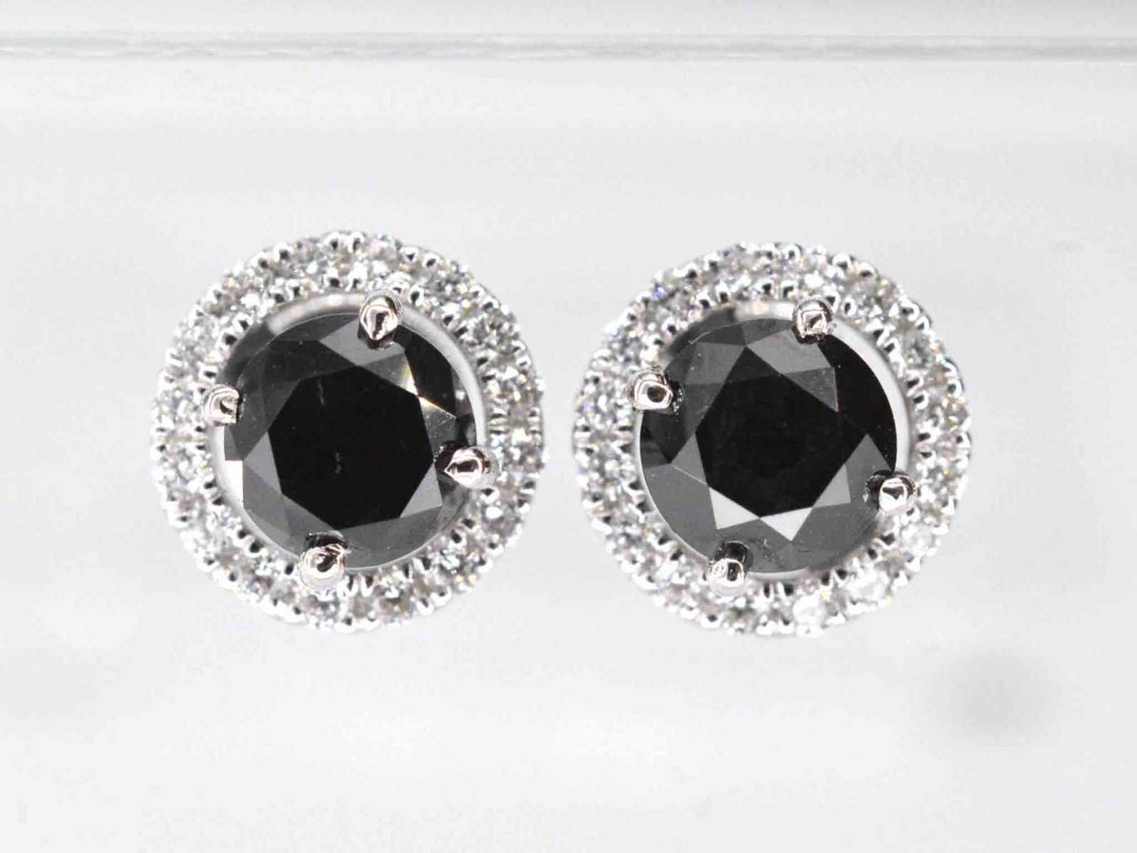 Samenvatting van gegevens Witgouden diamanten entourage oorbellen met zwarte diamanten Diamant: Natuurlijk; Aantal: 2 stuks; Slijpvorm: Briljant geslepen; Gewicht (carat): 1.75 carat; Kleur: Zwart; Zuiverheid: Opaak (enhanced); Slijpkwaliteit: Goed; Diamant (secundair): Entourage; Slijpvorm: Briljant geslepen; Gewicht (carat): 0.35 carat; Kleur: F; Zuiverheid: VS; Juweel: Oorbellen; Gewicht: 2.8 gram; Materiaal: 18K goud (750); Conditie: Nieuw; Verpakking: Luxe sieradendoos; Toelichting: De kwaliteit is overgenomen van het rapport behorend bij item. De waardebepaling is een beoordeling van een gecertificeerde diamantair, gebaseerd op consumentenprijzen.; Consumentenprijs: € 5.005,- Within 14 days Materiaal: Goud Voornaamste diamant: Natuurlijk Kleur diamant: Zwart Gewicht diamant: 1.75ct Slijpvorm diamant: Briljant geslepen Slijpkwaliteit diamant: Goed Zuiverheidsgraad diamant: Opaak (enhanced) Totaal gewicht: 2.8g Keurmerk: 750