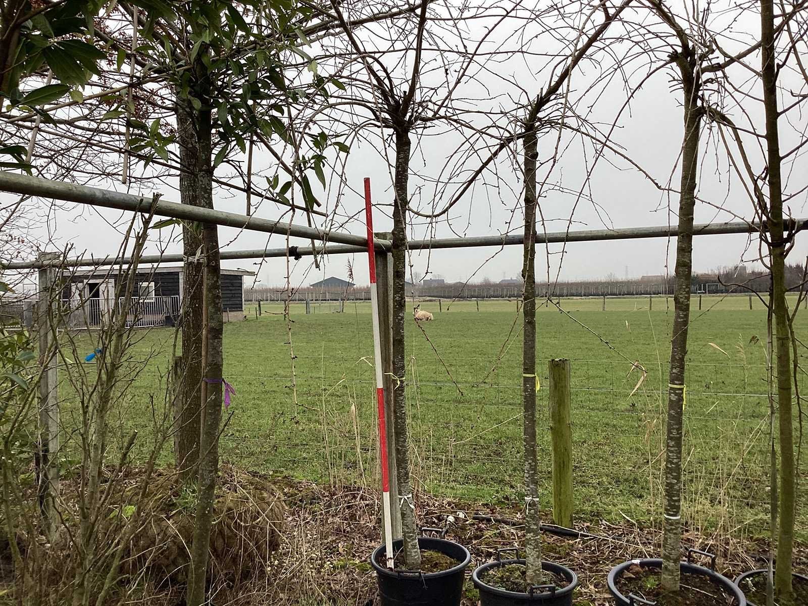 De kavels worden door ons verzameld en klaargelegd voor transport; Wilt u gebruik maken van de bezorgservice neem dan contact op via het emailadres arina@groviatrees.com. Als tip, de bomen zitten nu in de winterrust dus wilt u graag weten wat de zomer- en de herfstkleuren zijn, kijk dan op internet daar staan hele mooie voorbeelden van de bomen. Voor overige vragen bel 0645641495 of 0633049344 Type: Treur sierkers Latijnse benaming: Prunus Kiku Shidare zakura Hoogte ca.: 250cm In pot: true Stamdikte: 20cm