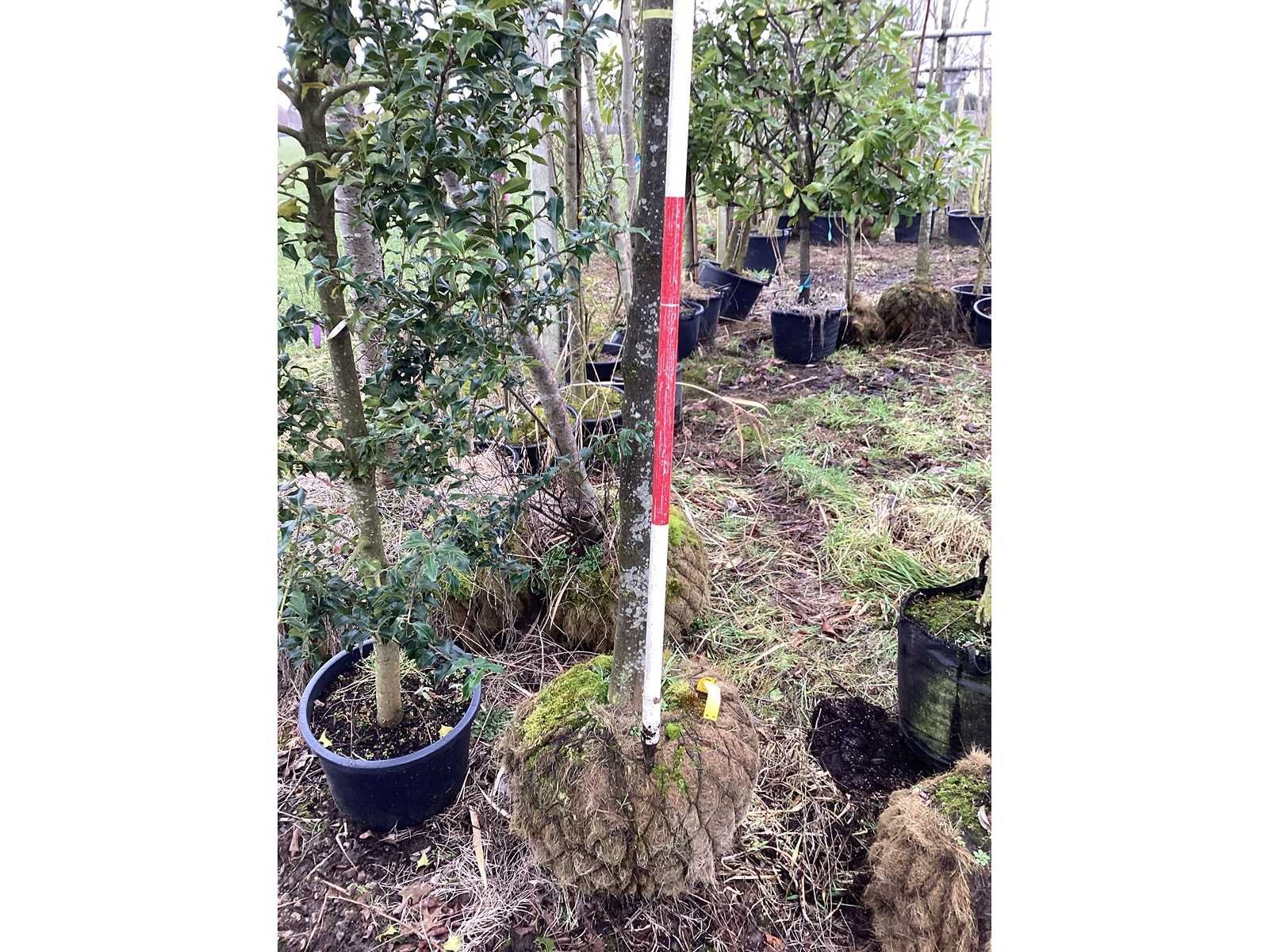 De kavels worden door ons verzameld en klaargelegd voor transport; Wilt u gebruik maken van de bezorgservice neem dan contact op via het emailadres arina@groviatrees.com. Als tip, de bomen zitten nu in de winterrust dus wilt u graag weten wat de zomer- en de herfstkleuren zijn, kijk dan op internet daar staan hele mooie voorbeelden van de bomen. Voor overige vragen bel 0645641495 of 0633049344 Type: Haagbeuk Latijnse benaming: Carpinus betulus Hoogte ca.: 550cm Met kluit: true Stamdikte: 22cm