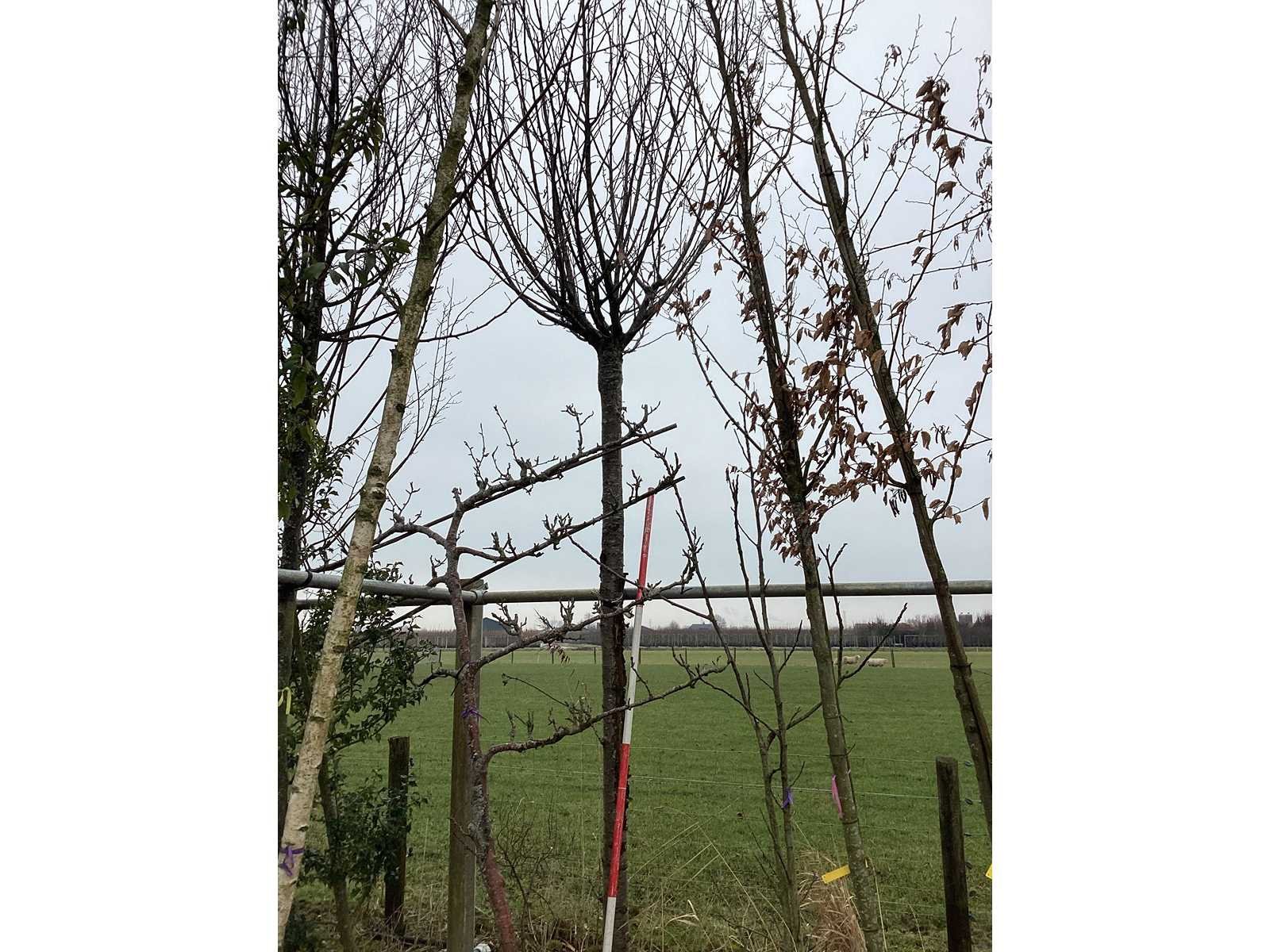 De kavels worden door ons verzameld en klaargelegd voor transport; Wilt u gebruik maken van de bezorgservice neem dan contact op via het emailadres arina@groviatrees.com. Als tip, de bomen zitten nu in de winterrust dus wilt u graag weten wat de zomer- en de herfstkleuren zijn, kijk dan op internet daar staan hele mooie voorbeelden van de bomen. Voor overige vragen bel 0645641495 of 0633049344 Type: Schmitt Kers Latijnse benaming: Prunus schmitti Hoogte ca.: 400cm Met kluit: true Stamdikte: 30cm